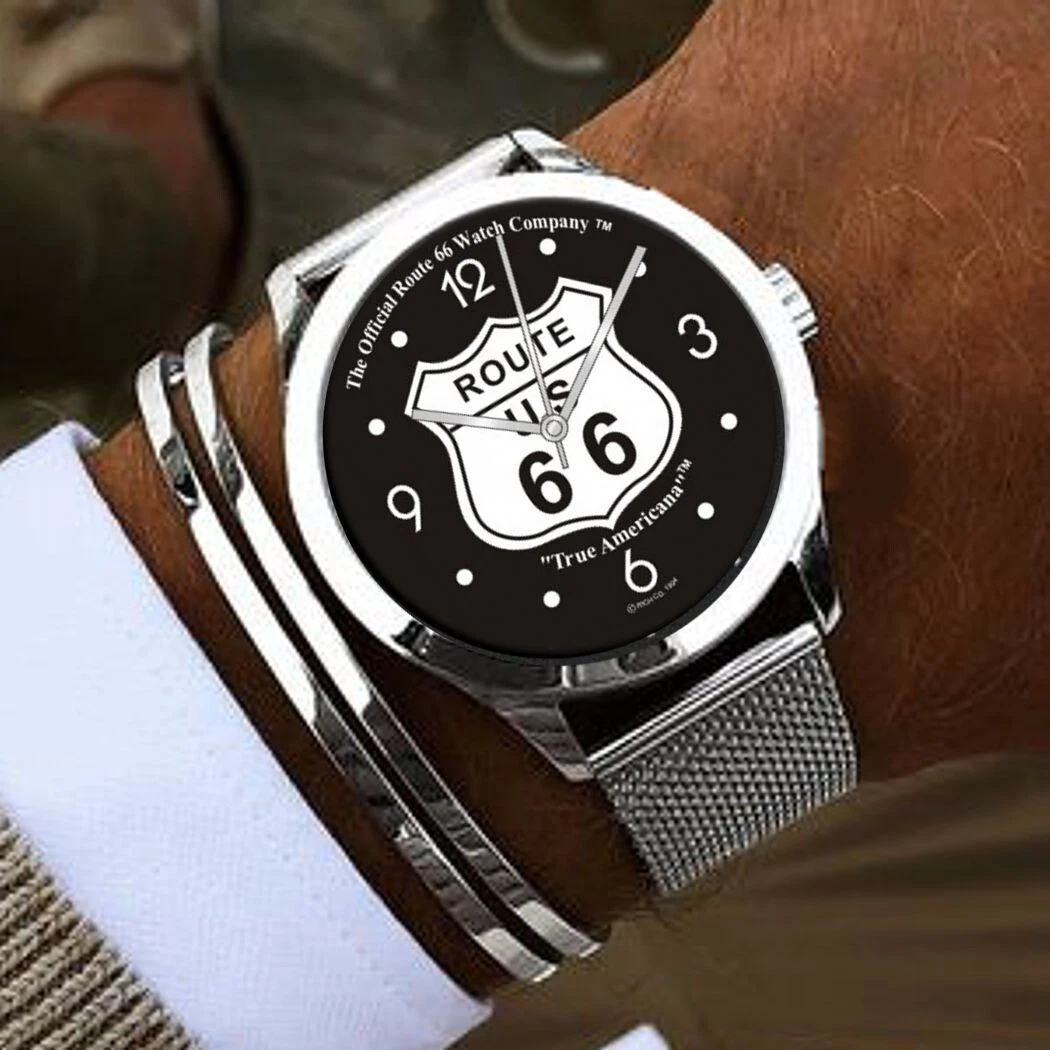 "Route 66" Emblem Collectible Large Watch With Stainless Steel Adjustable Band