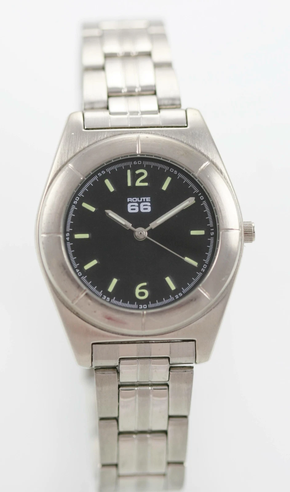 Route 66 Mens Watch Gray Battery Stainless Steel Silver Water Resistant Quartz