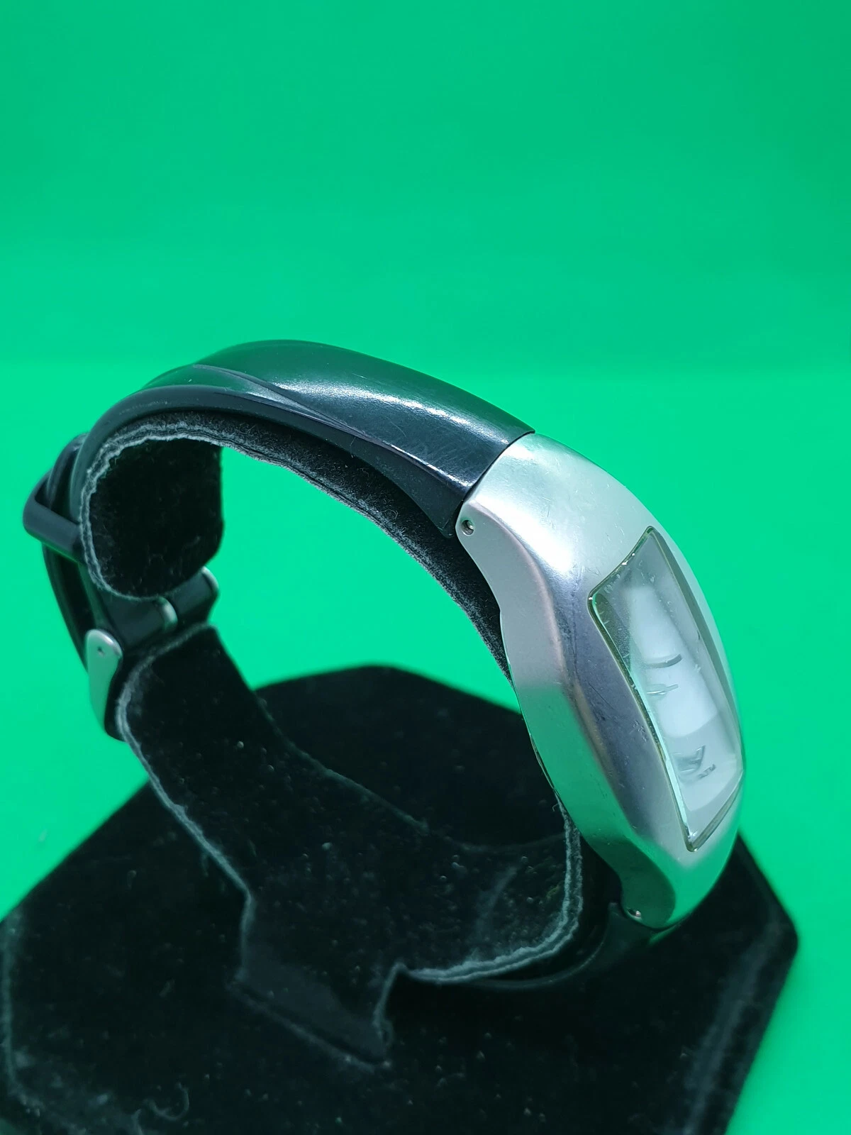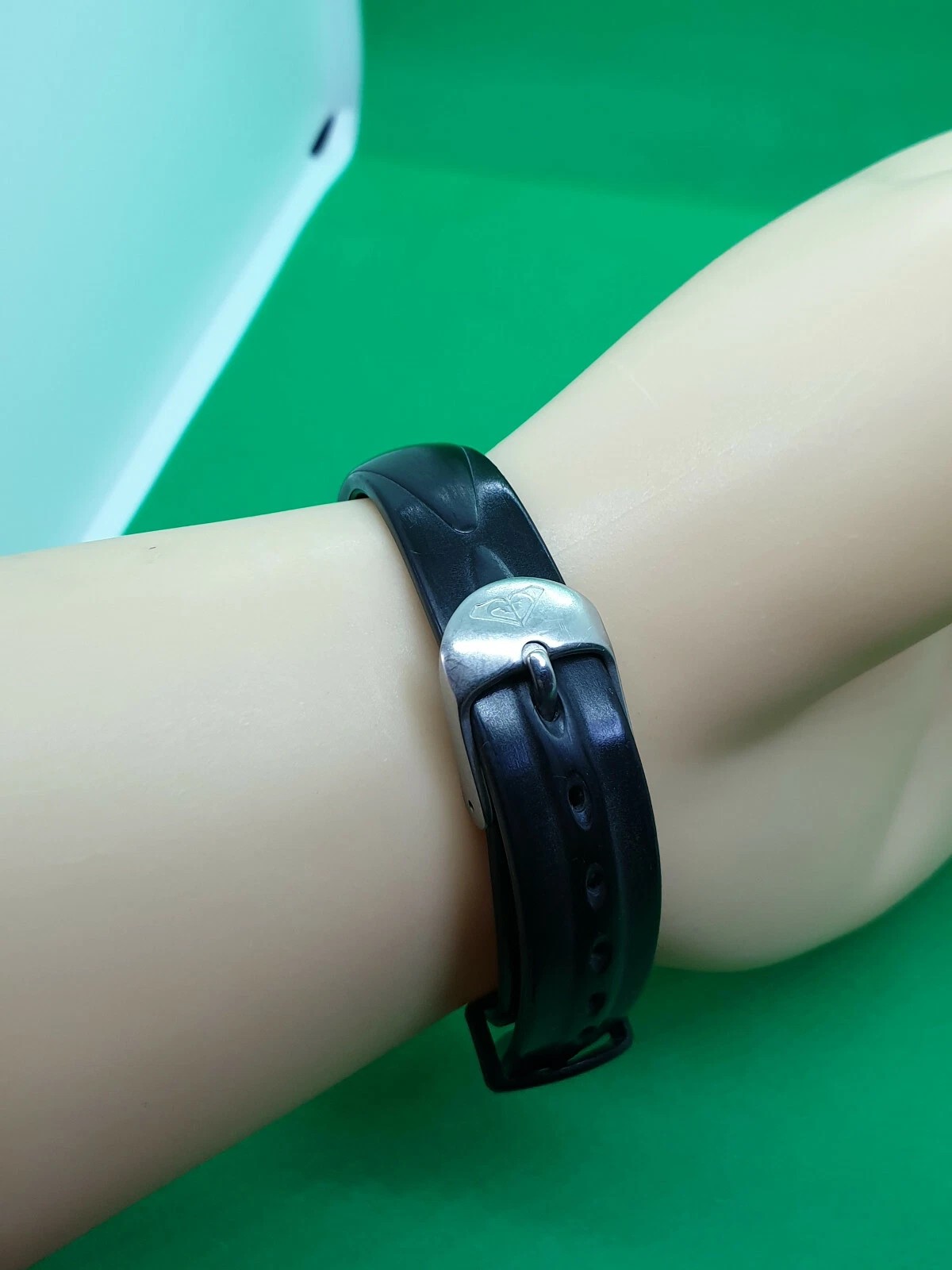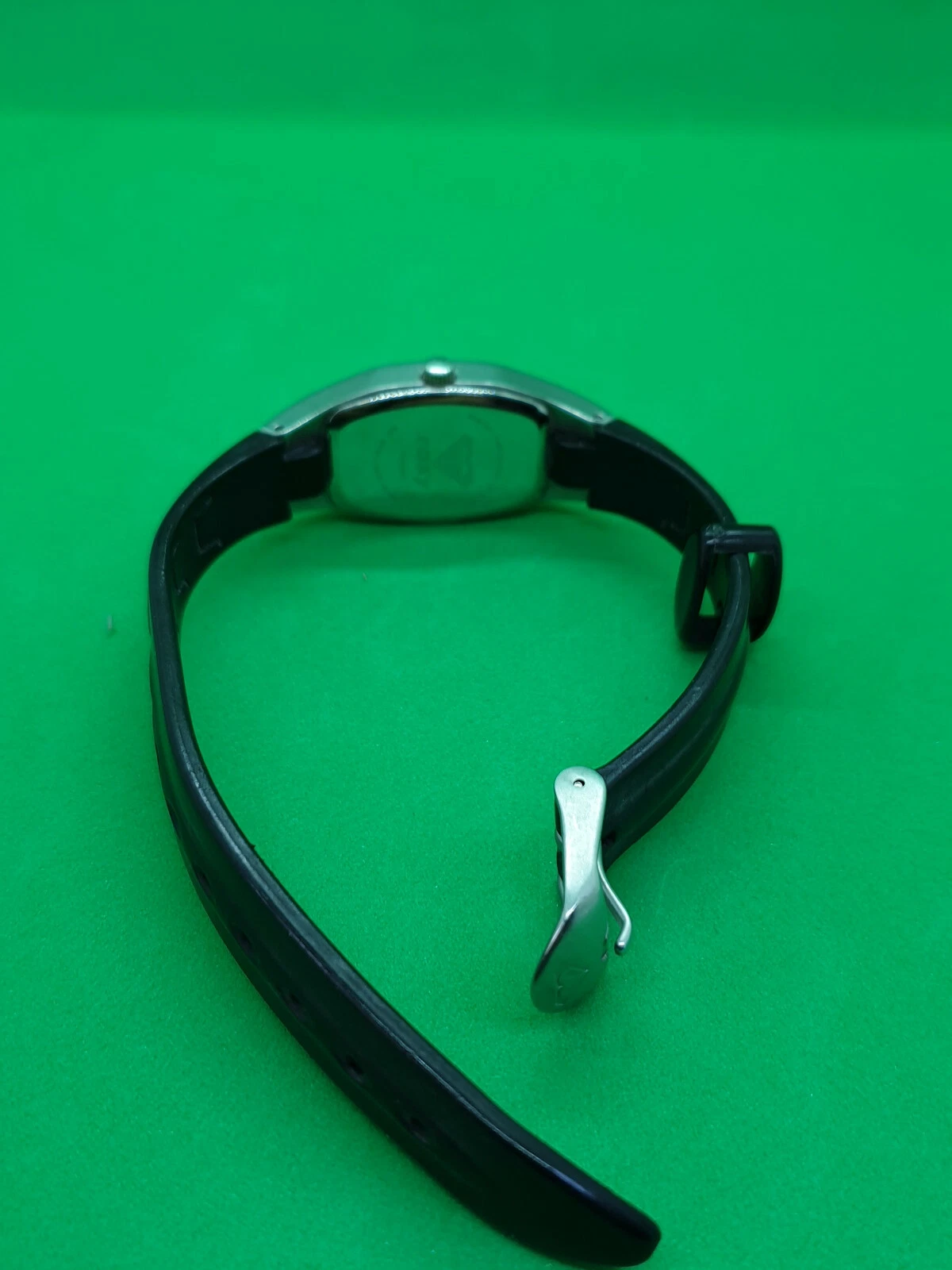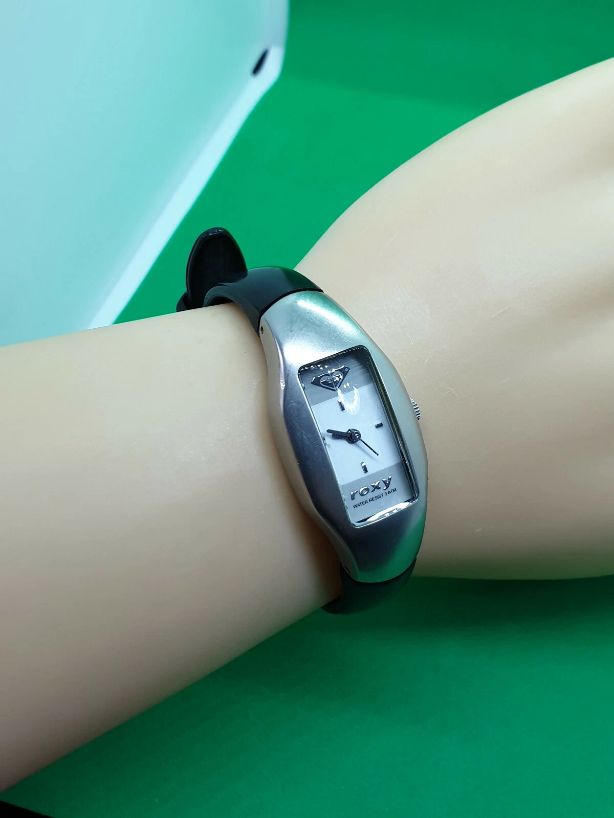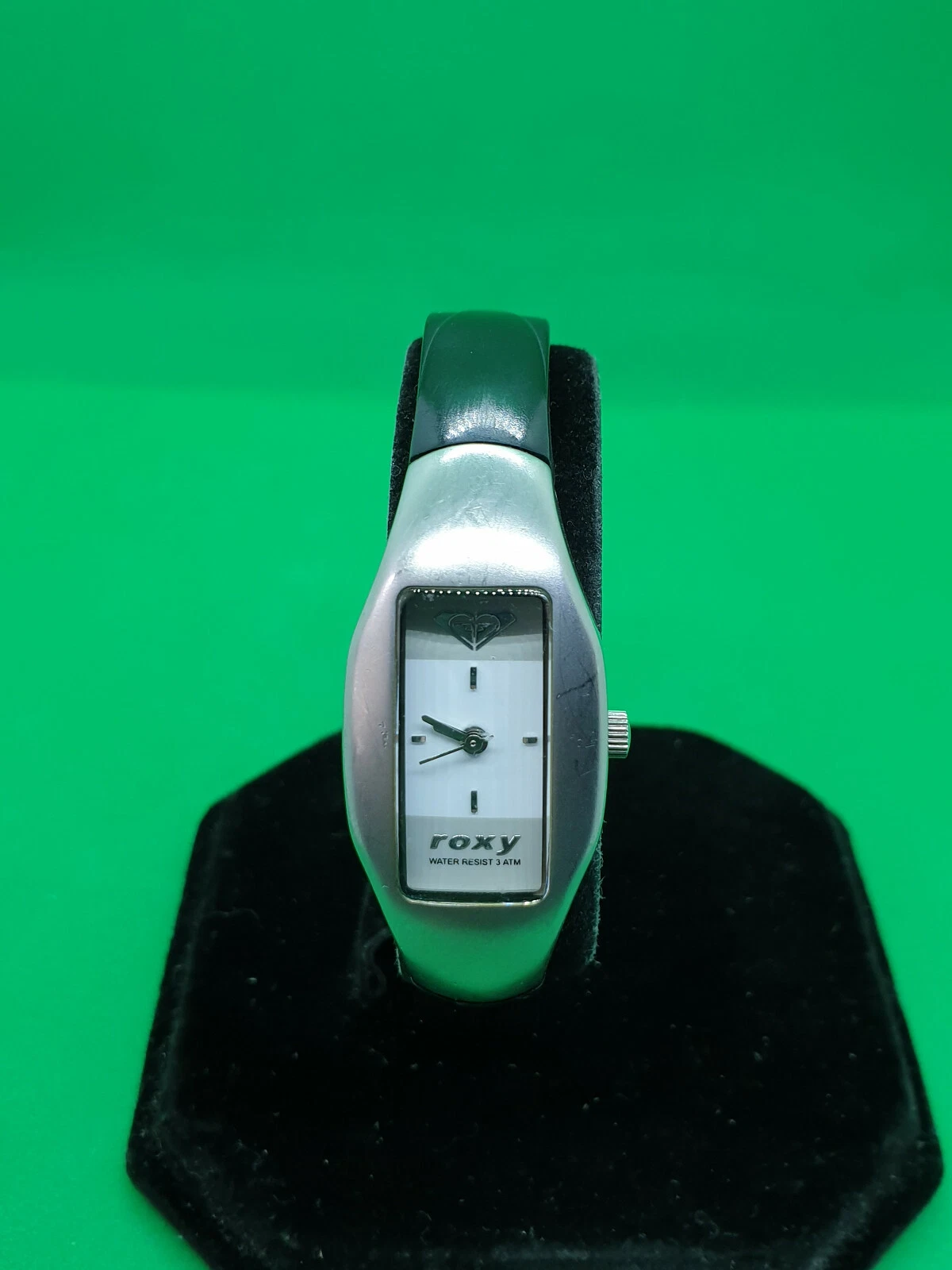 ladies roxy chrome watch,white & grey face,silver hands,black rubber strap.#32.