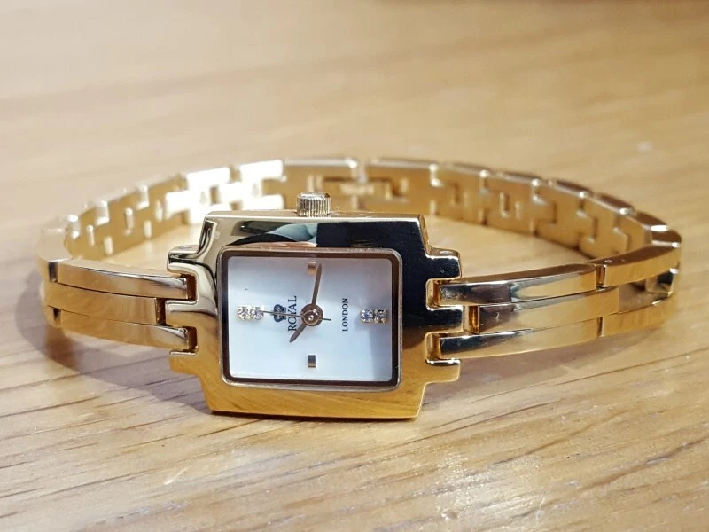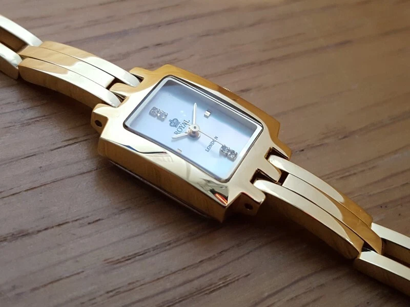 Ladies Gold Bracelet Royal London Vintage Art Deco Style Cocktail Quartz Watch