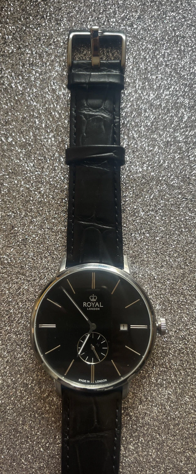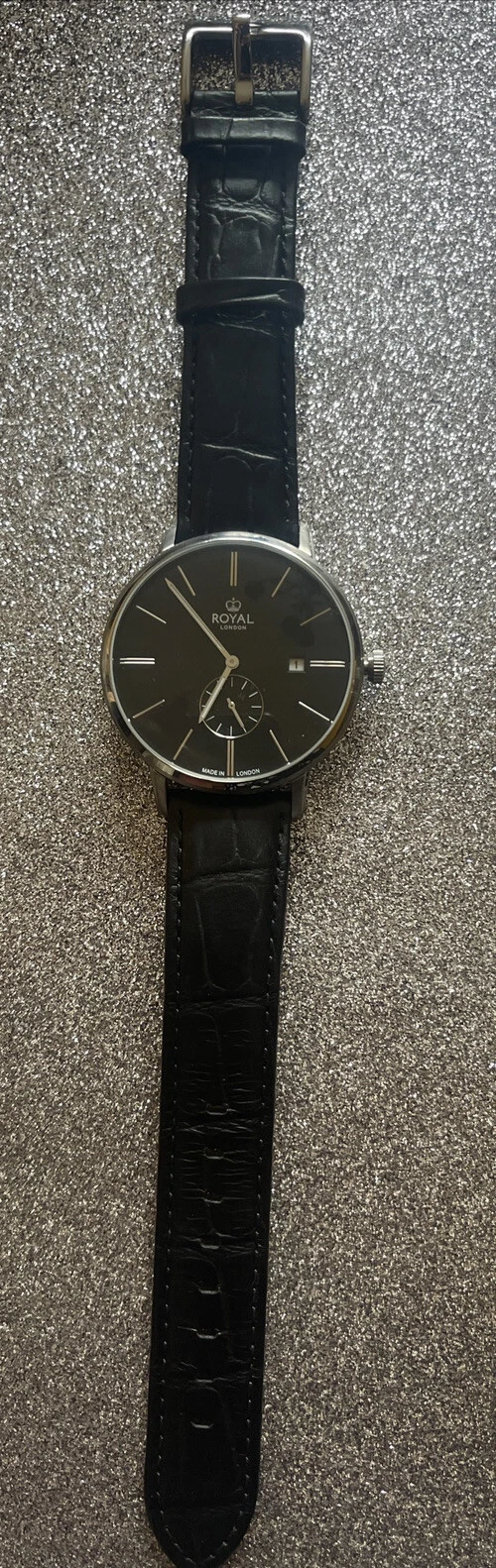 Royal London Ec4 Mens WristWatch Black Leather Strap Black Face Silver Rim