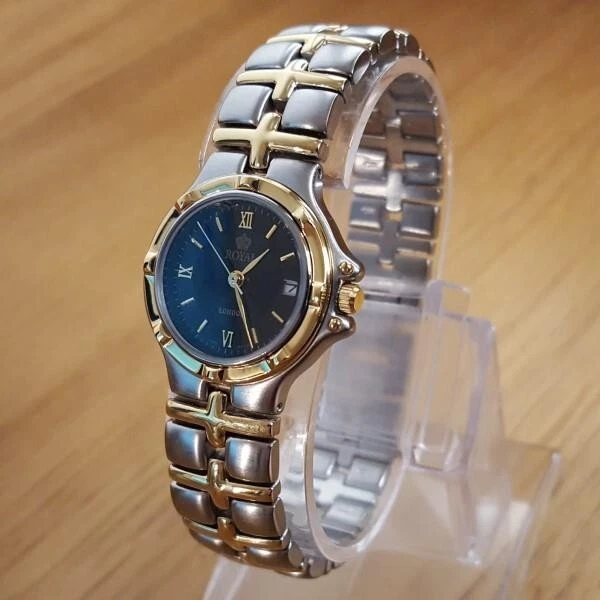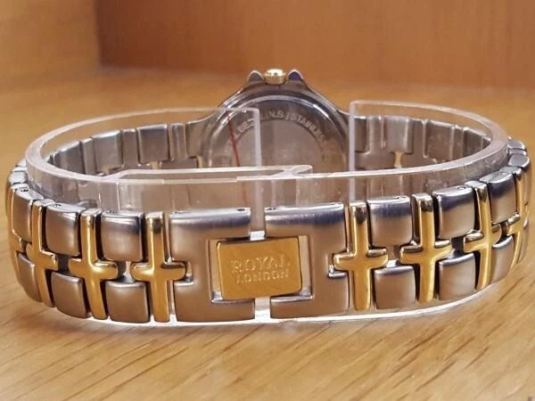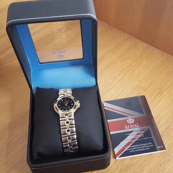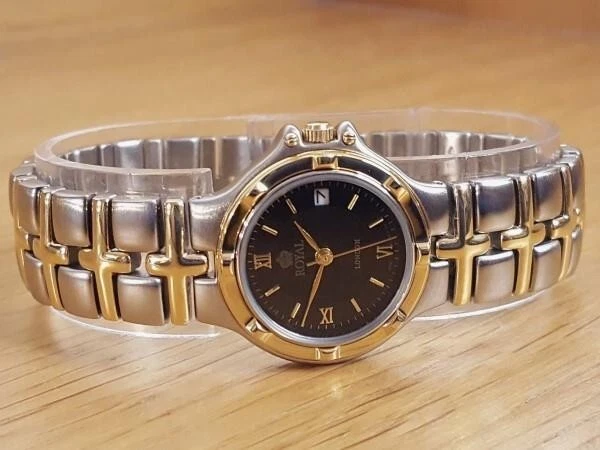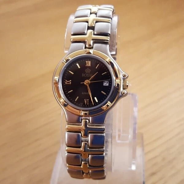 Ladies NEW 2-t Gold Silver Royal London Vintage Classic Black Analog Dress Watch