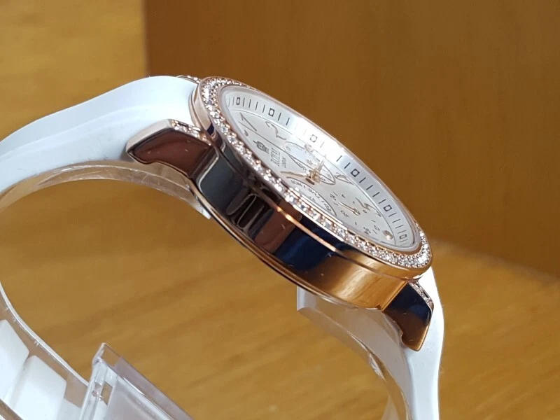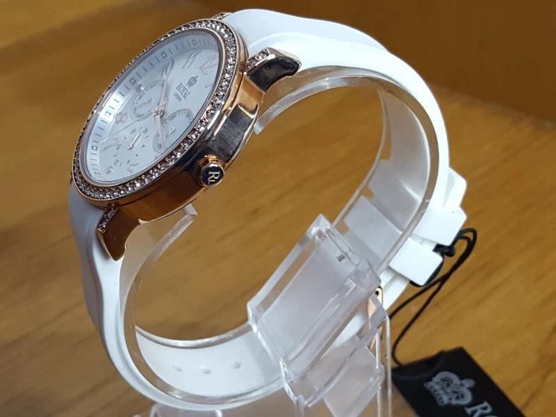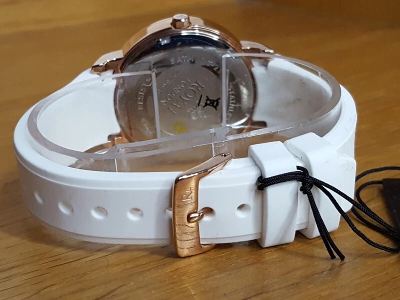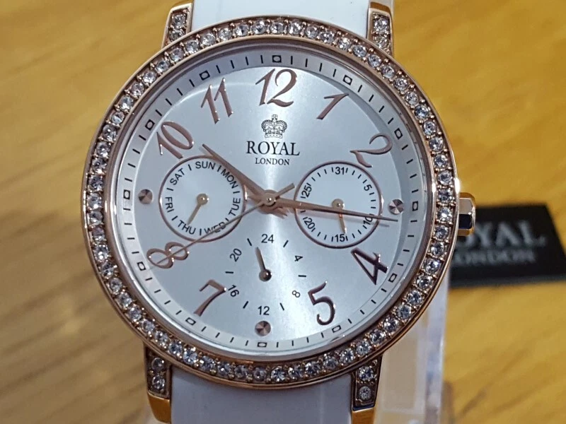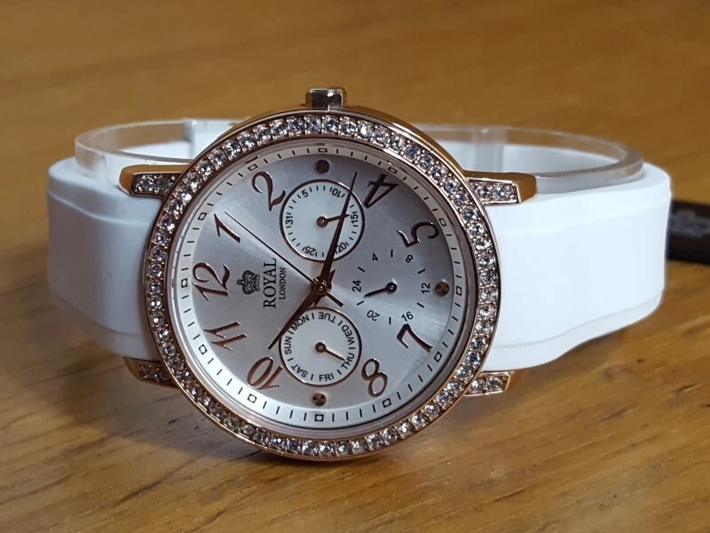 Ladies White Comfy-Wear Rose Gold Royal London Embellished Date Watch BNIB
