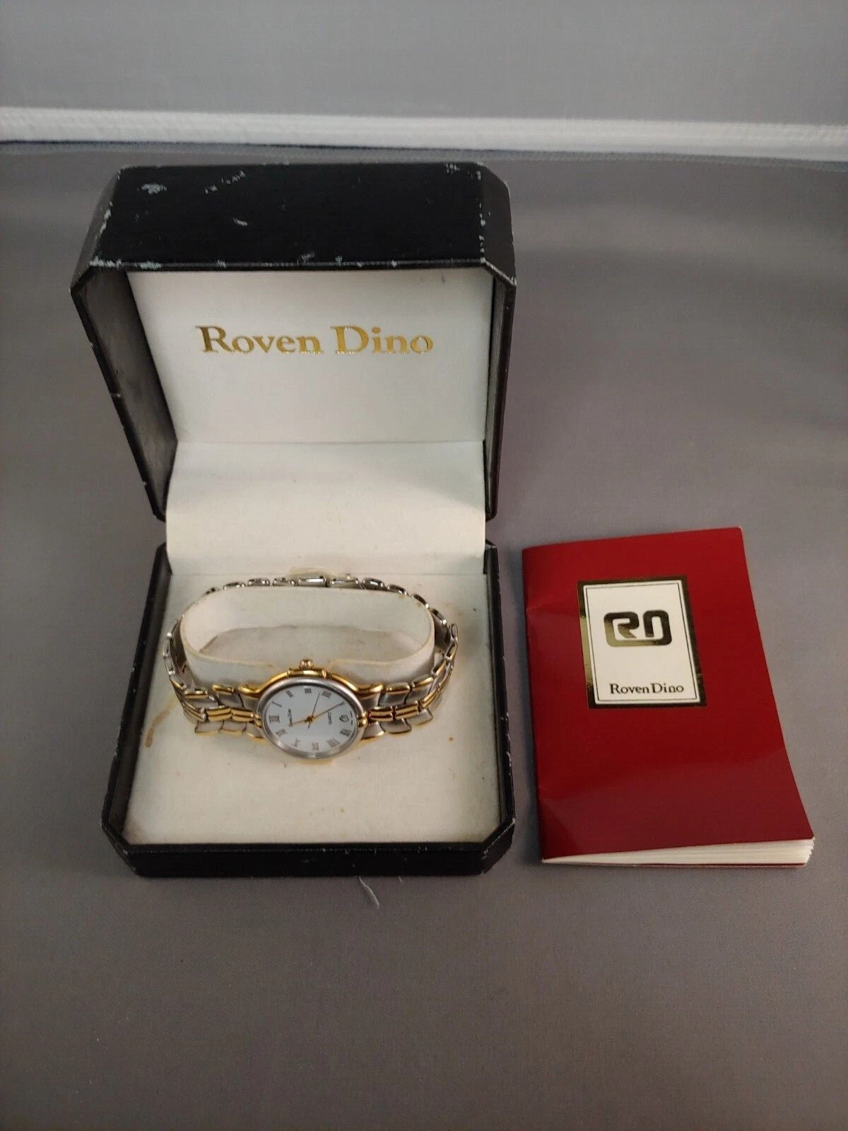 Roven Dino Watch Date Indicator Silver/Gold Toned Sapphire Crystal 8" w/papers