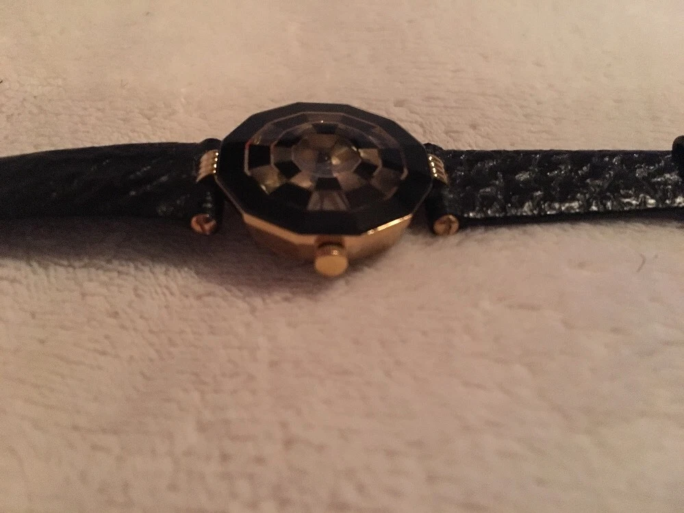 ROVEN DINO YELLOW BASE METAL SAPPHIRE CRYSTAL LEATHER QUARTZ WATCH L NEW