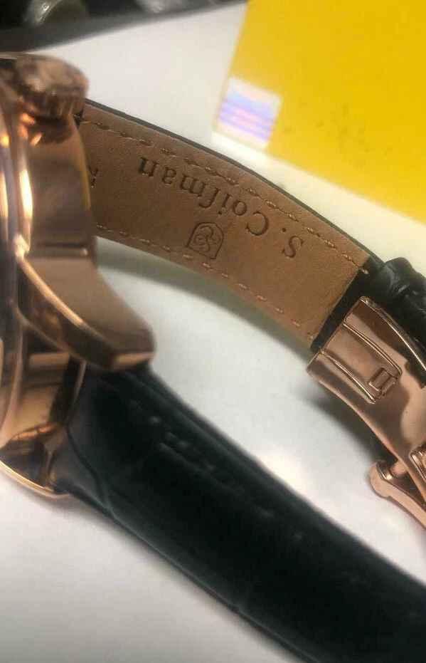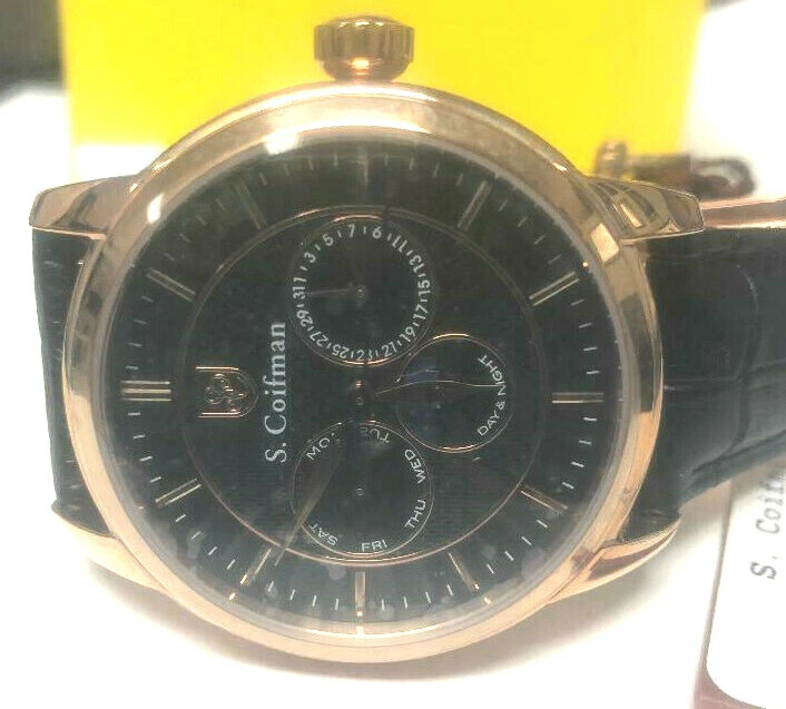 Invicta S Coifman Rose Gold Bezel Swiss Black Sunray Dial Leather 43mm Watch