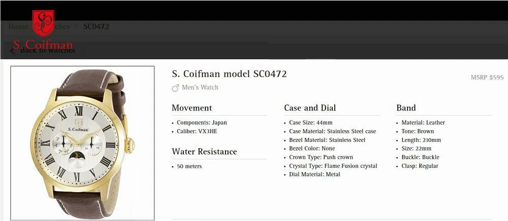 SAVE $450 or 75% OFF - S.COIFMAN SC0472 by Invicta ~ GOLD WATCH CHRONOGRAPH