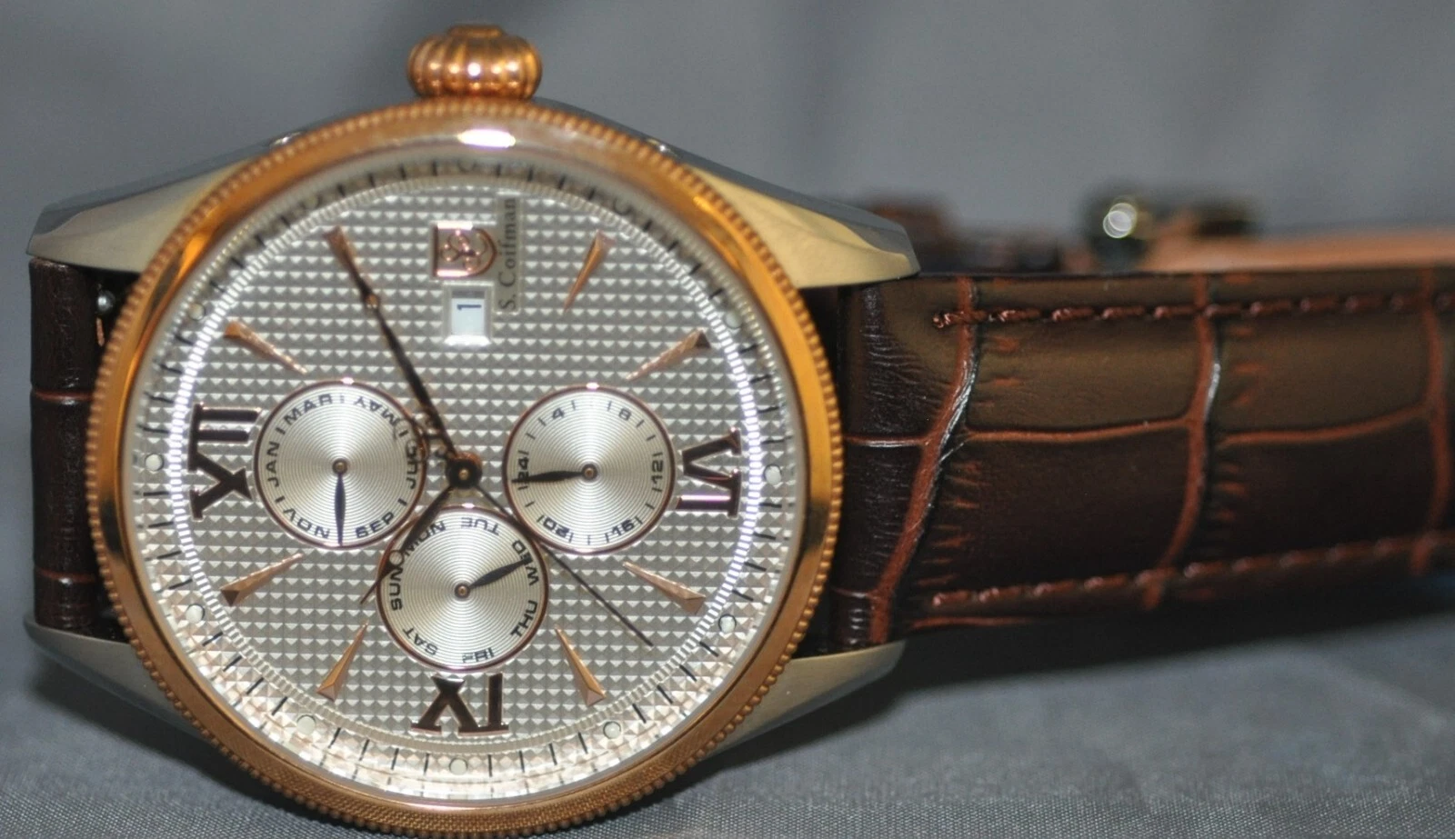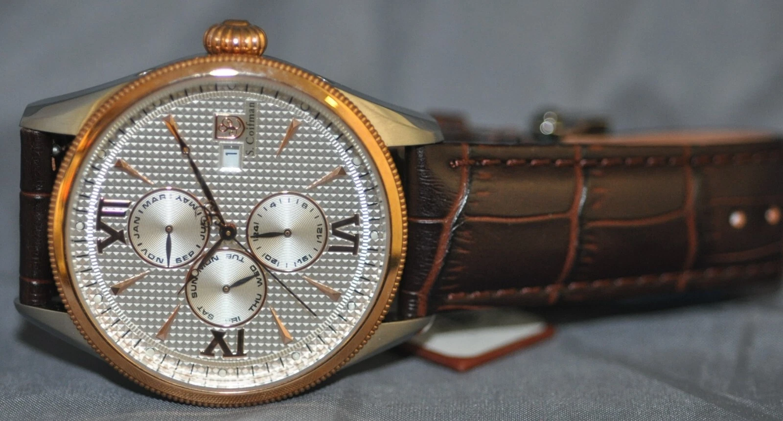 S. Coifman Men's Silver Dial Brown Genuine Leather Watch SC0170