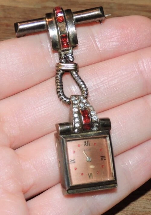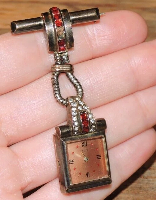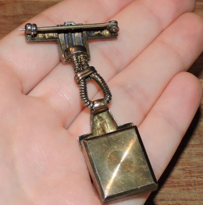 VTG ROXY Watch Co. SWISS Sterling Silver Nurse Pin Watch Art Deco PARTS/REPAIR
