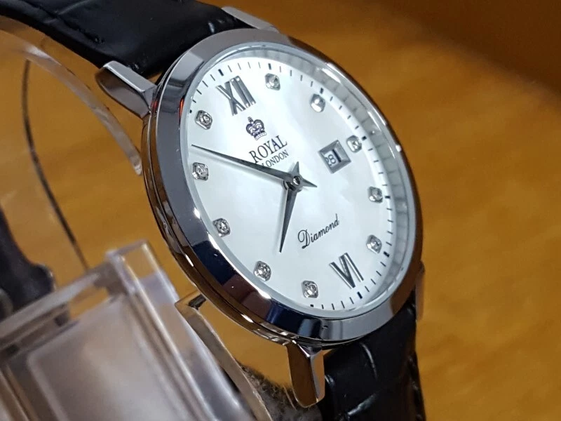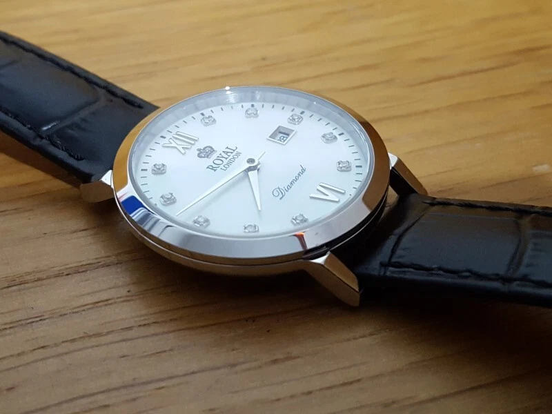 Mens Ladies Royal London 11110.1 Diamond Black Leather Watch New In Box
