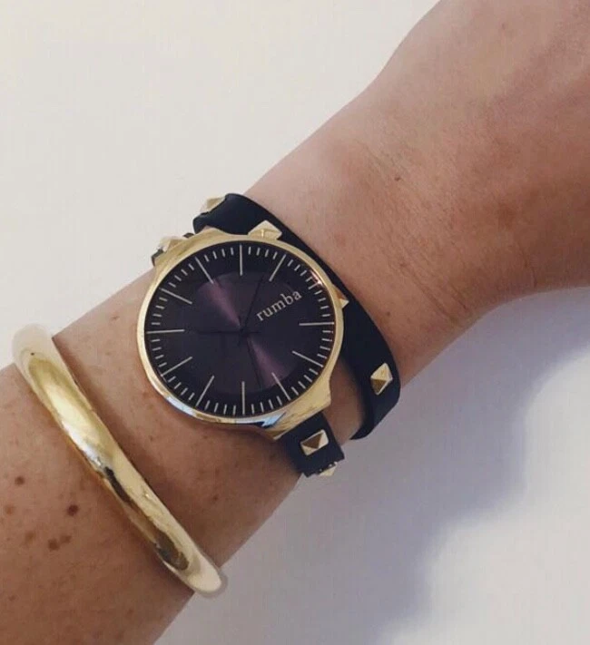 Fast Shipping! NIB Genuine Leather RumbaTime Orchard Double Wrap Watch Black