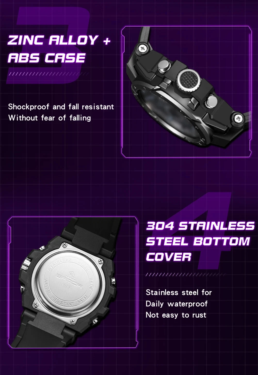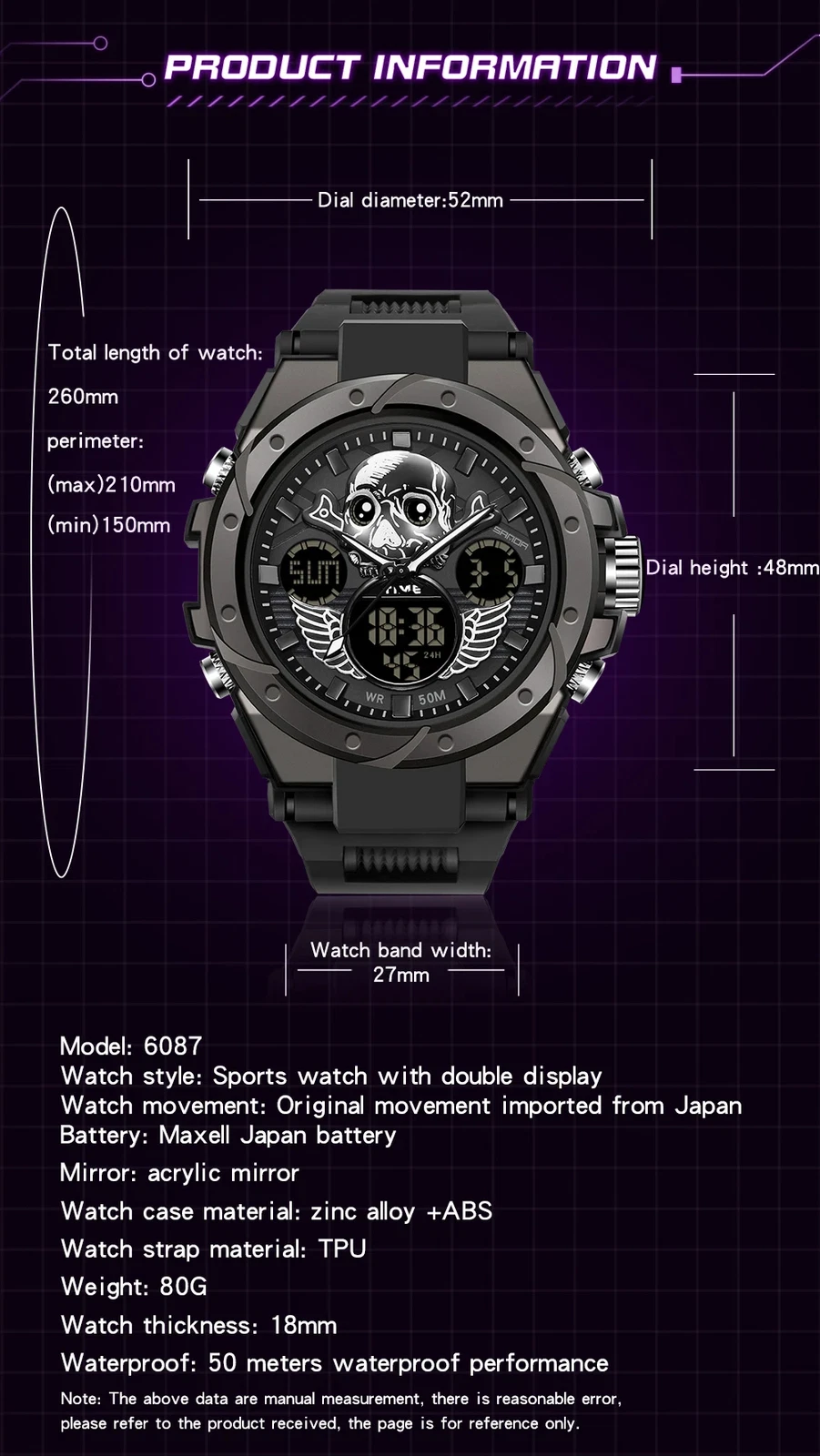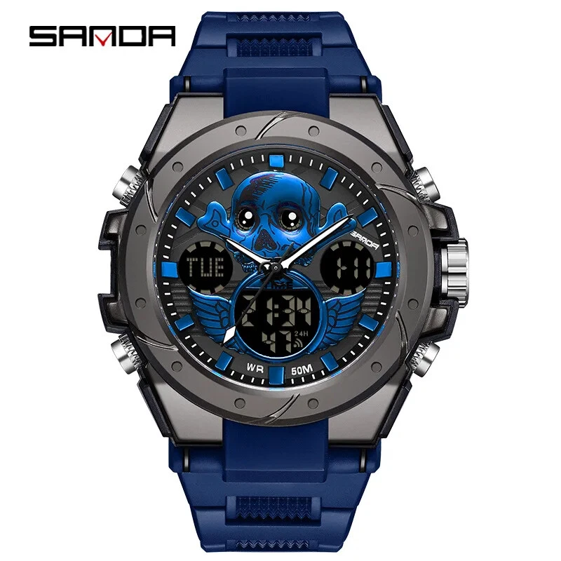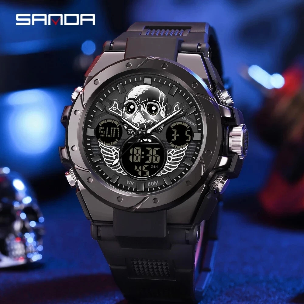SANDA Sport 6087 Watch Men Military Army Top Brand Skull Wristwatch Dual Display