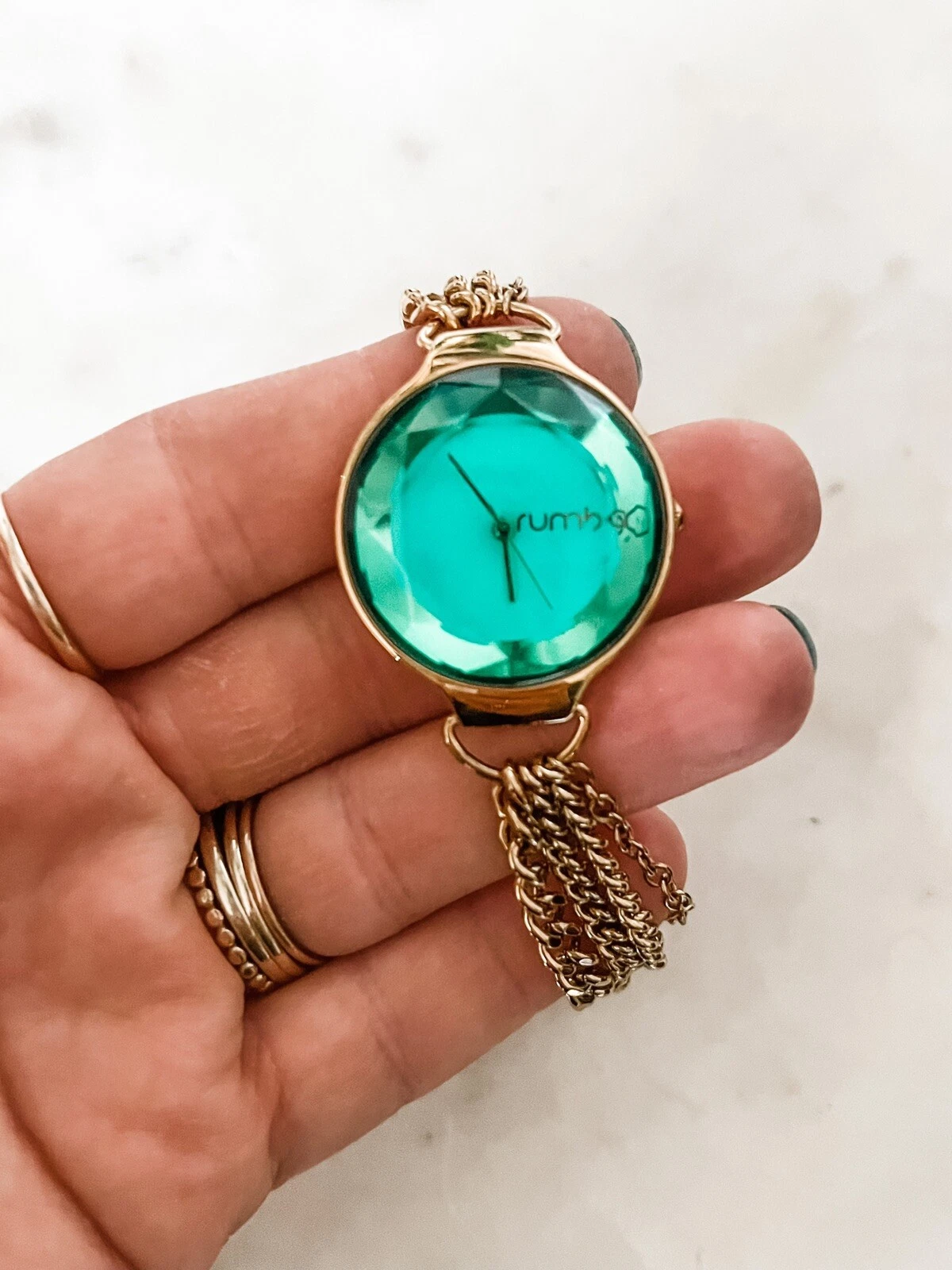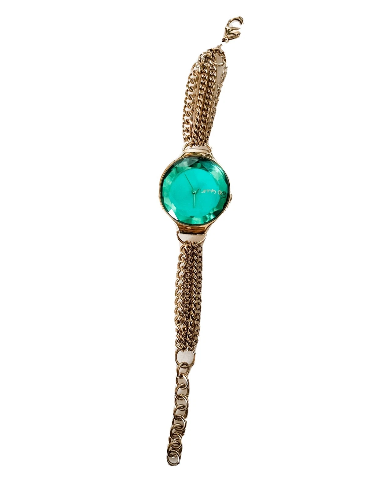 Rumba Gold Emerald Green Orchard Gem Chain Watch