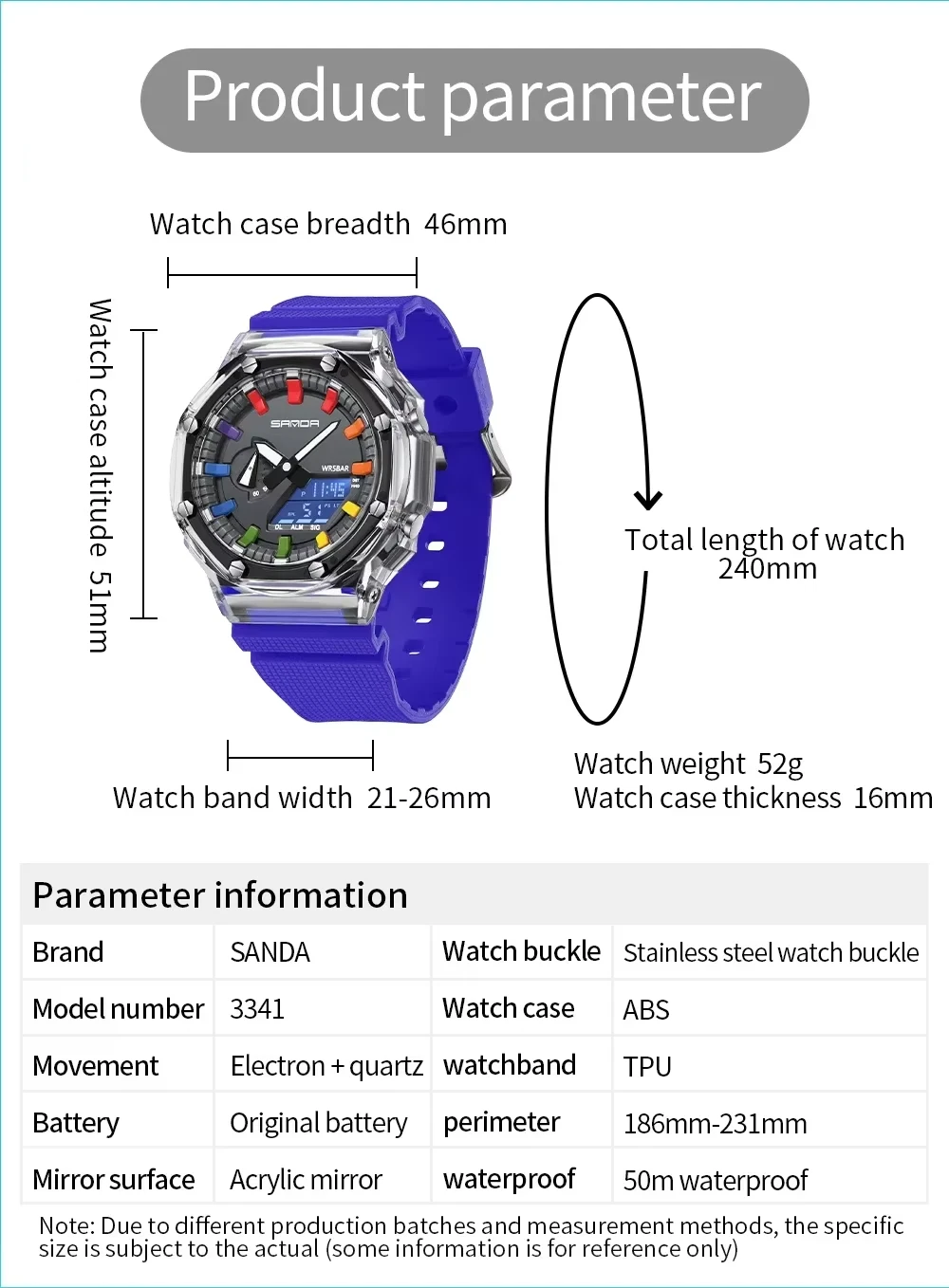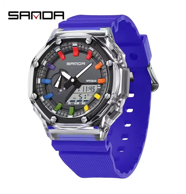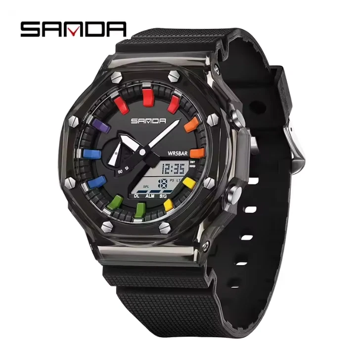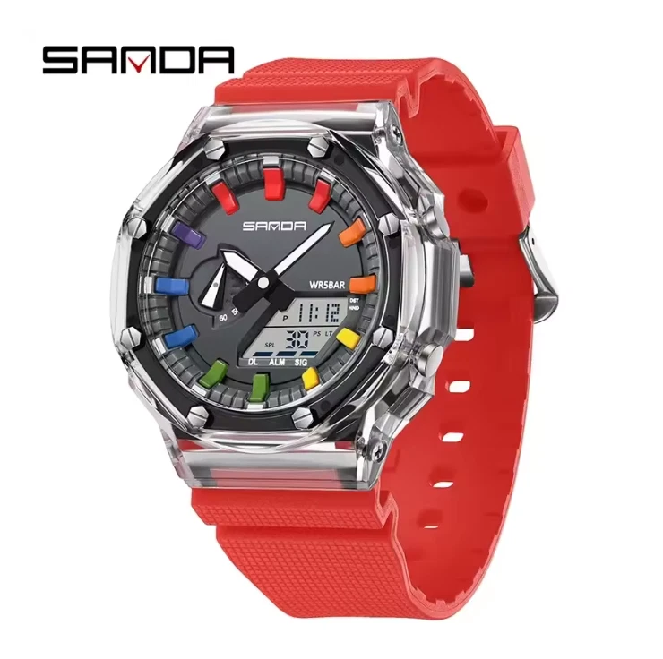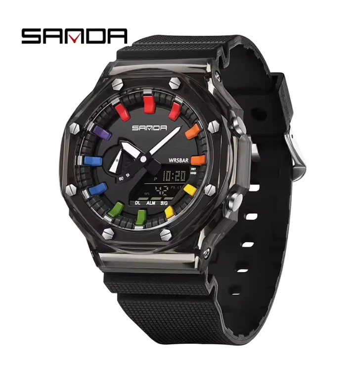 SANDA LED Outdoor Military Waterproof Quartz Retro Digital Watch - Mens