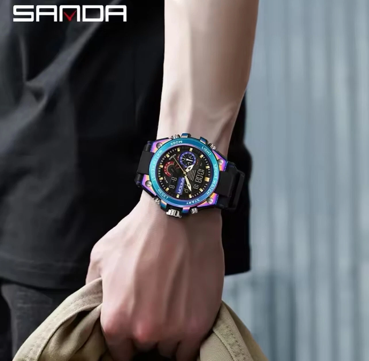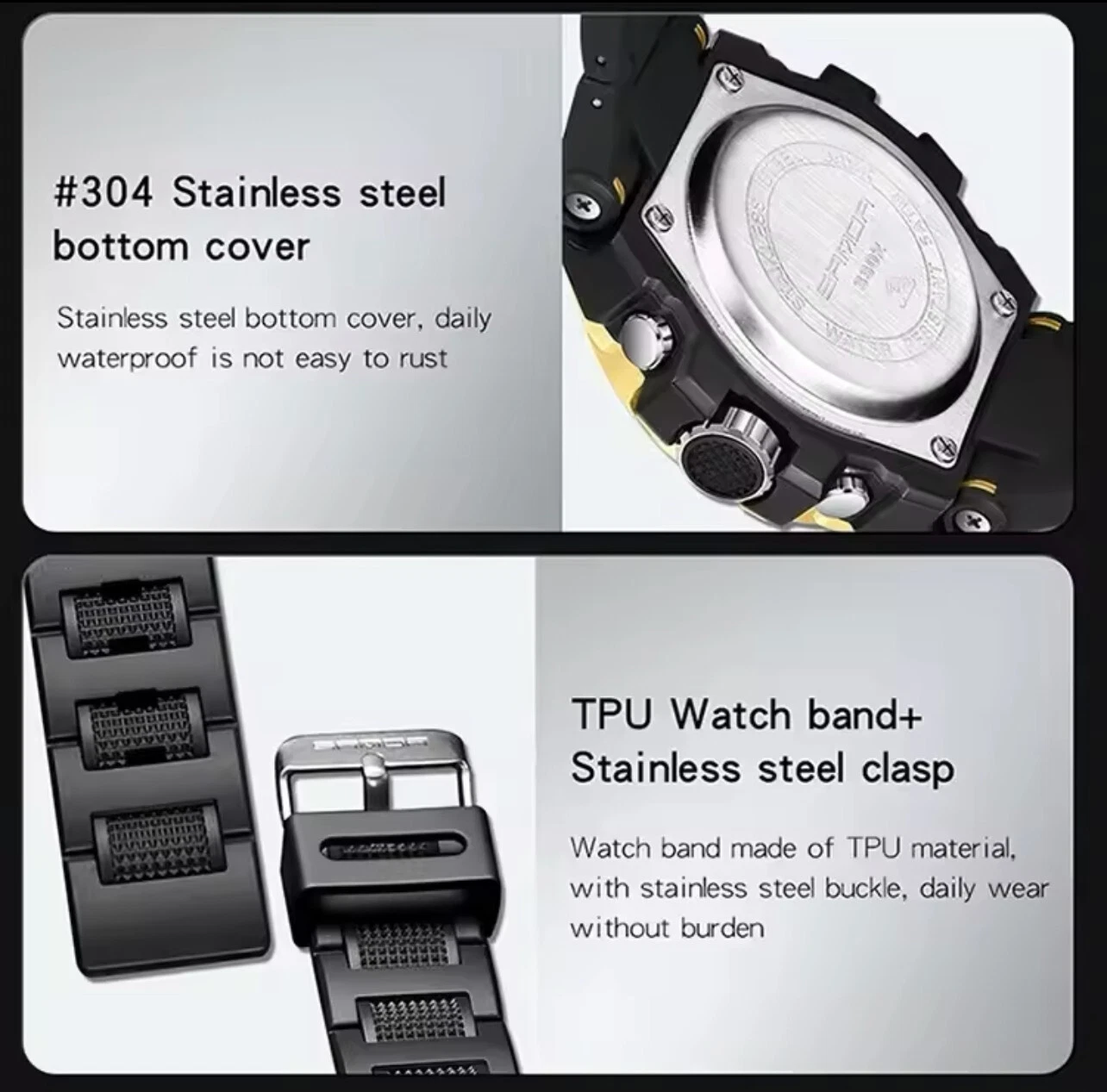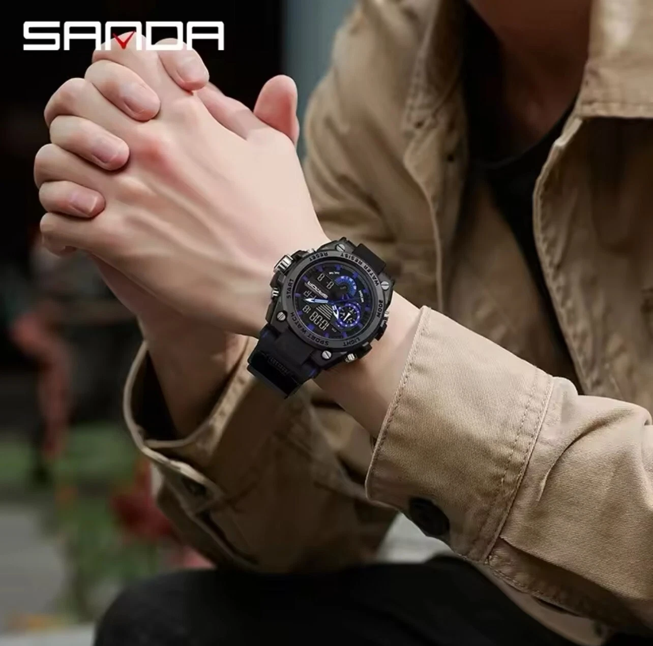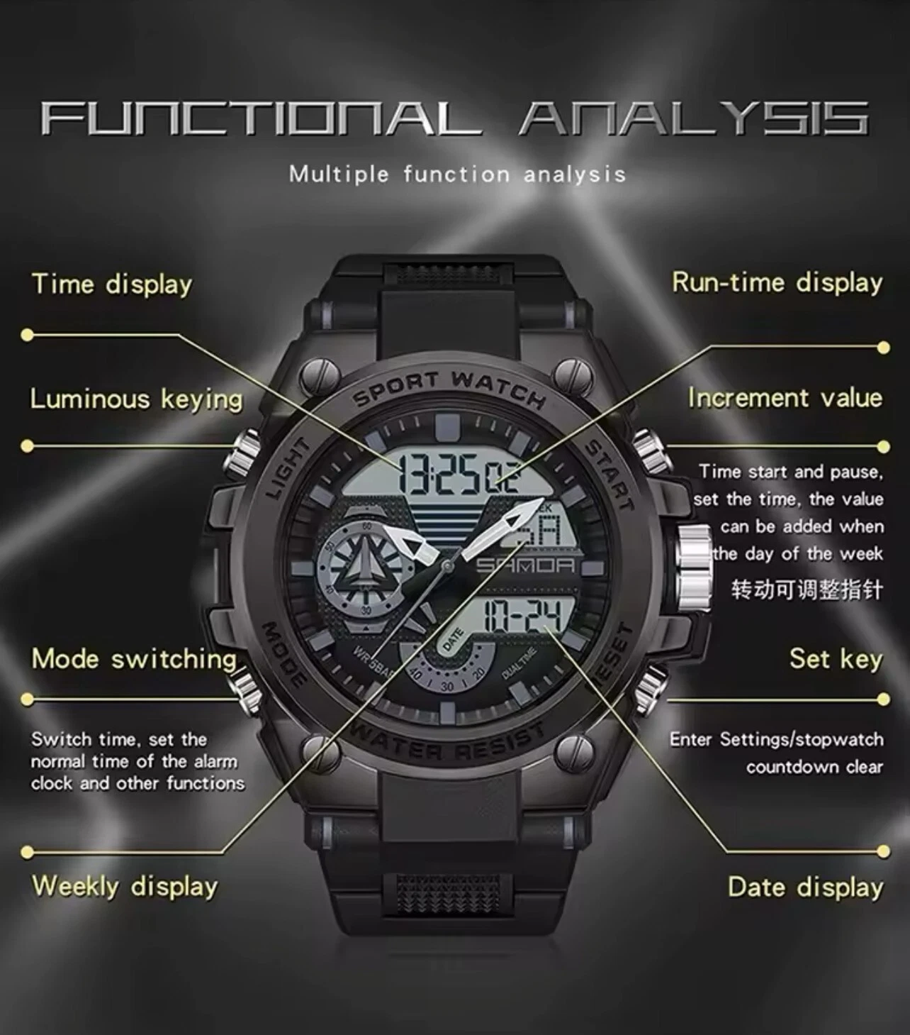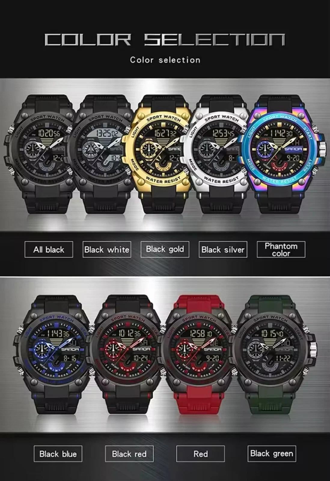 Sanda Men's Electronic Watch Waterproof Dual Display 3302