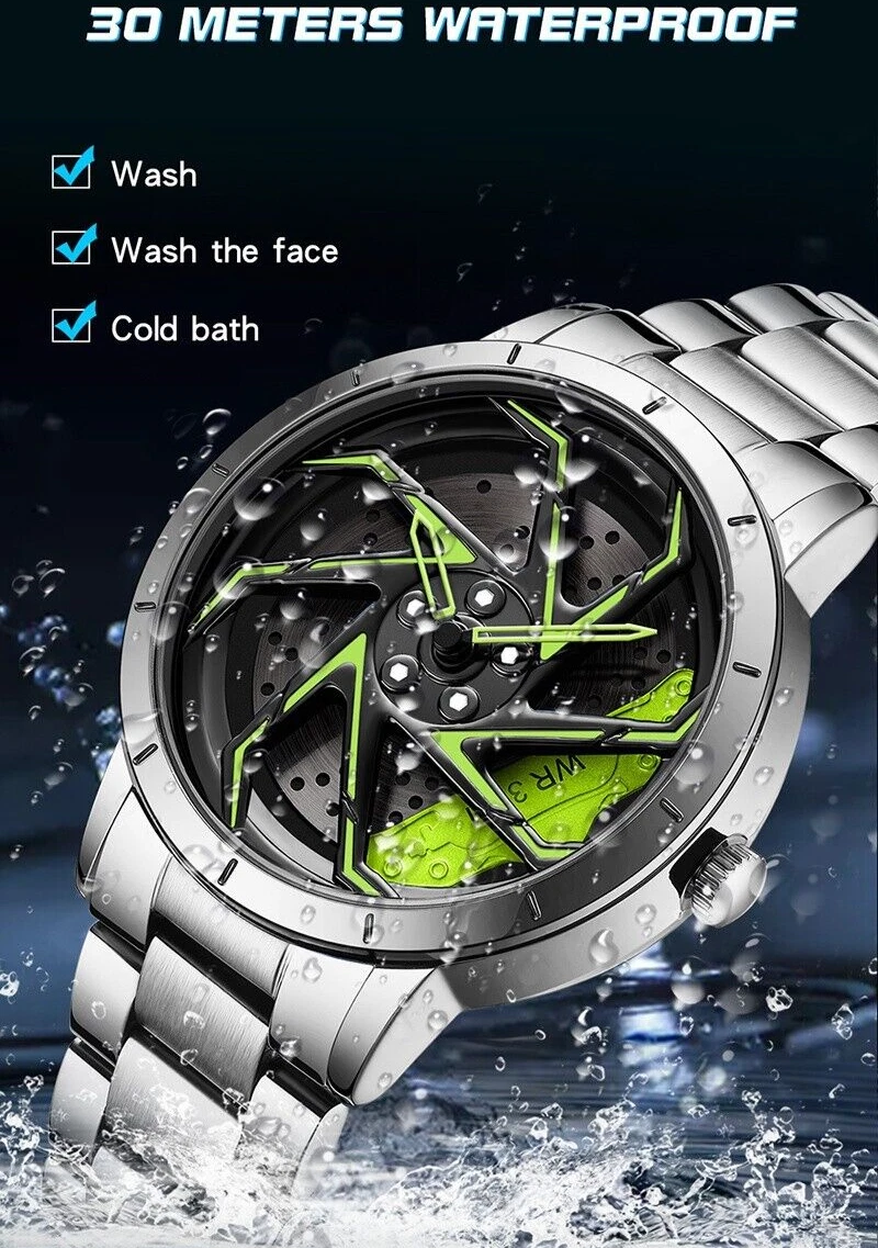 SANDA Car Rim Wheel Rotating Dial Mens Quartz Stainless Wateproof Luminous Watch