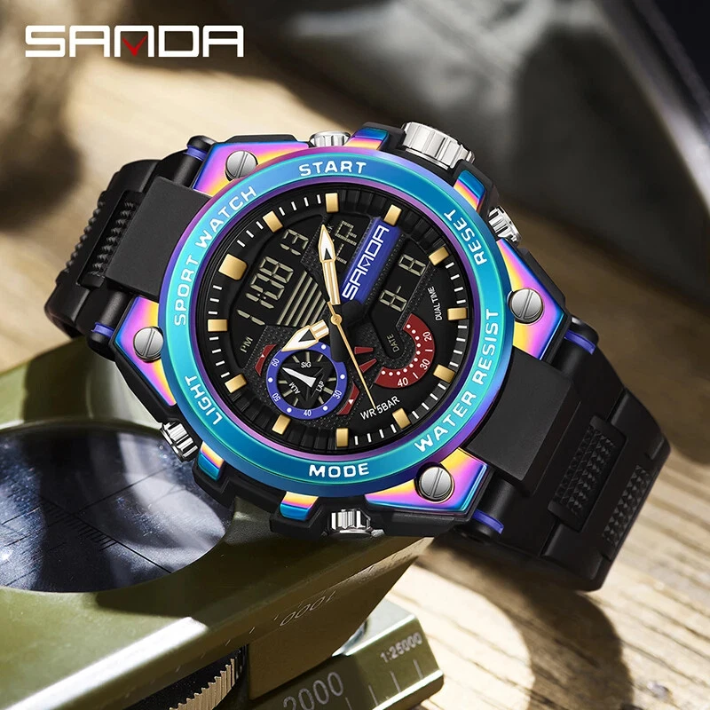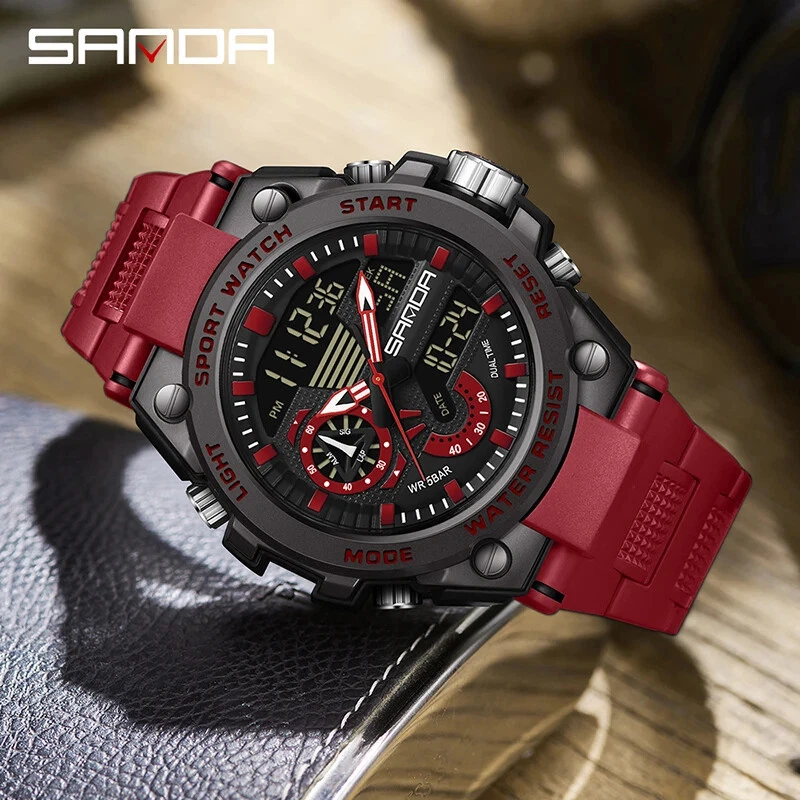 SANDA Men's Electric Watch Trend Outdoor Alarm Shockproof Wristwatch