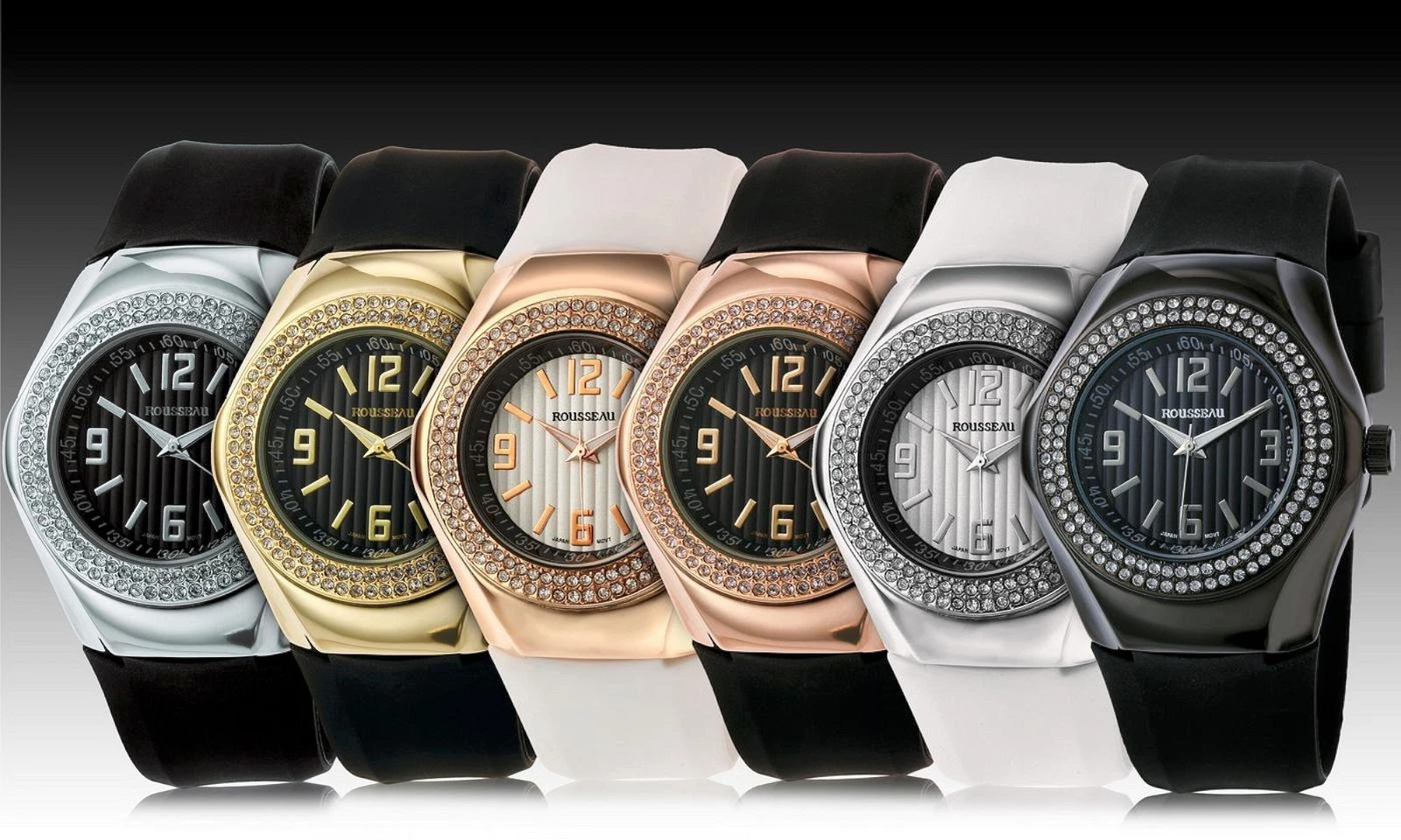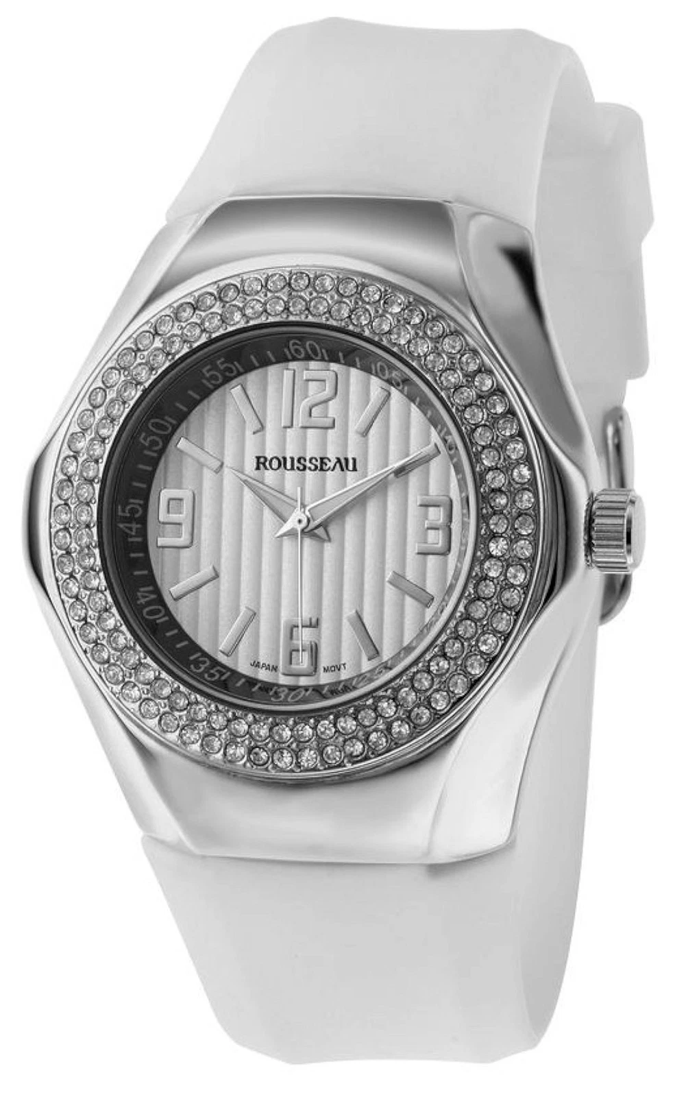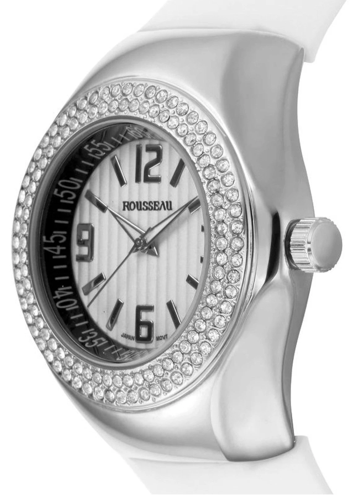 NEW Rousseau 9664 Women's Mela Collection Swarovski Bezel Silver/White Qtz Watch
