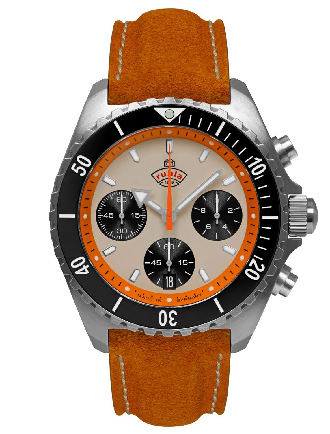 Ruhla Men's Watch Chronograph Glasbach Cup Orange Chrono 4970-1