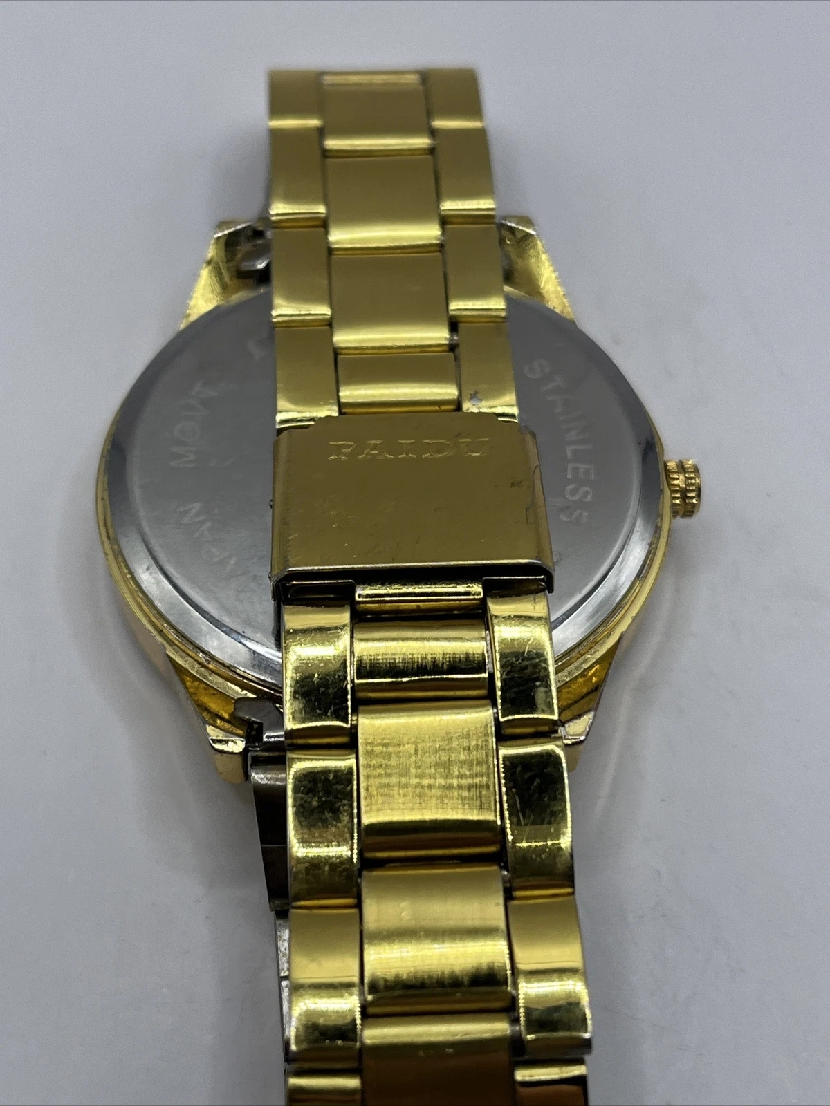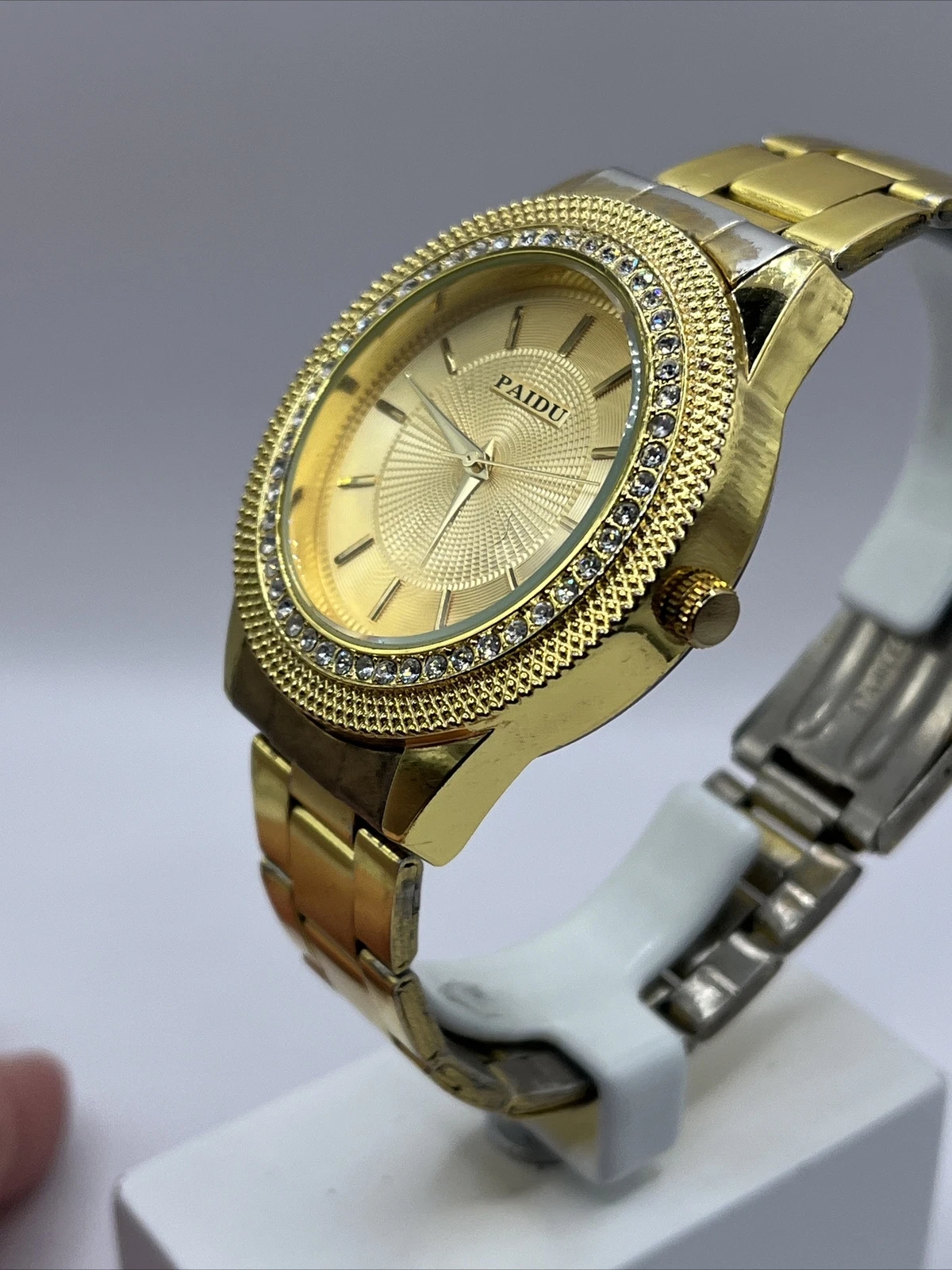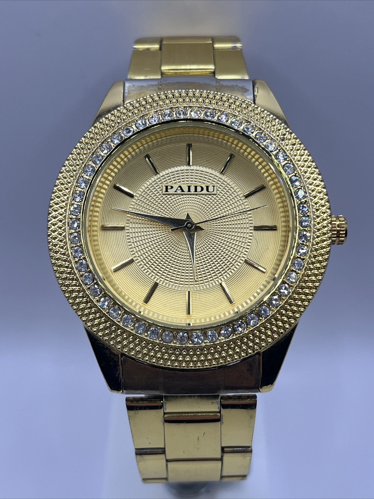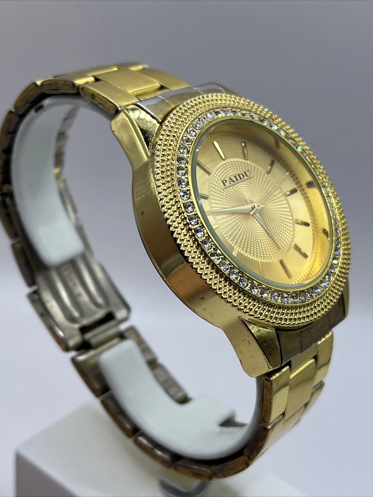 Paidu Men's Quartz Watch Gold Tone Bracelet Band Rhinestones- New Battery