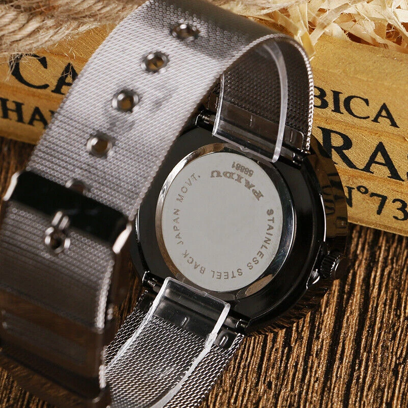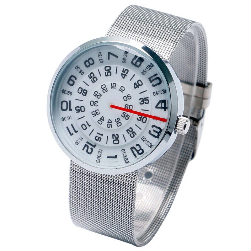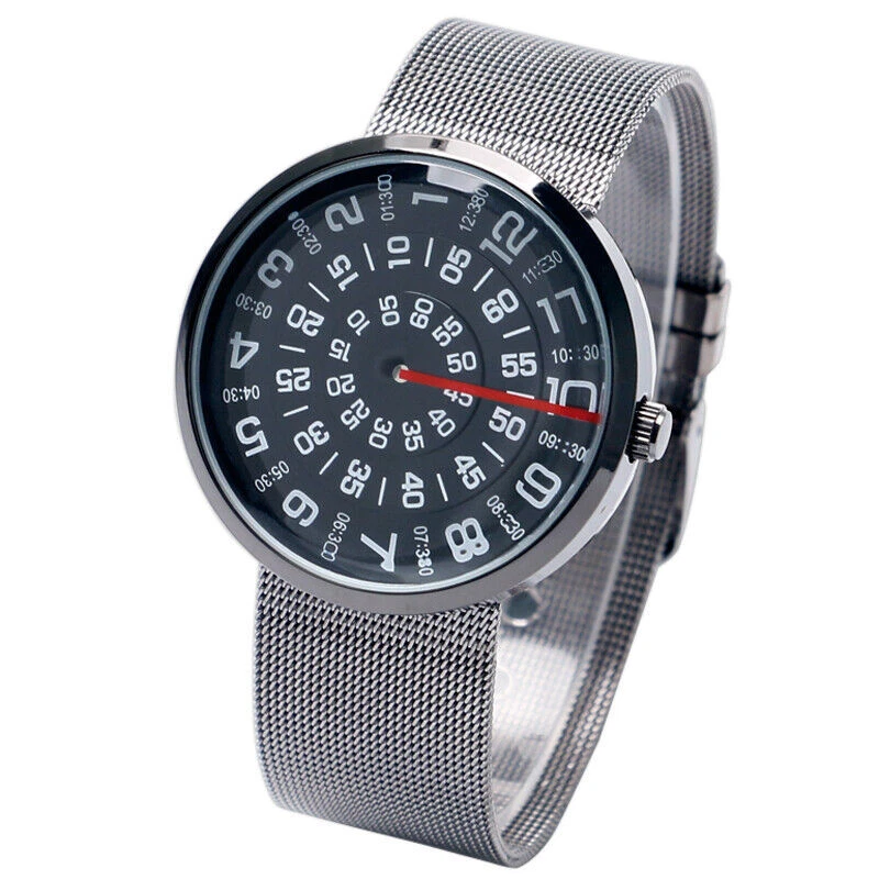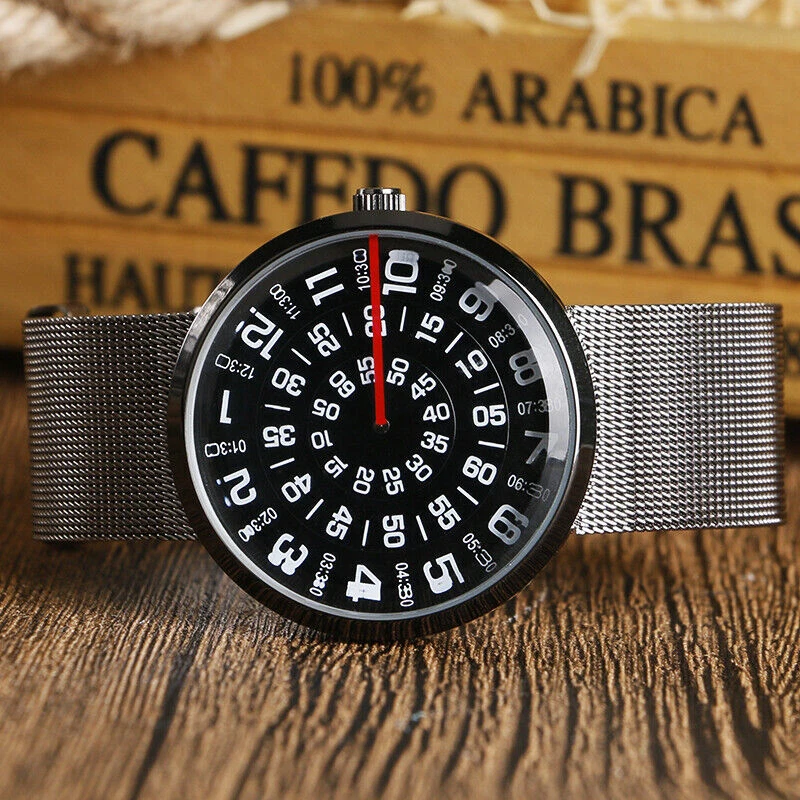 Mens Watch Turntable Dial Quartz Unique Wristwatches Stainless Steel Strap