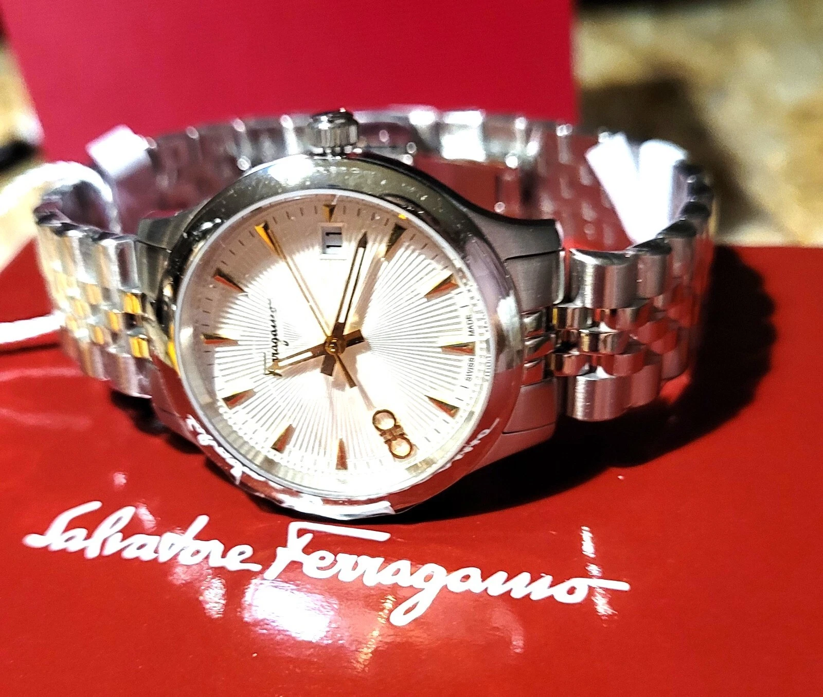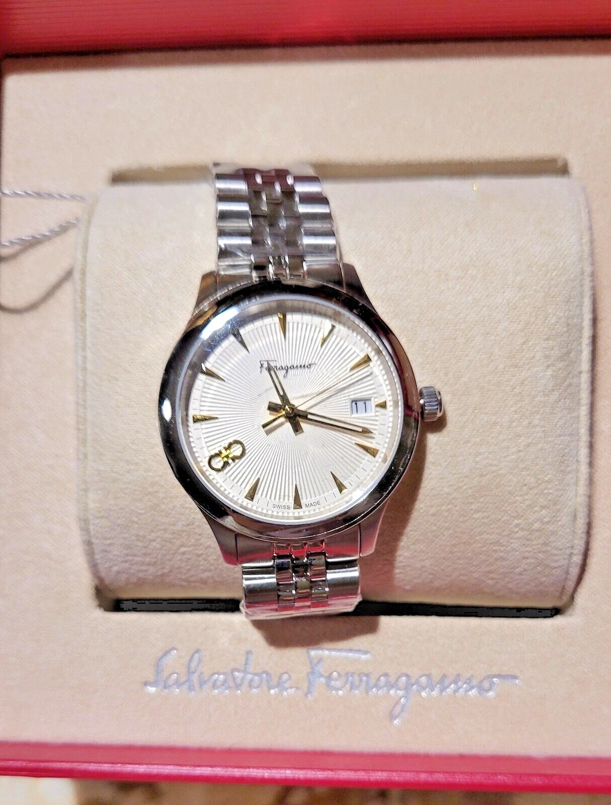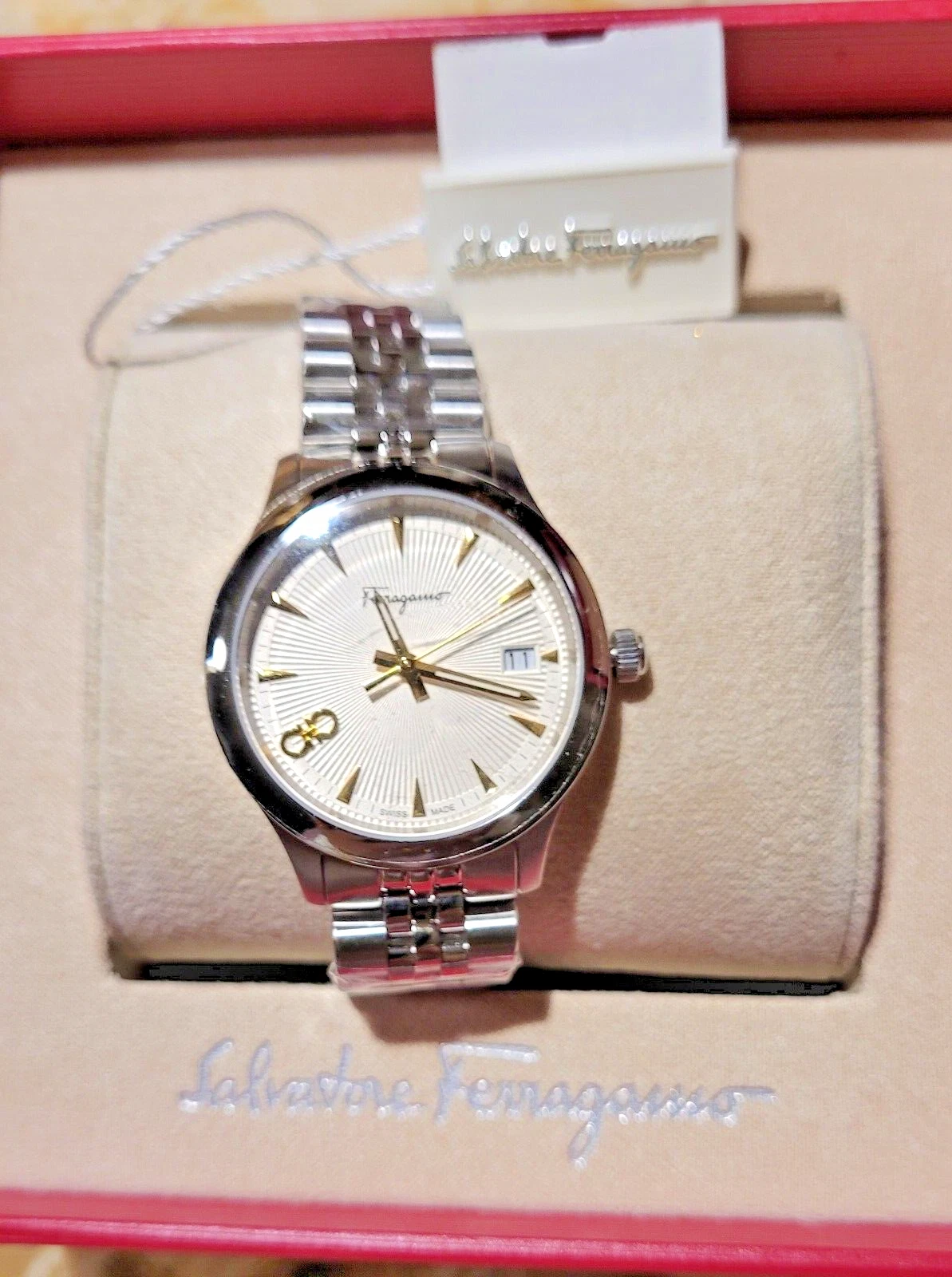 NWT Salvatore Ferragamo Swiss Made Double Gancio Sapphire Crystal Women's Watch