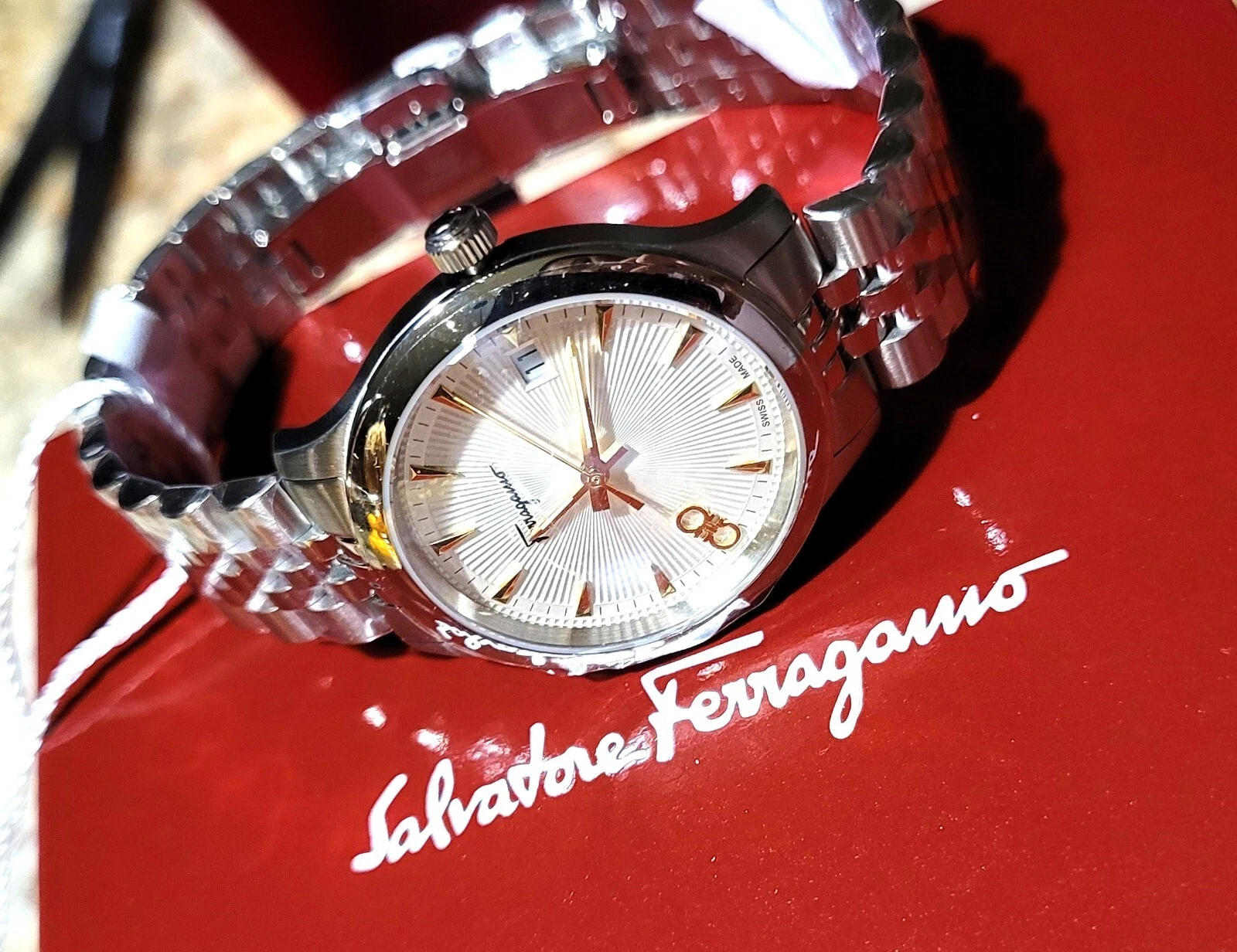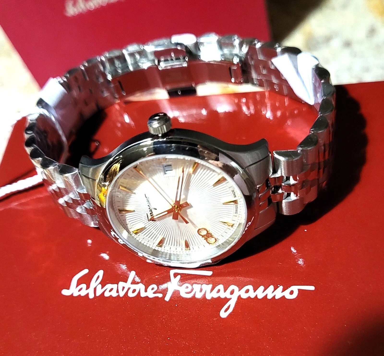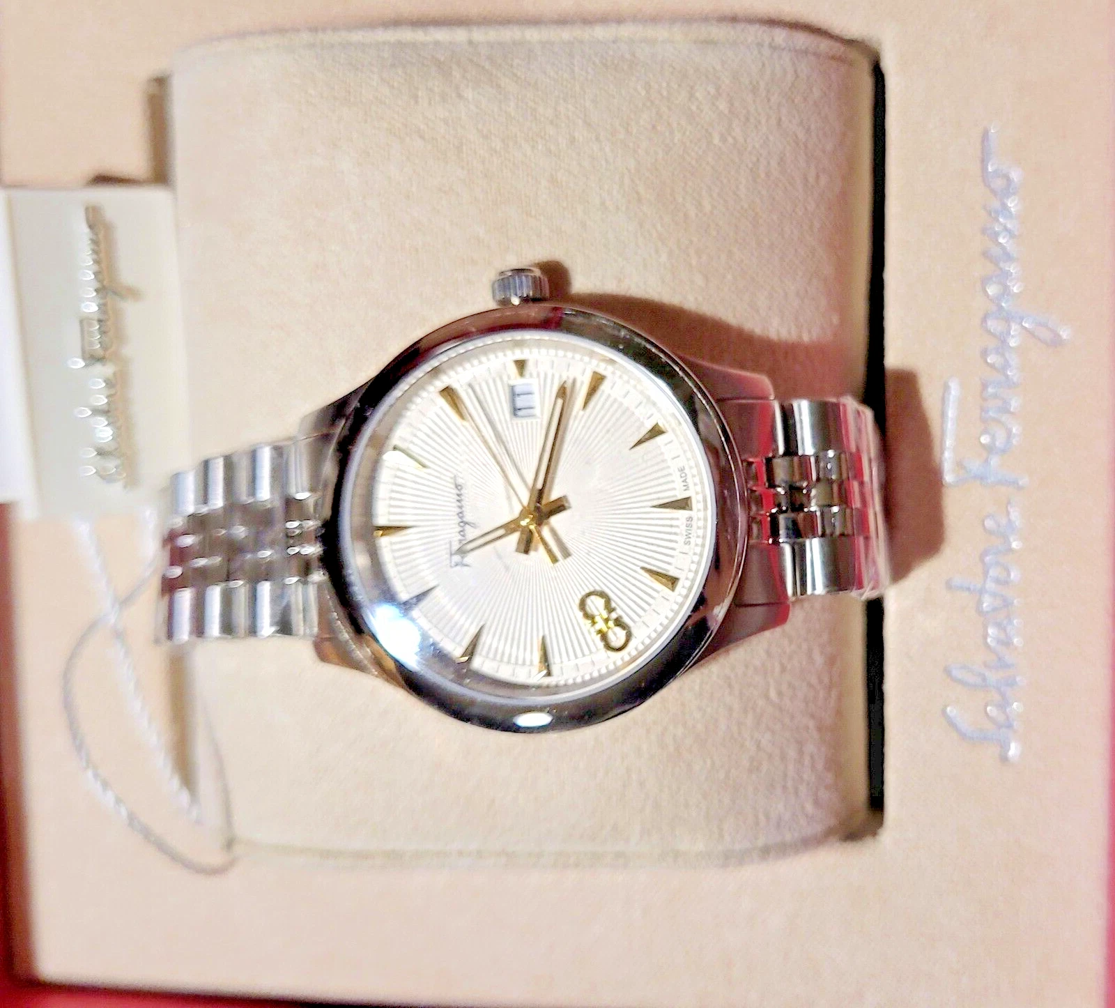 NWT Salvatore Ferragamo Swiss Made Double Gancio Sapphire Crystal Women's Watch