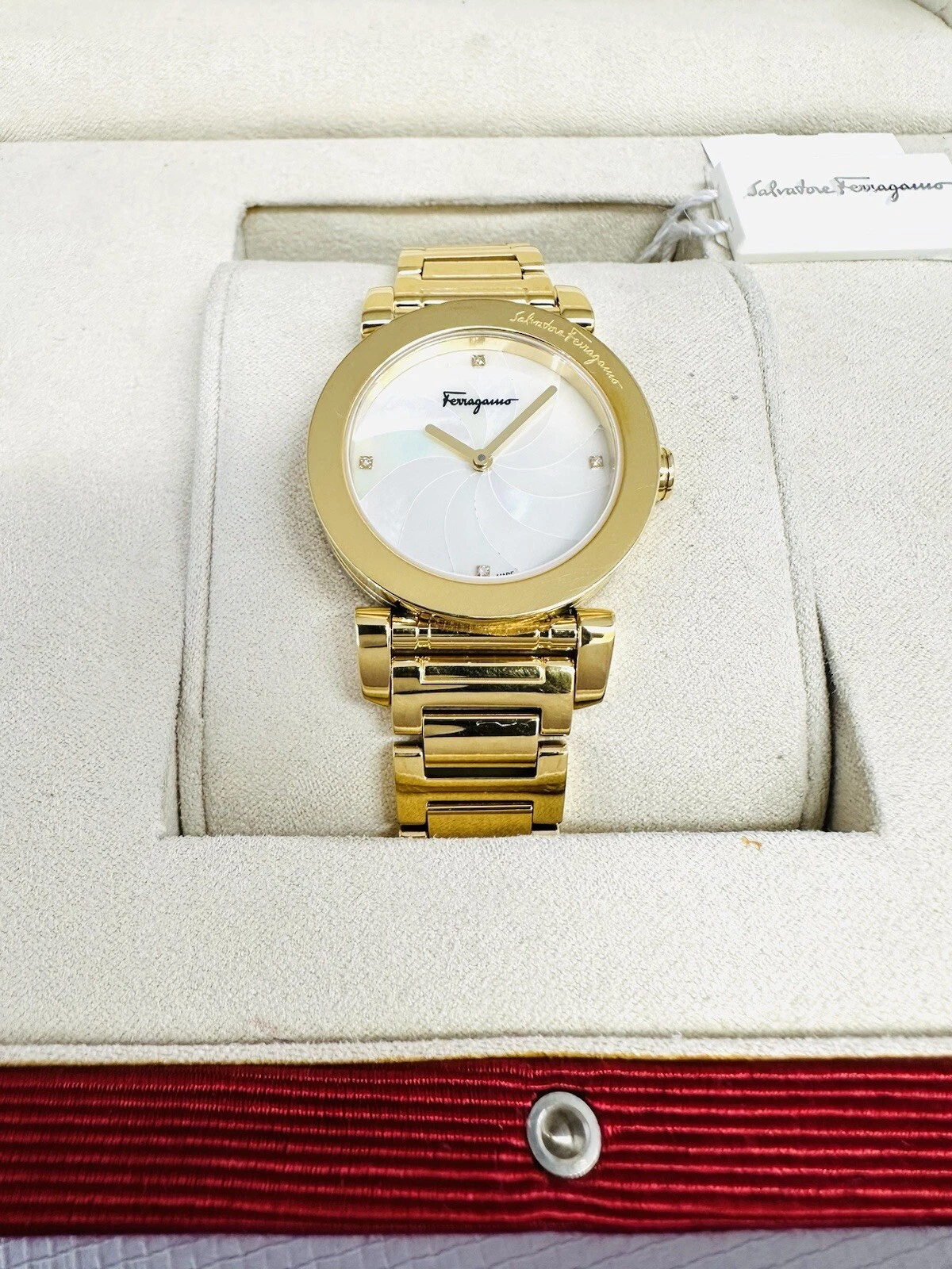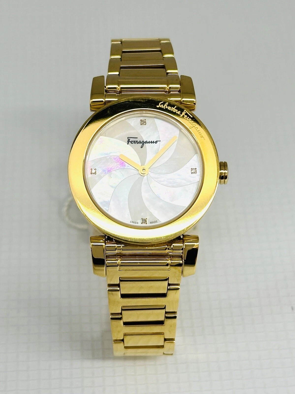 Ferragamo Women's FP1730016 Gold IP Treatment MOP Dial Dimond Indexes Watch