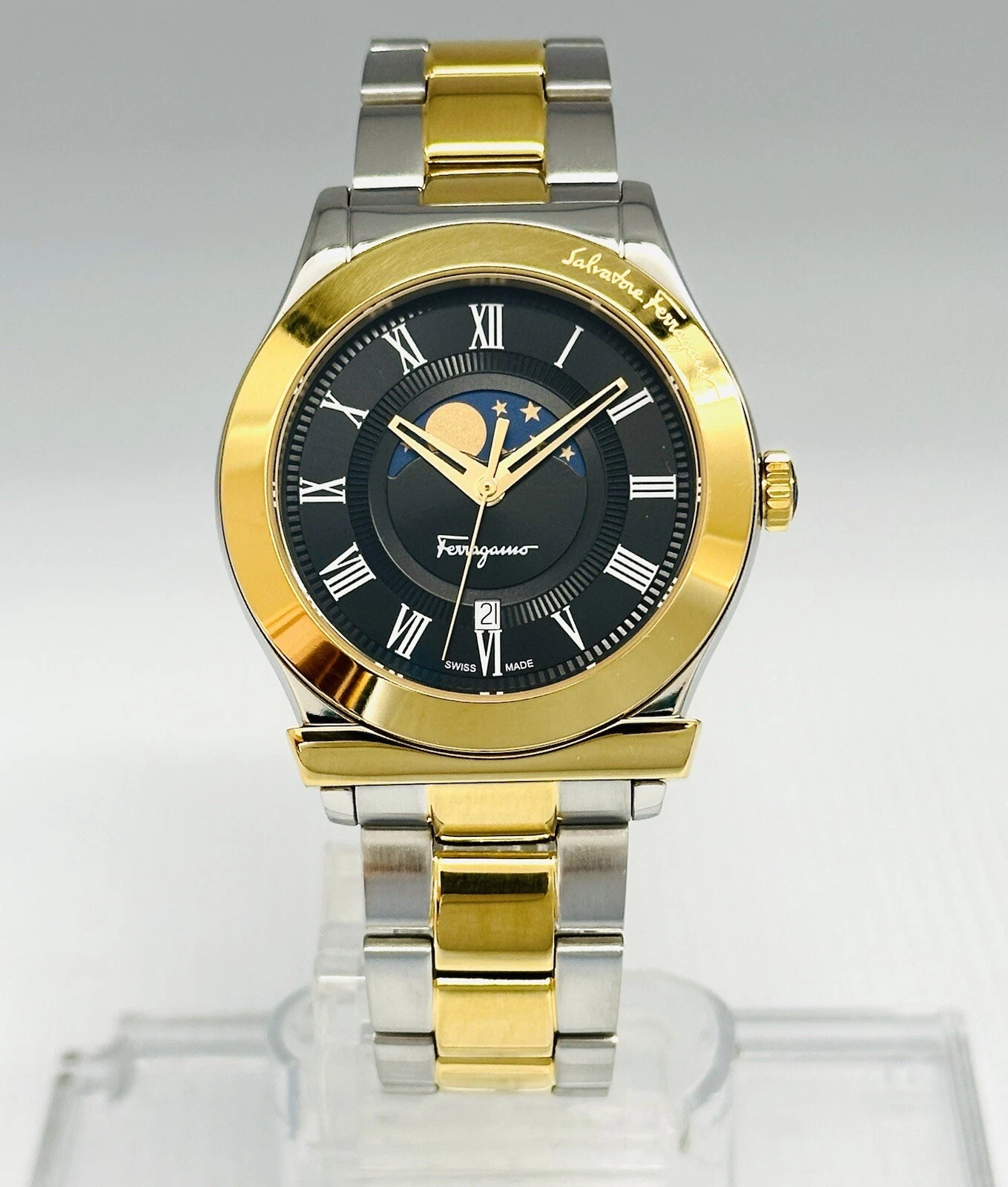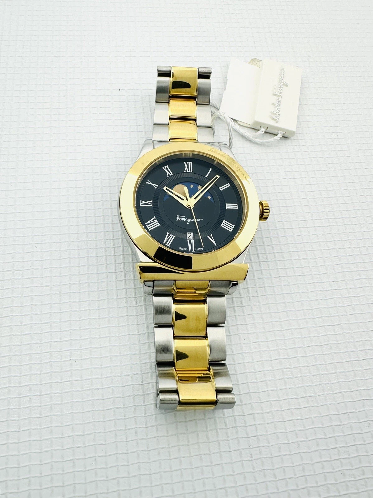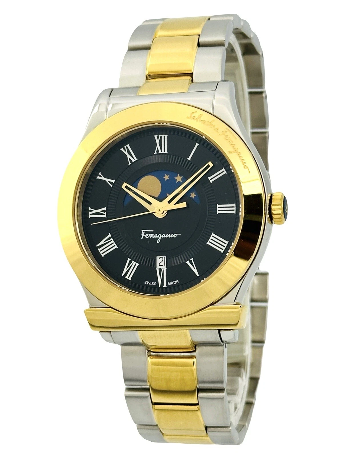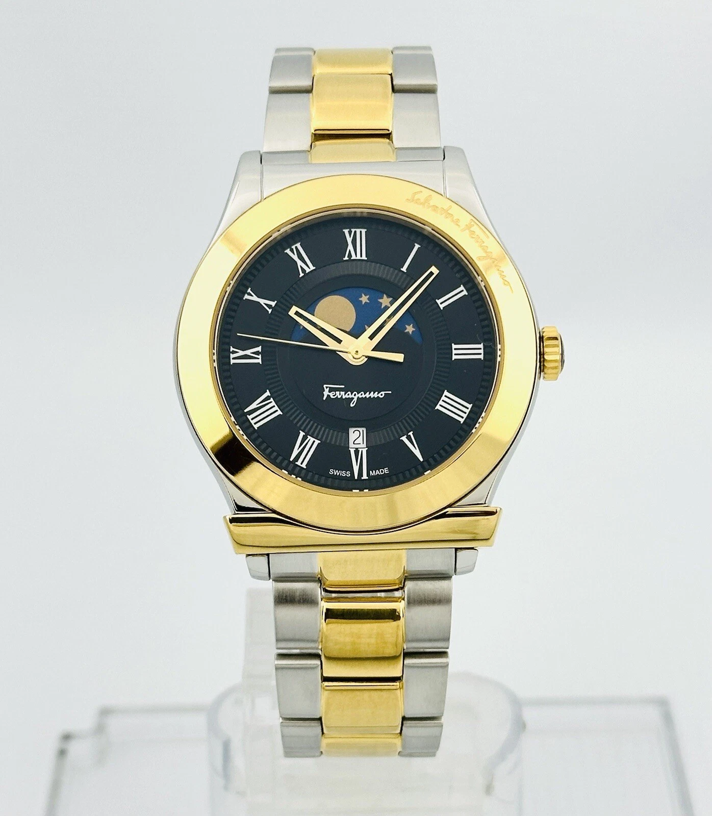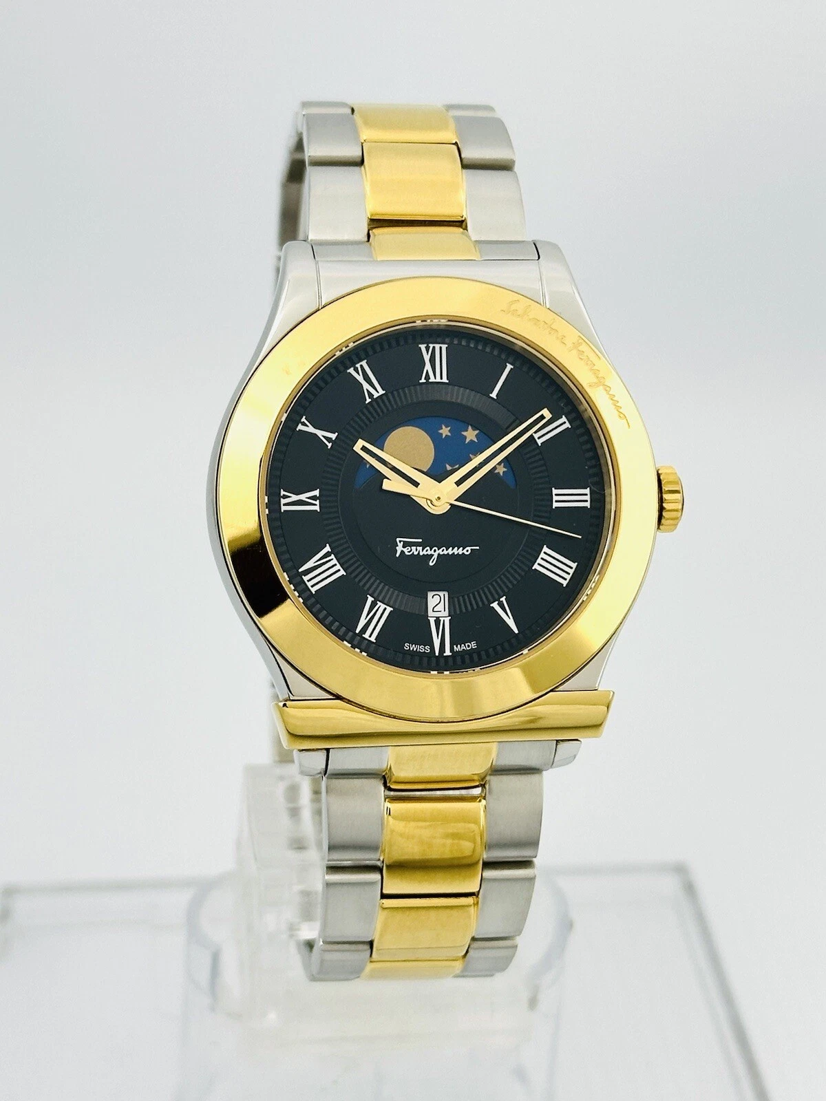 Salvatore Ferragamo 1898 FBG05 0016 Gold IP 2N StainlessSteel Moon Phase Watch