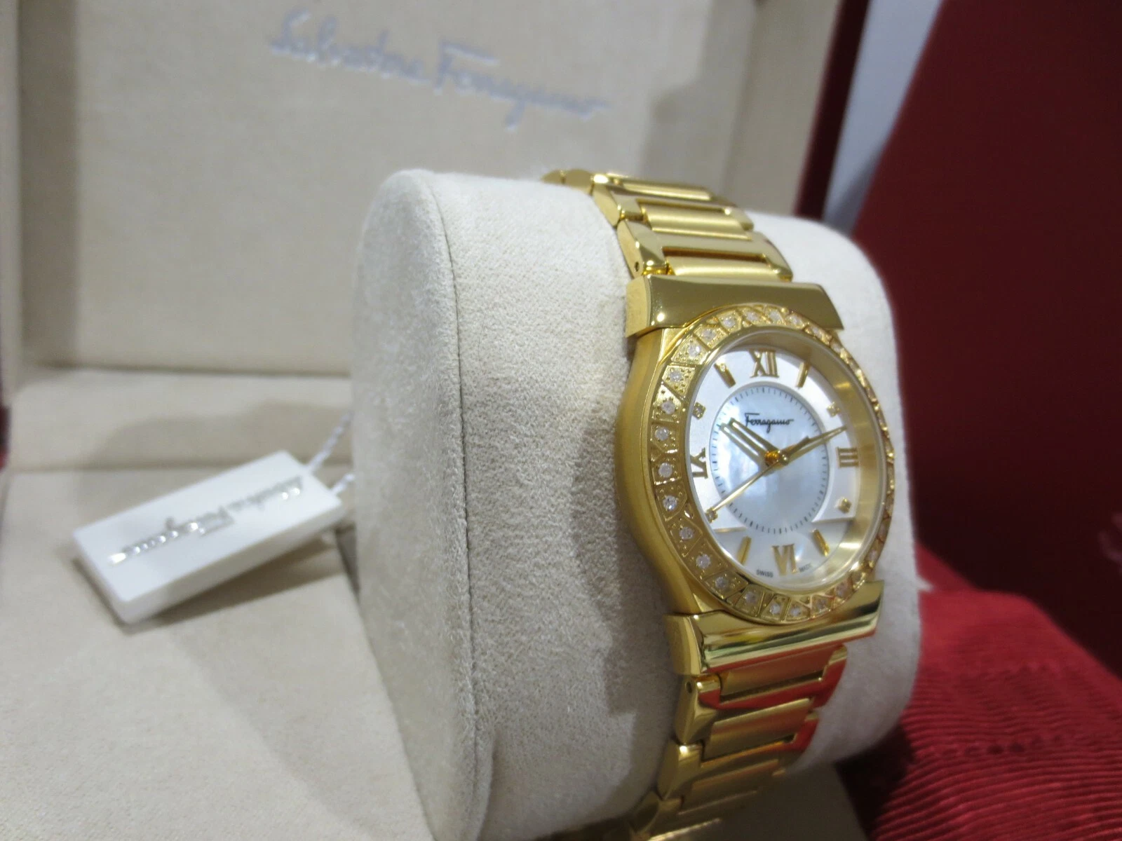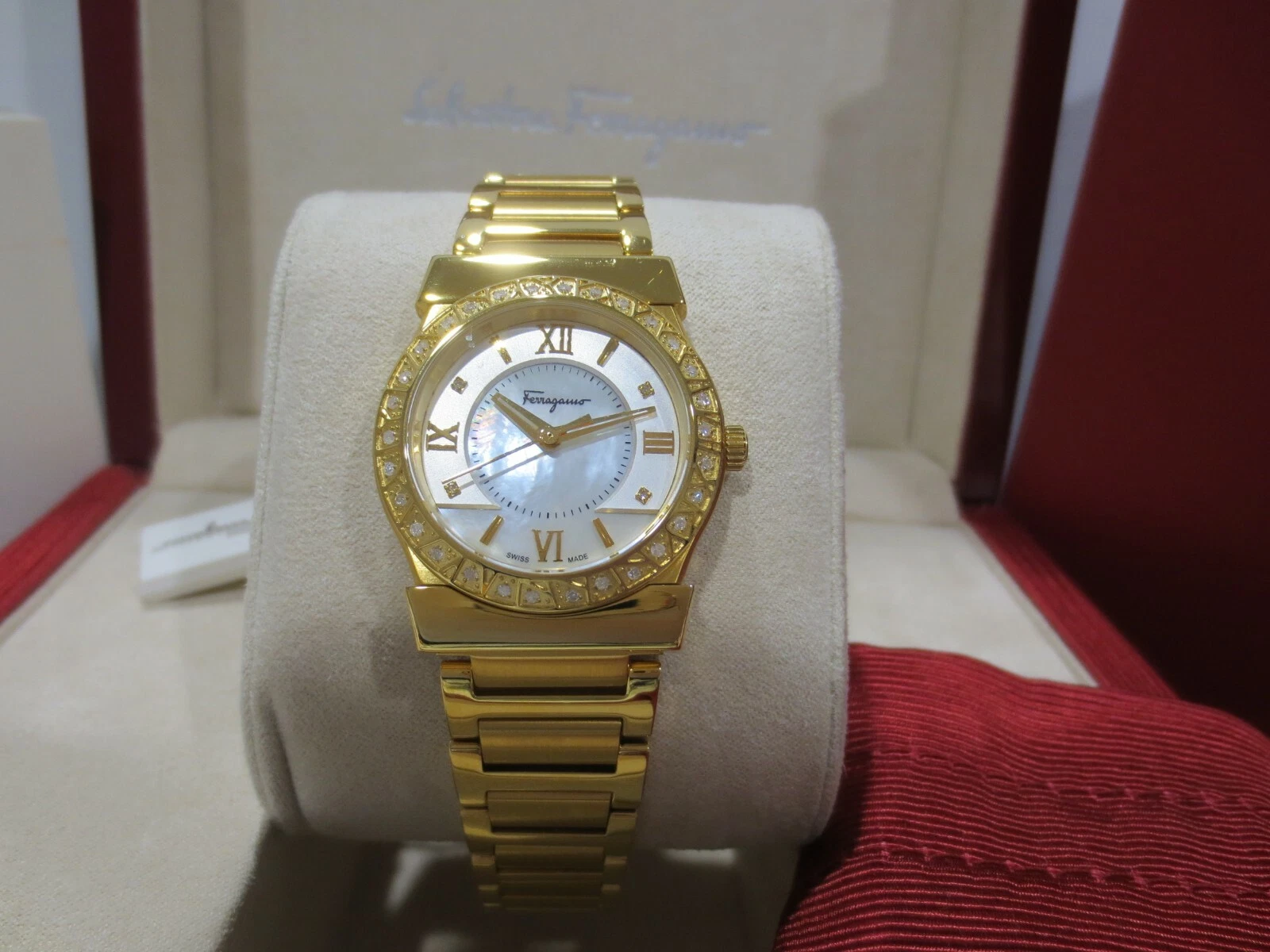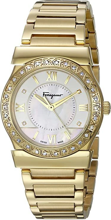 Salvatore Ferragamo Women's FI1910015 VEGA DIAMONDS MOP Dial Gold IP Watch