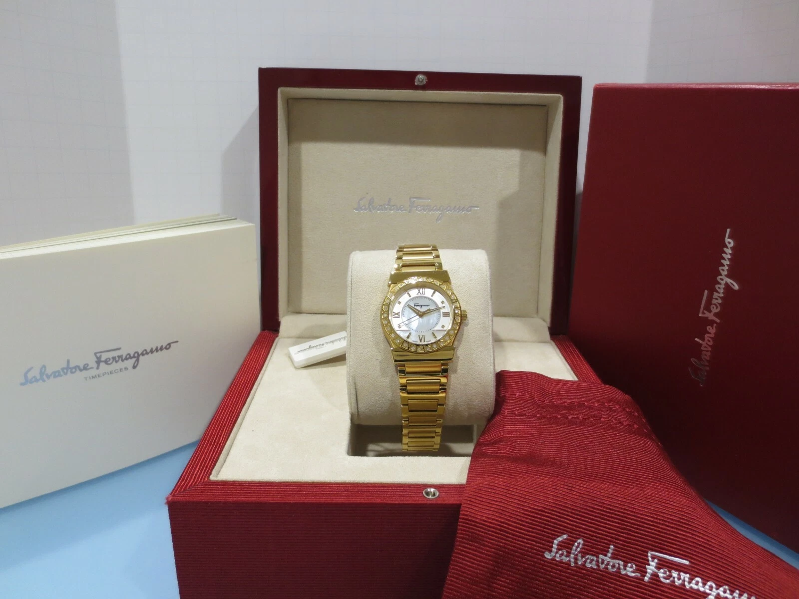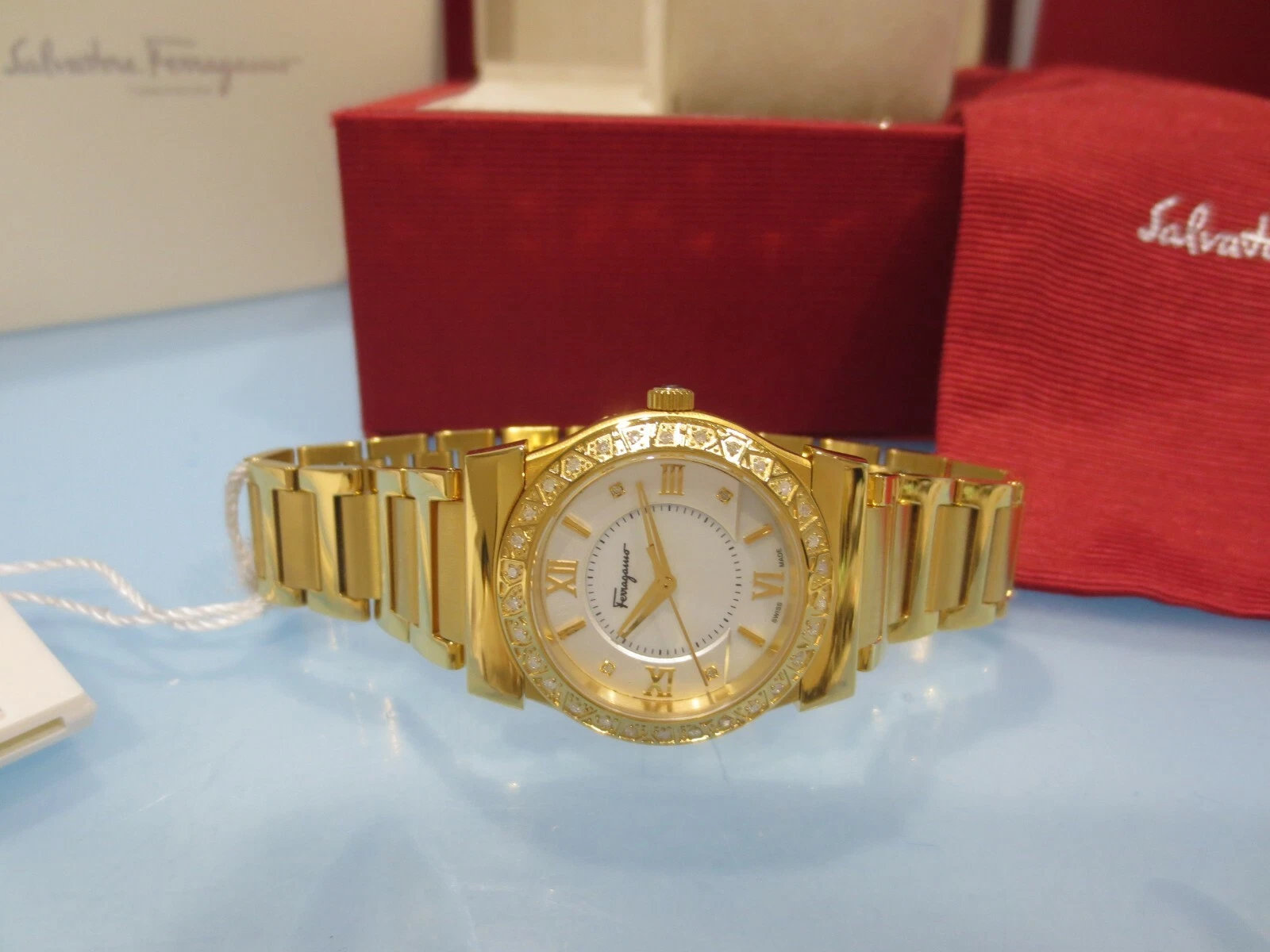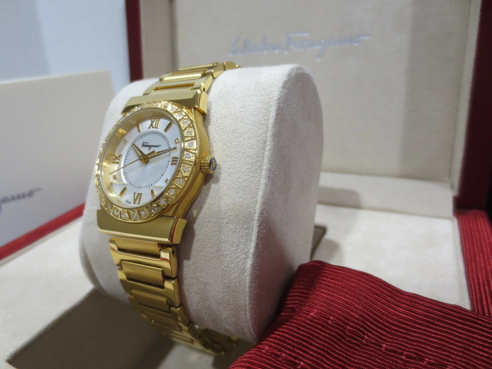 Salvatore Ferragamo Women's FI1910015 VEGA DIAMONDS MOP Dial Gold IP Watch