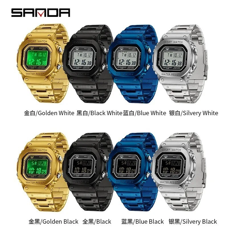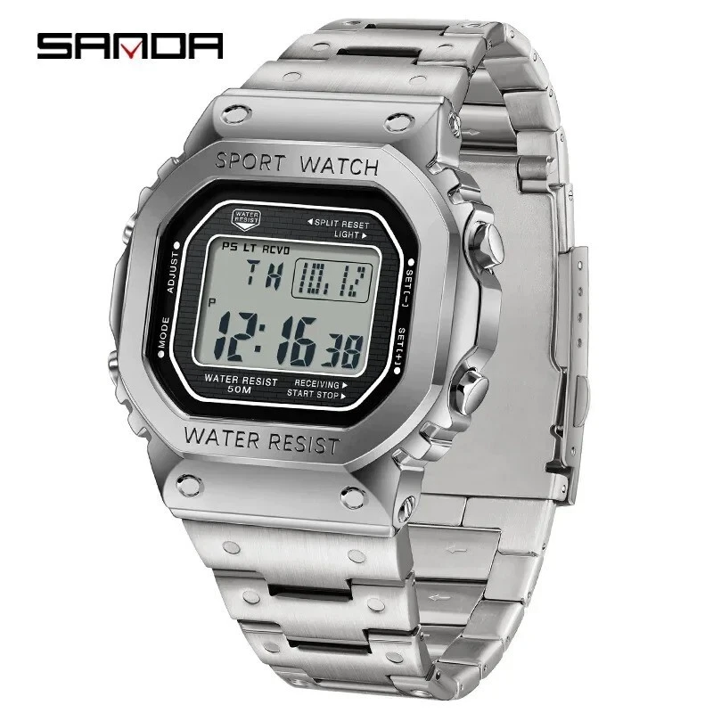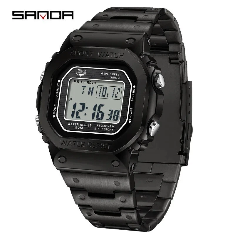 SANDA Men's Electronic Watch Square Sport Wristwatch Waterproof Stainless Steel