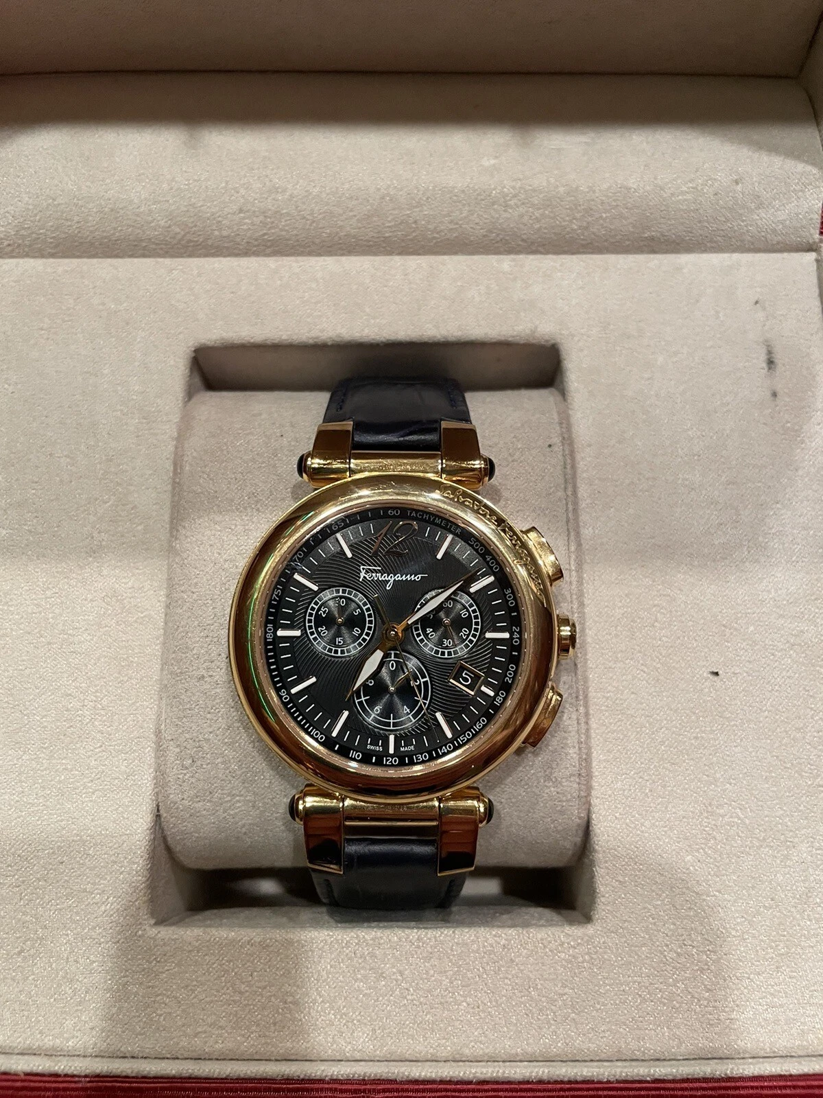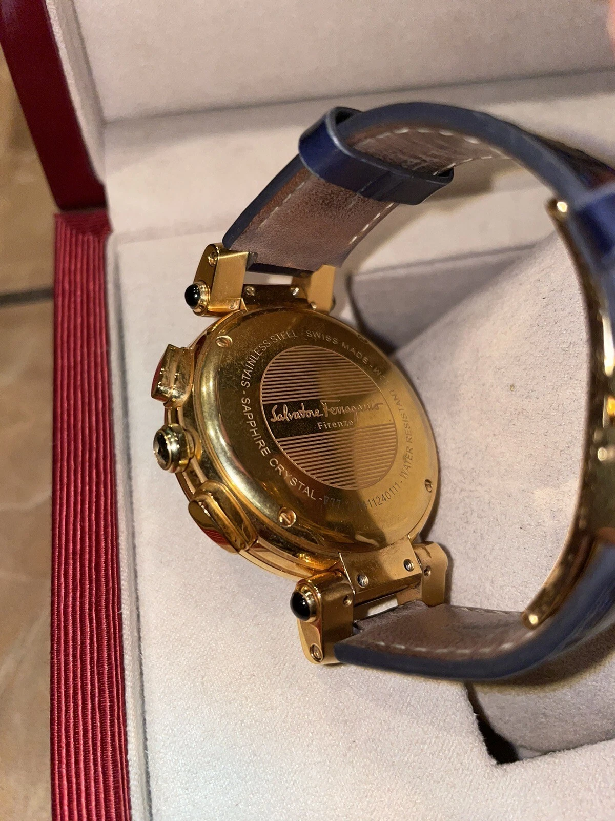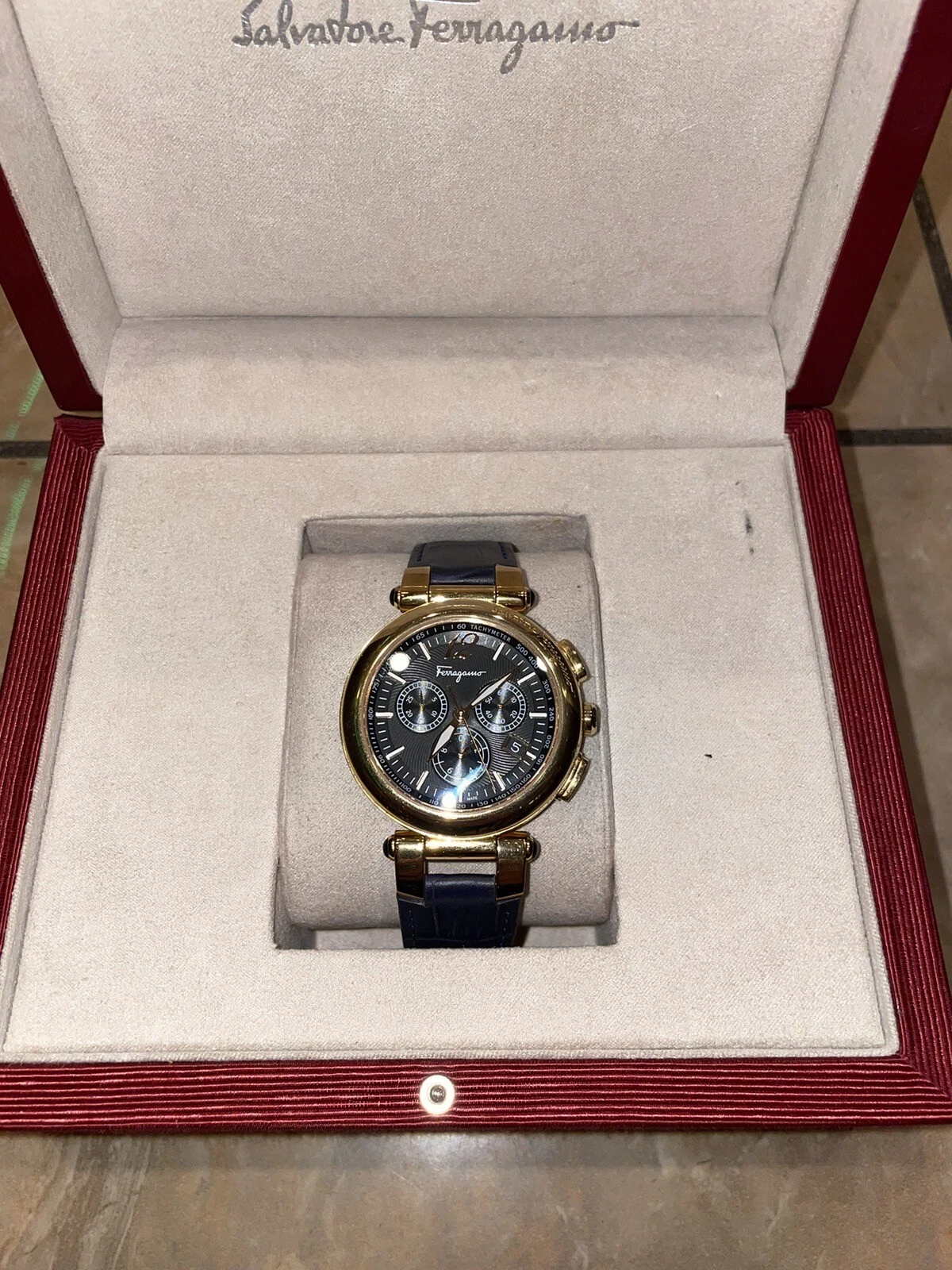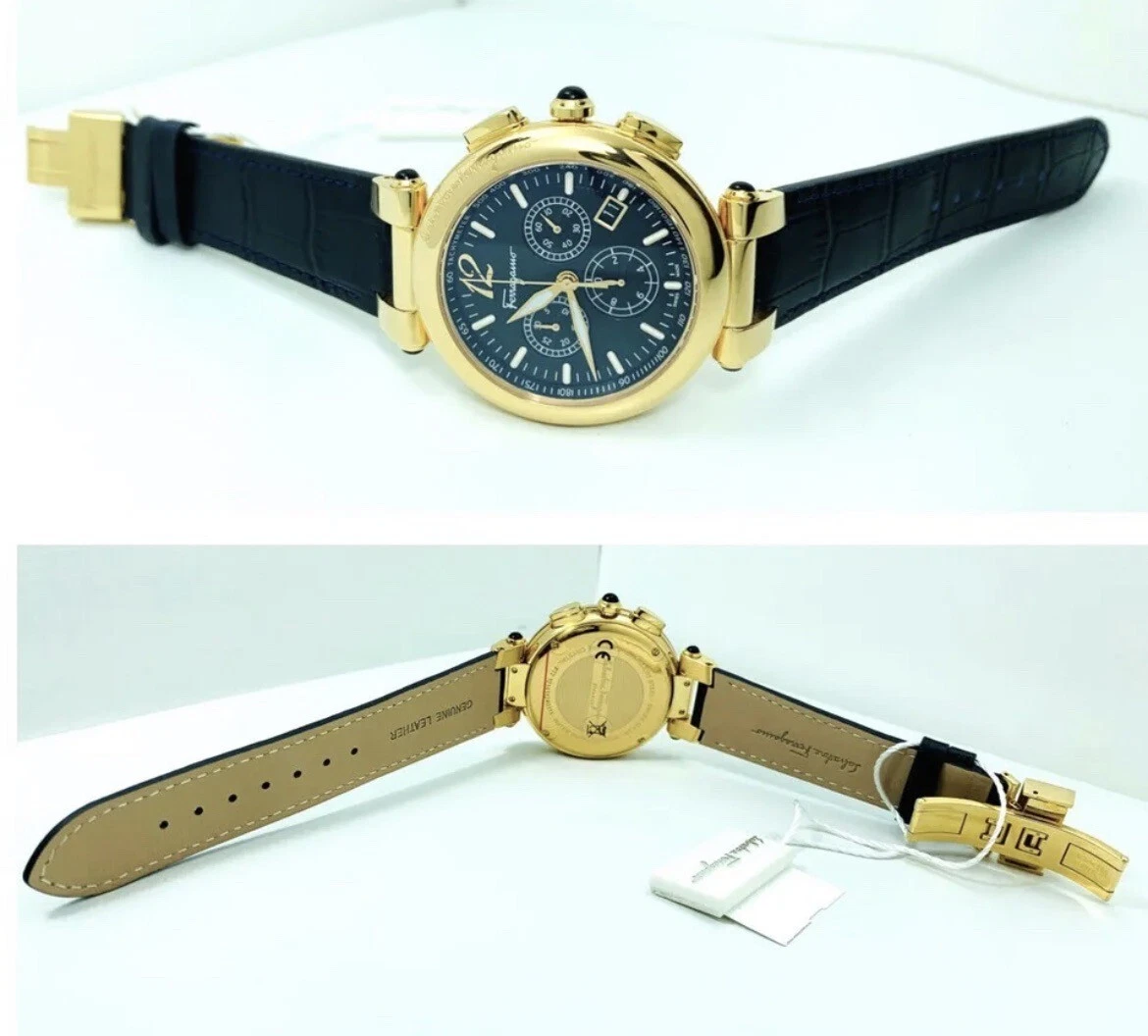 Salvatore Ferragamo IDILLIO F77LCQ5009SB09 Unisex Golden Dark Blue Strap Watch