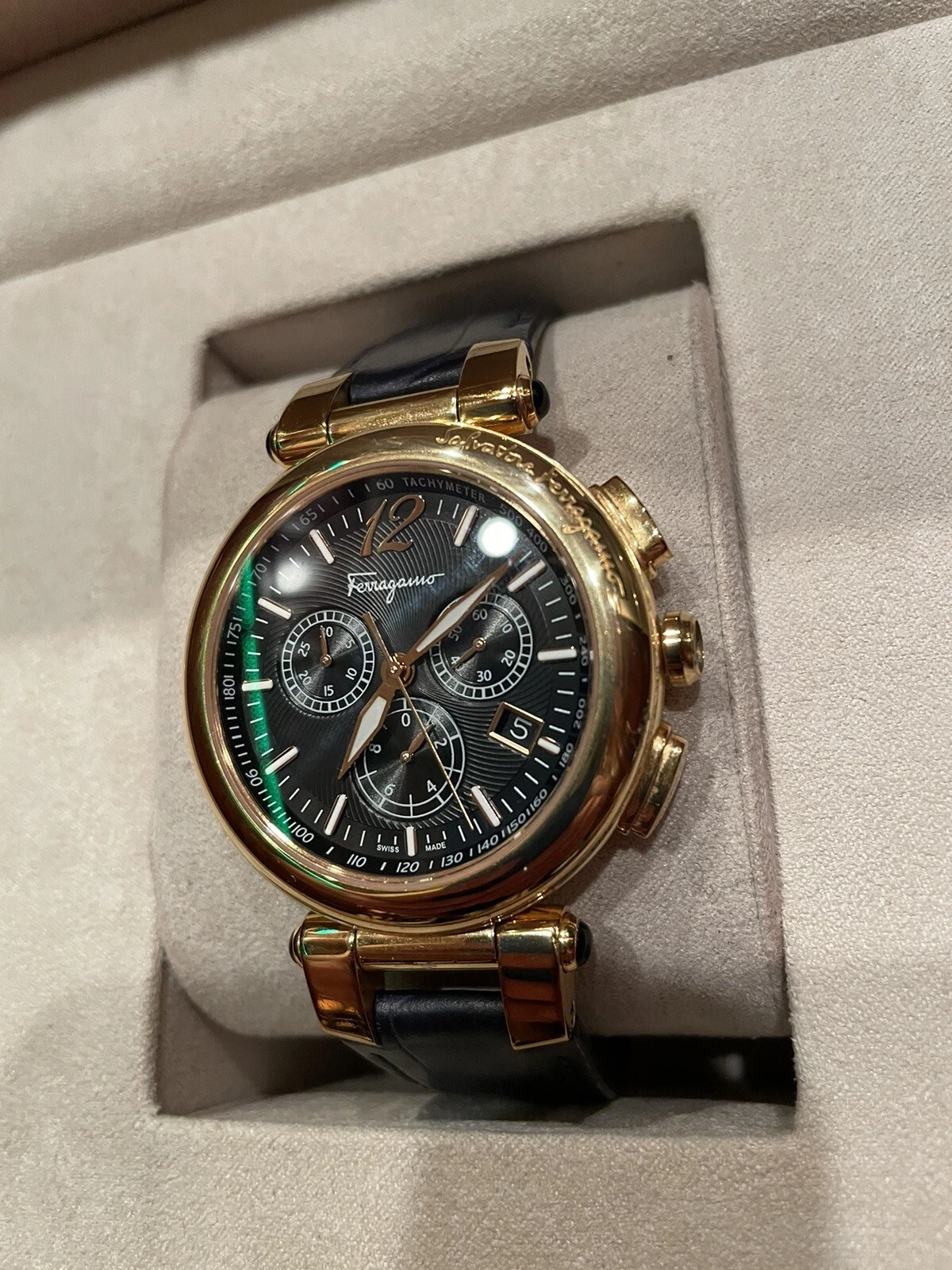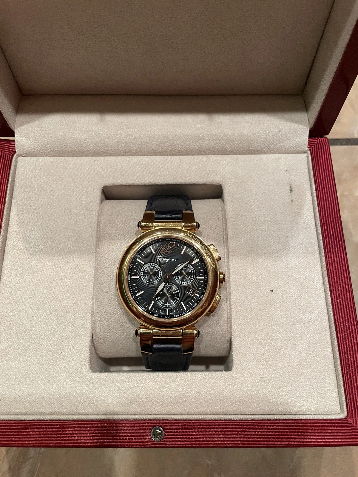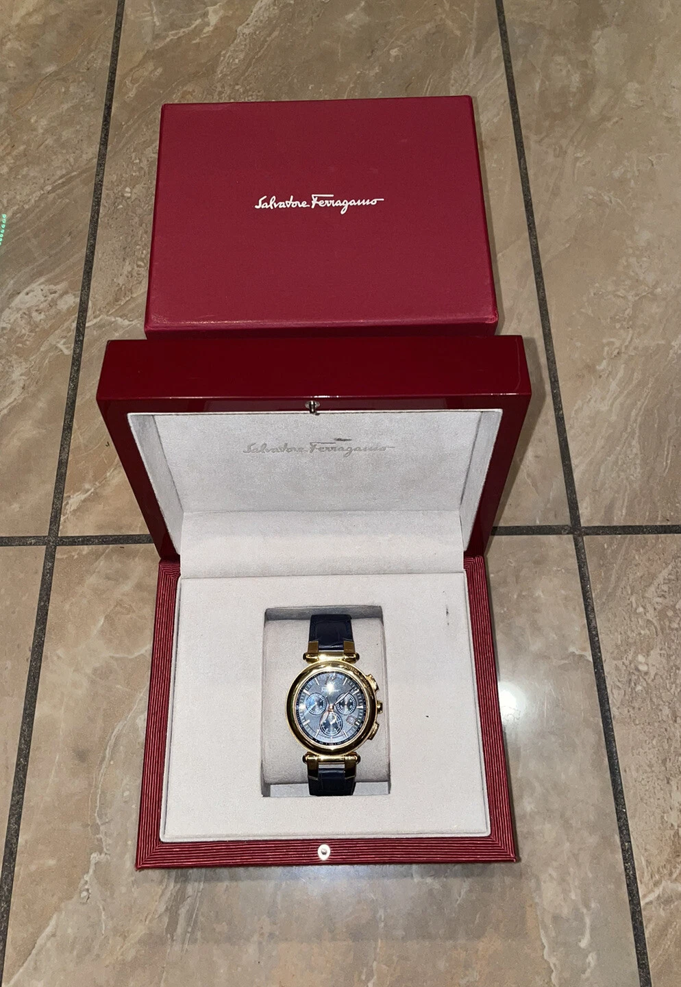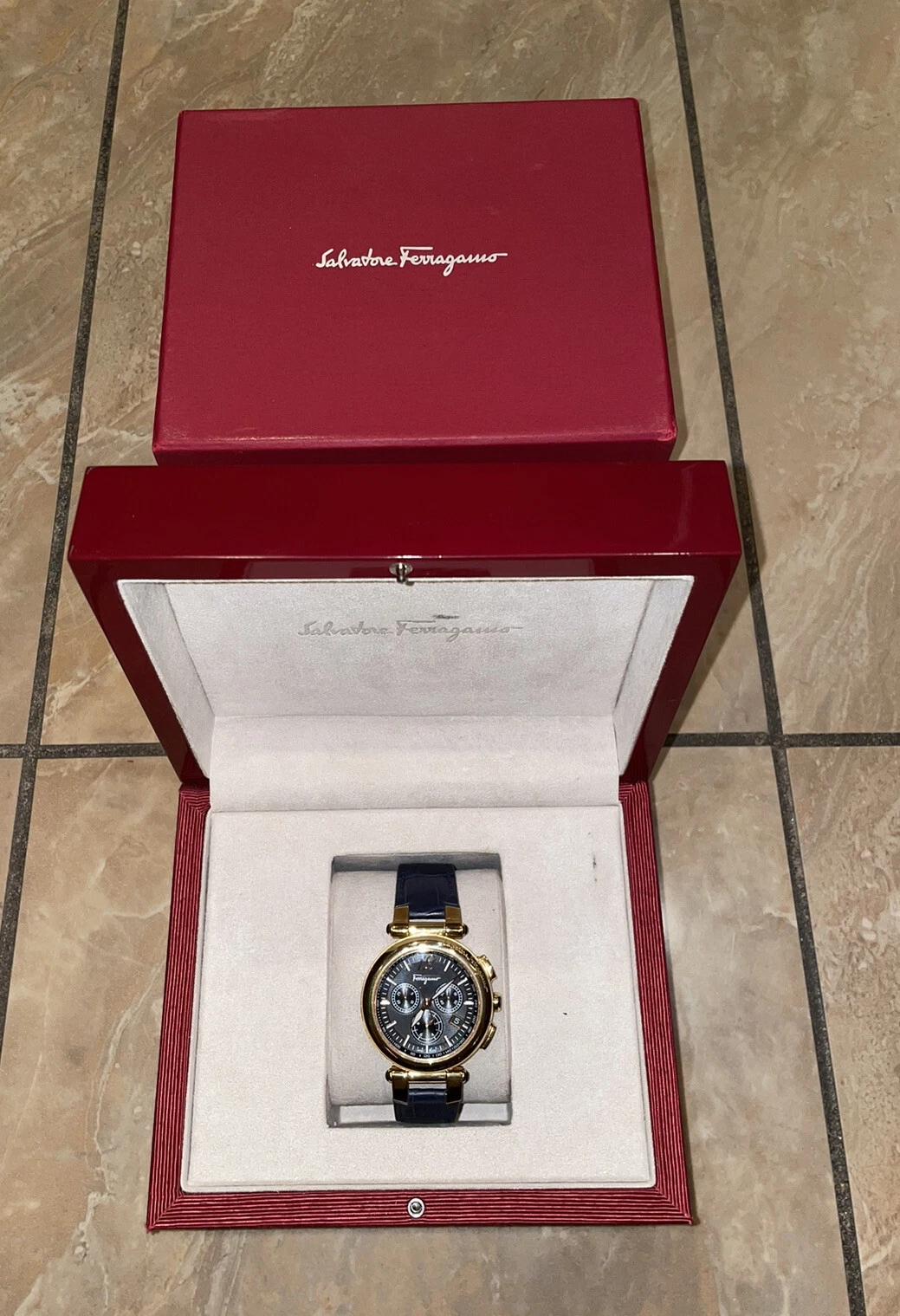 Salvatore Ferragamo IDILLIO F77LCQ5009SB09 Unisex Golden Dark Blue Strap Watch