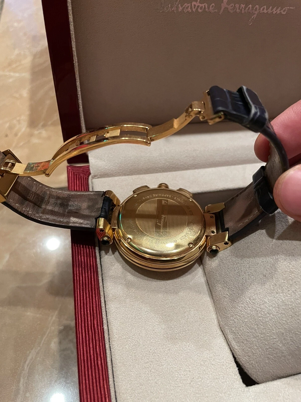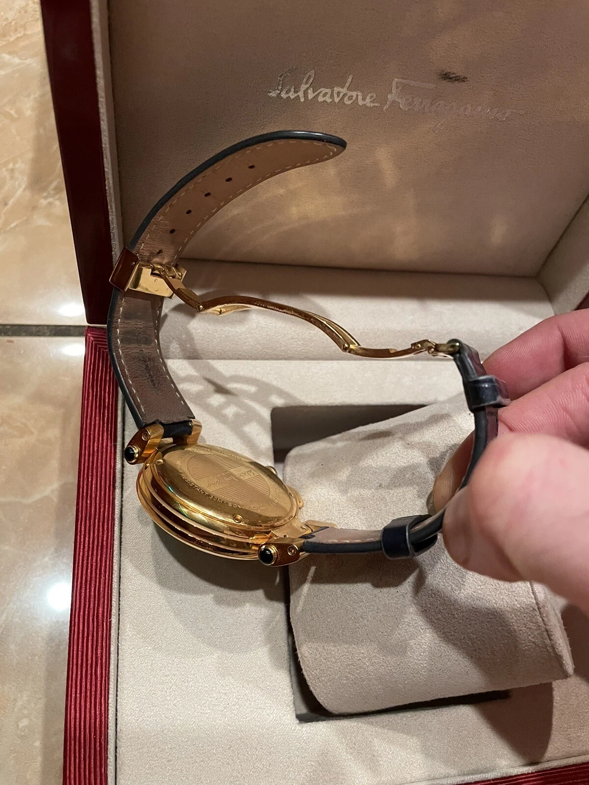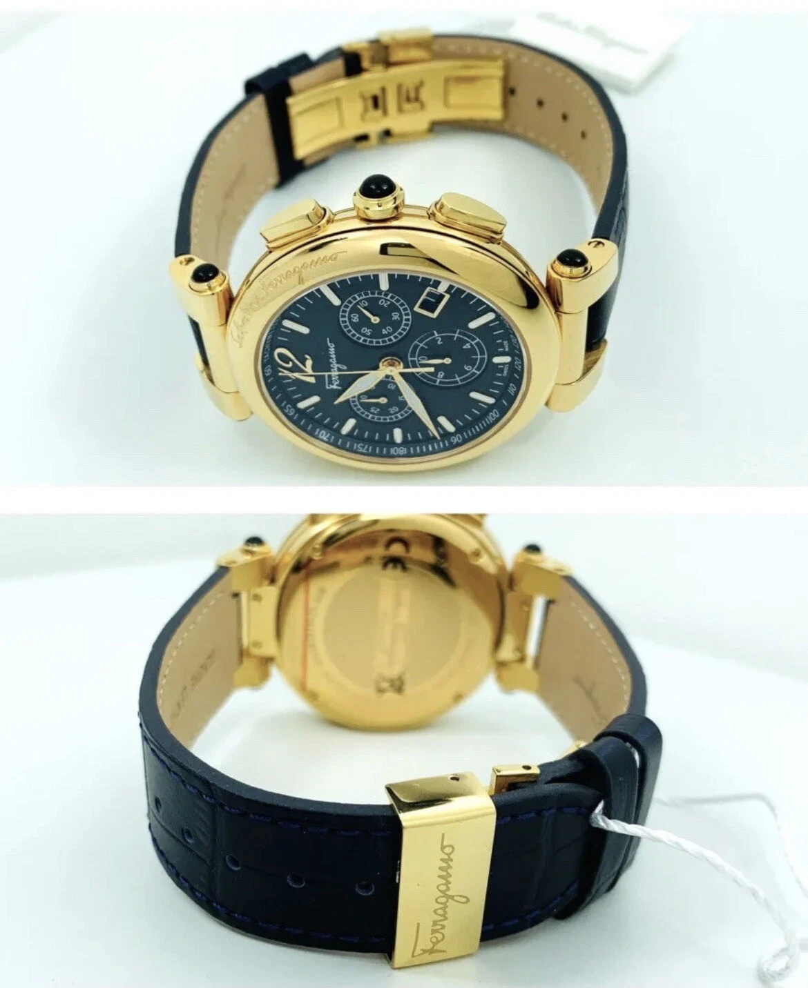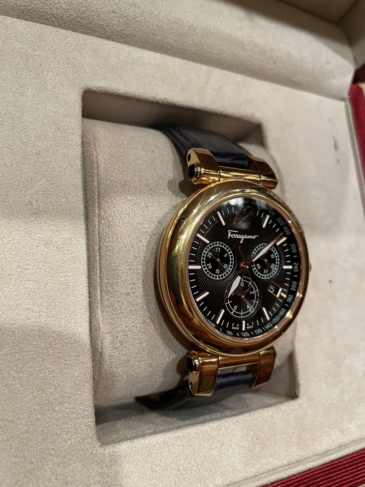 Salvatore Ferragamo IDILLIO F77LCQ5009SB09 Unisex Golden Dark Blue Strap Watch