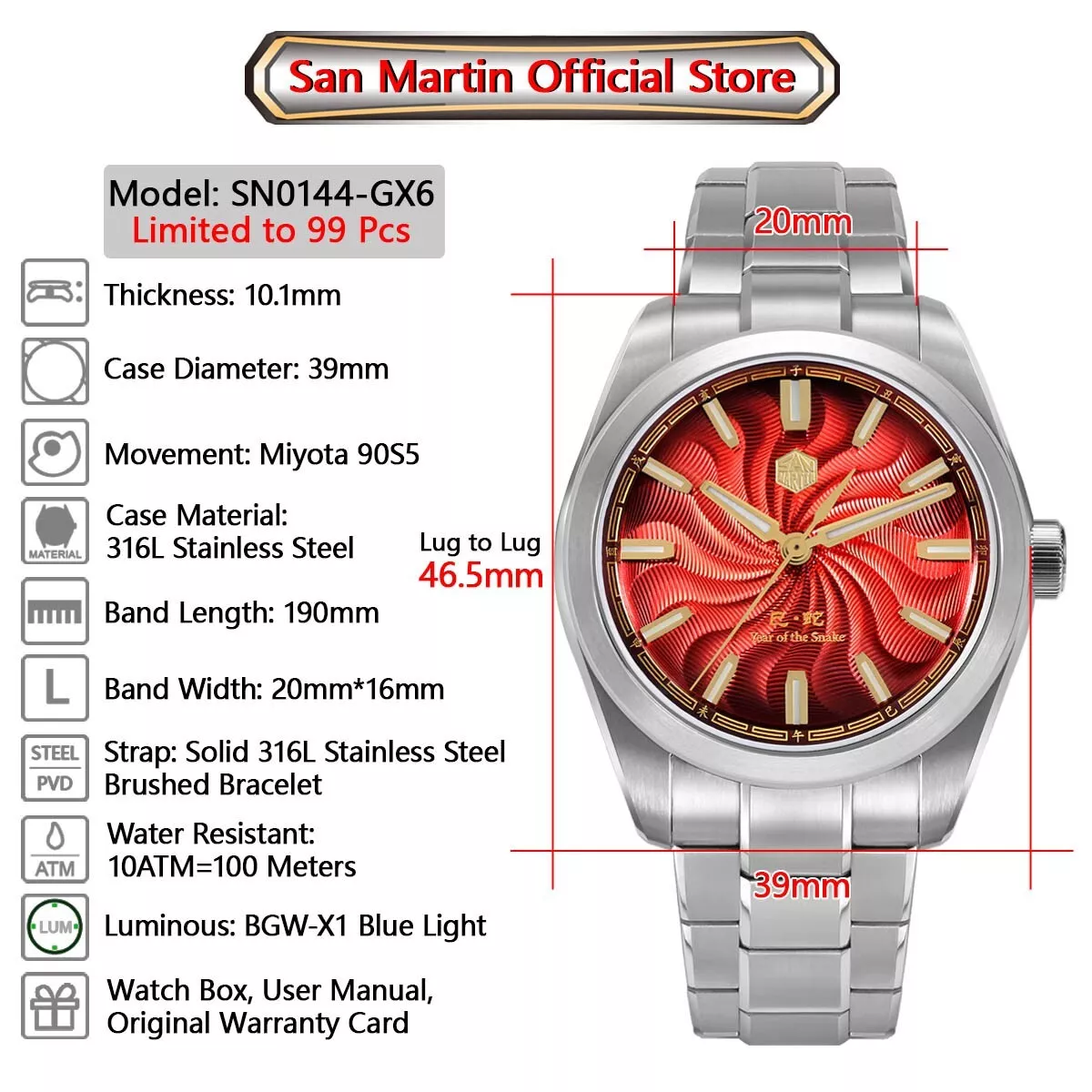 San Martin 2025 Snake Year Limited Edition 39mm Miyota 90S5 Automatic Watches
