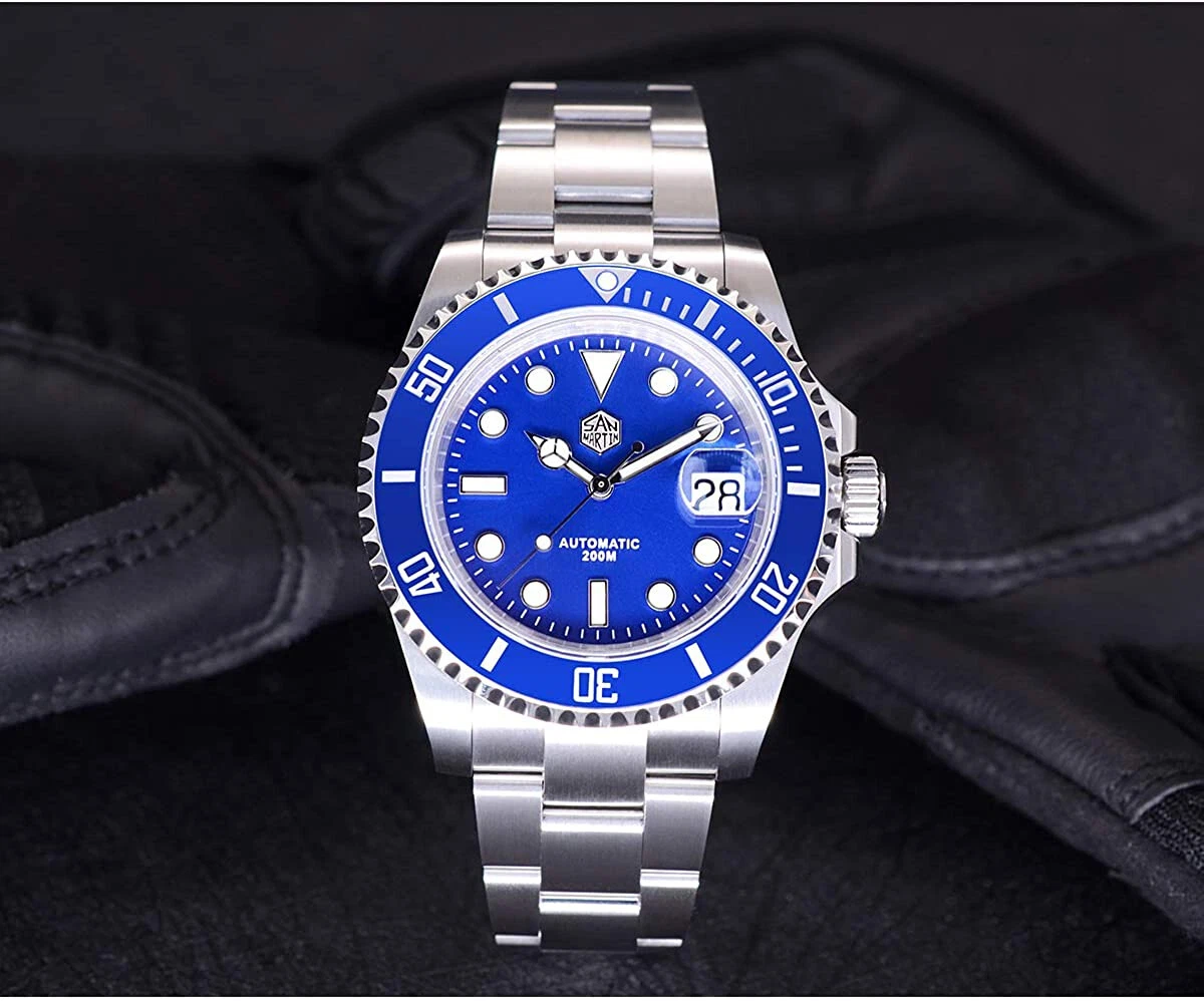 NEW San Martin SN019-G Blue 41mm Water Ghost Automatic Diver Watch Ceramic Bezel