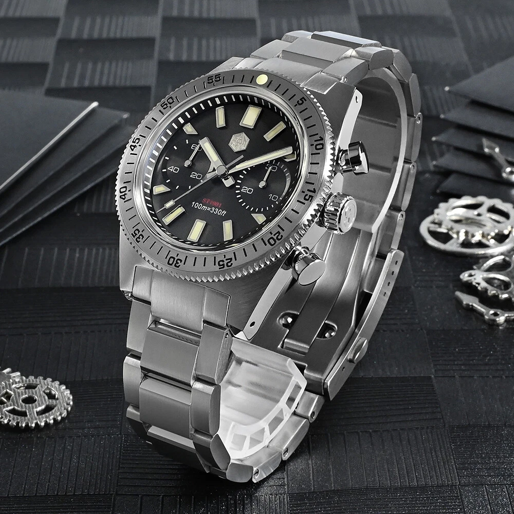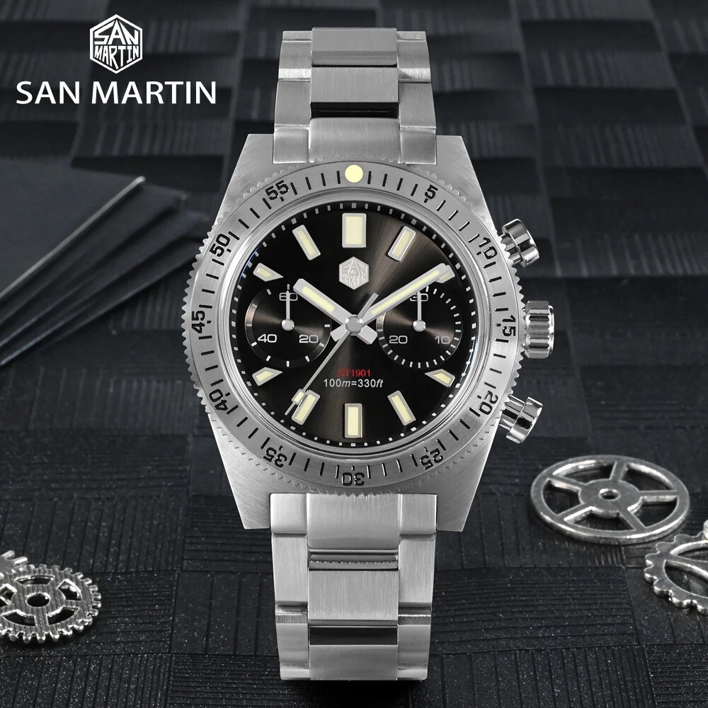 San Martin 62mas Chronograph Mens watches Retro ST1901 Manual winding Wristwatch