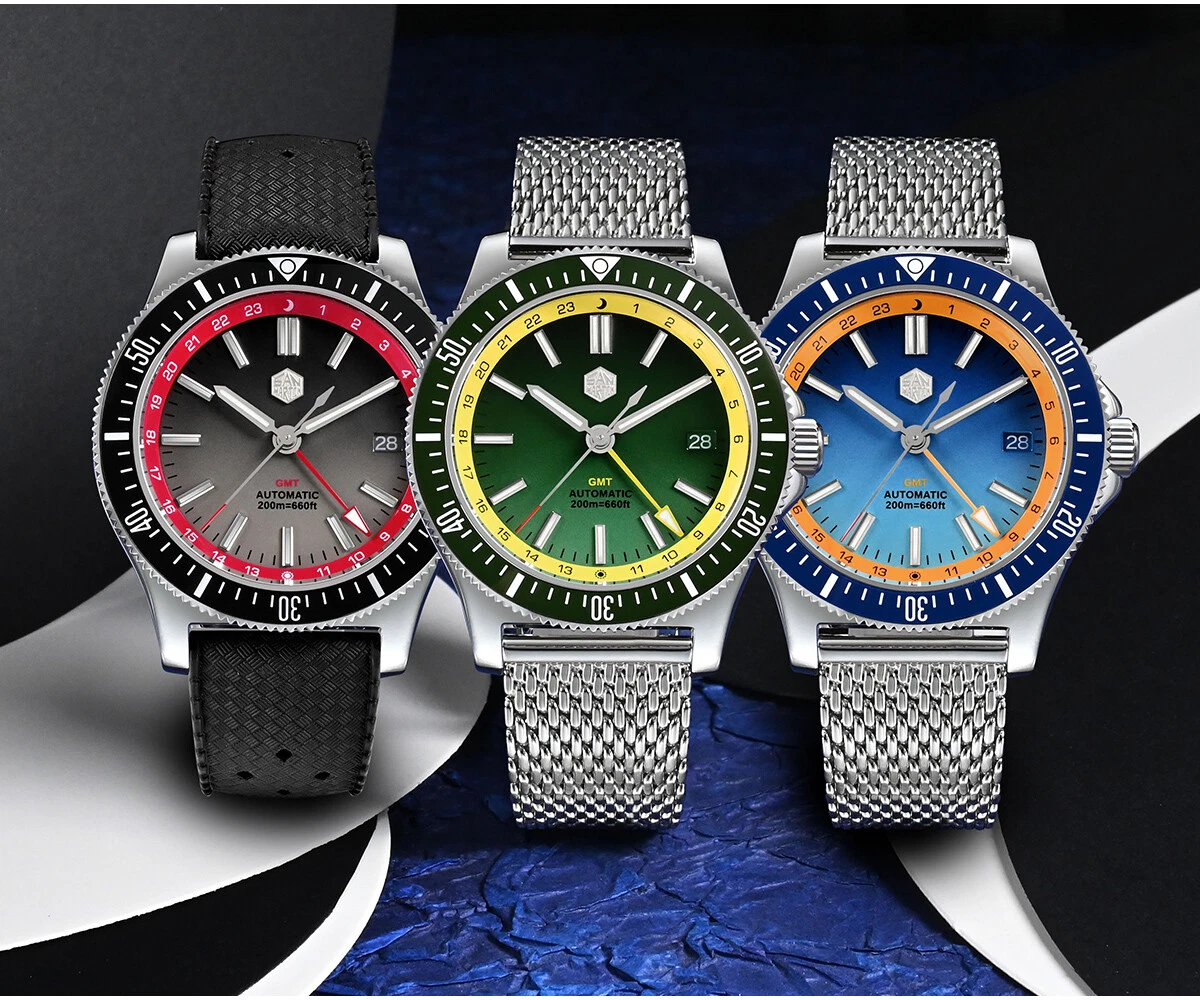 San Martin Original Design GMT Dive Men Watch NH34 Automatic Mechanical Wristwat