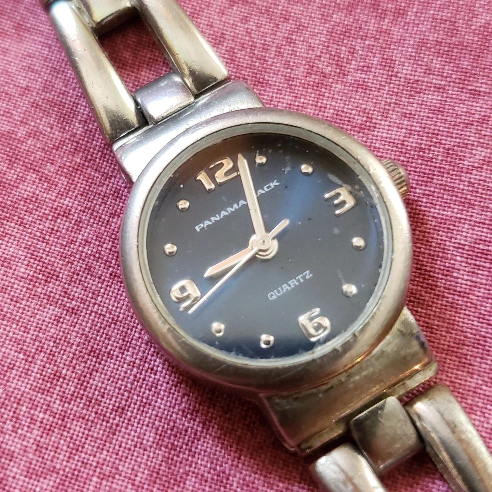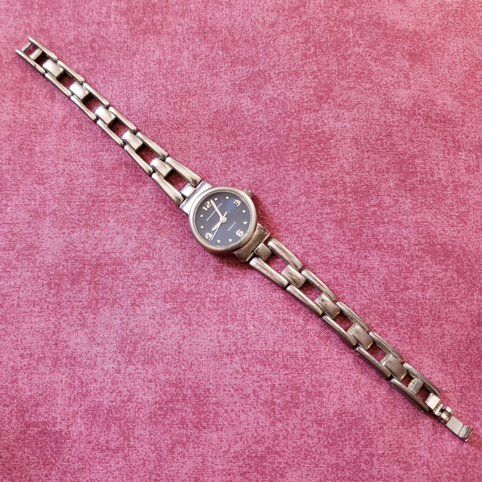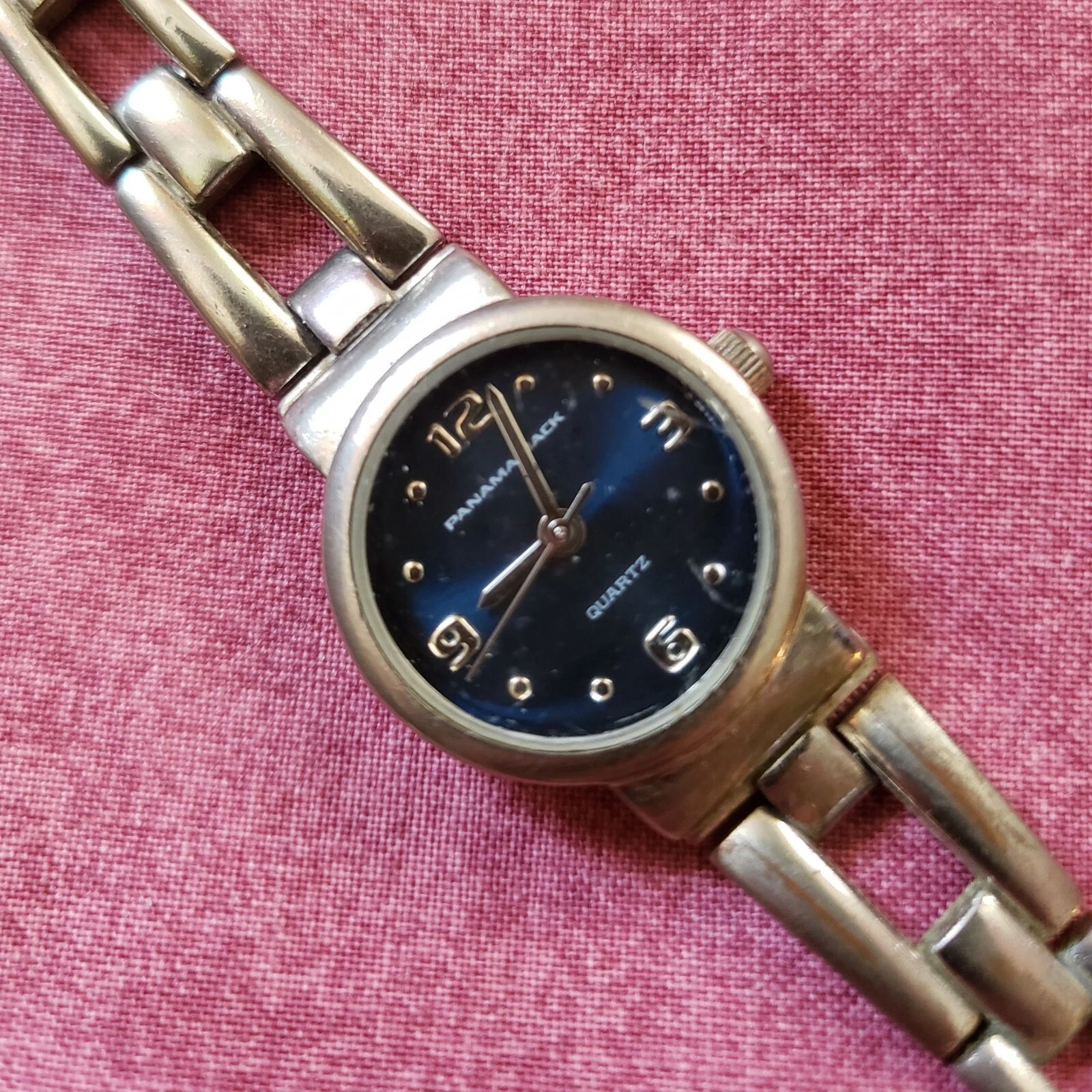 Panama Jack Metallic Blue Dial Round Case Link Bracelet Band Watch Running W1