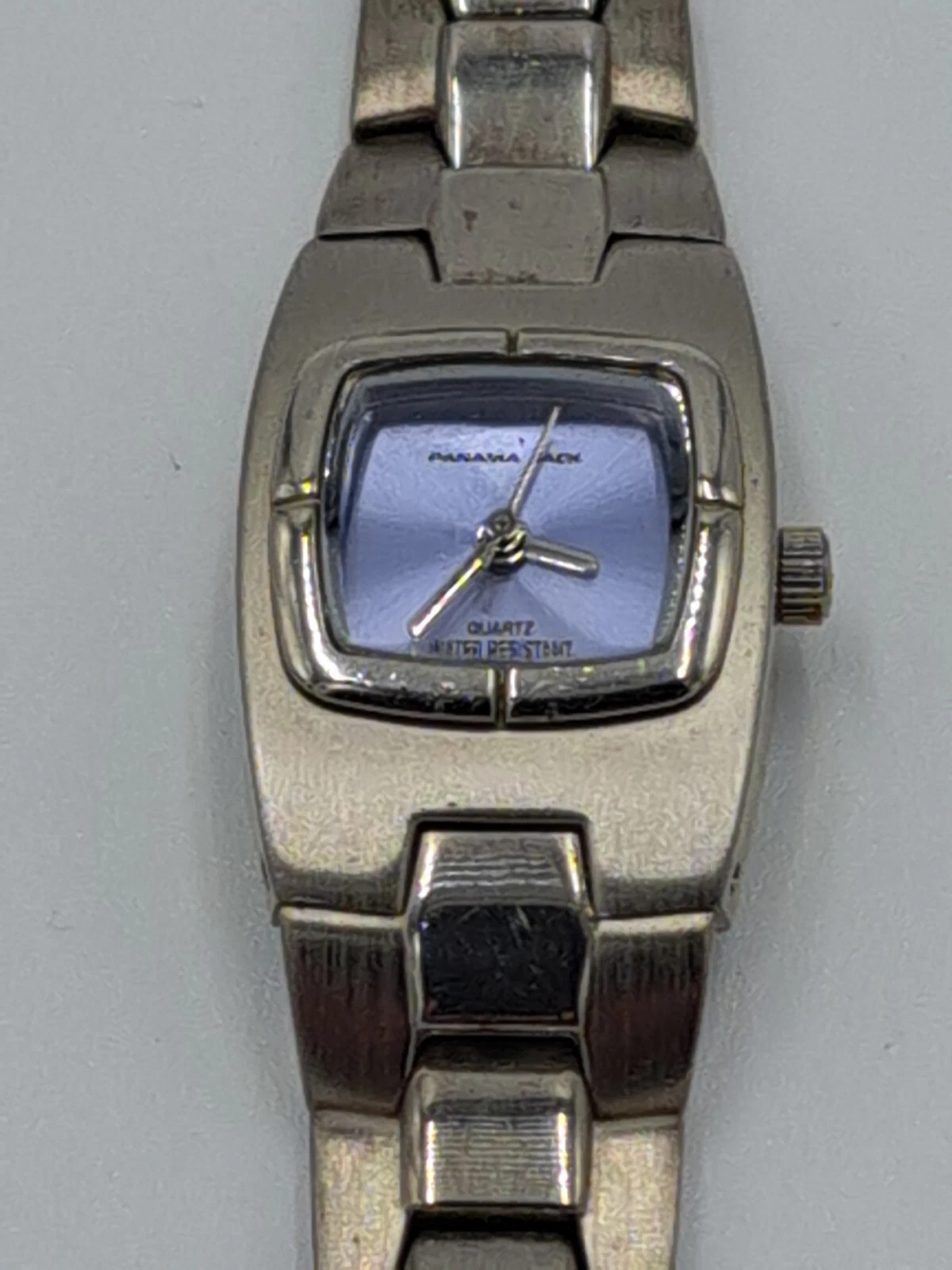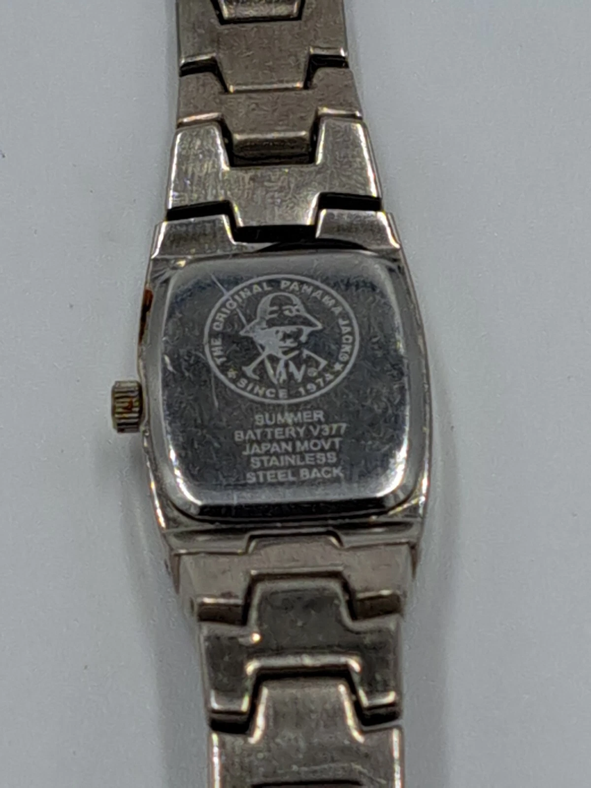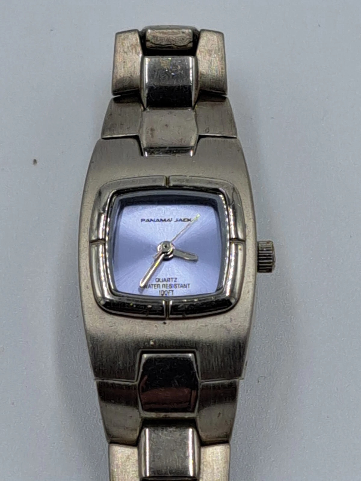 Panama Jack Womens Quartz Watch Silvertone 100' Water Resistant Square WORKS EUC