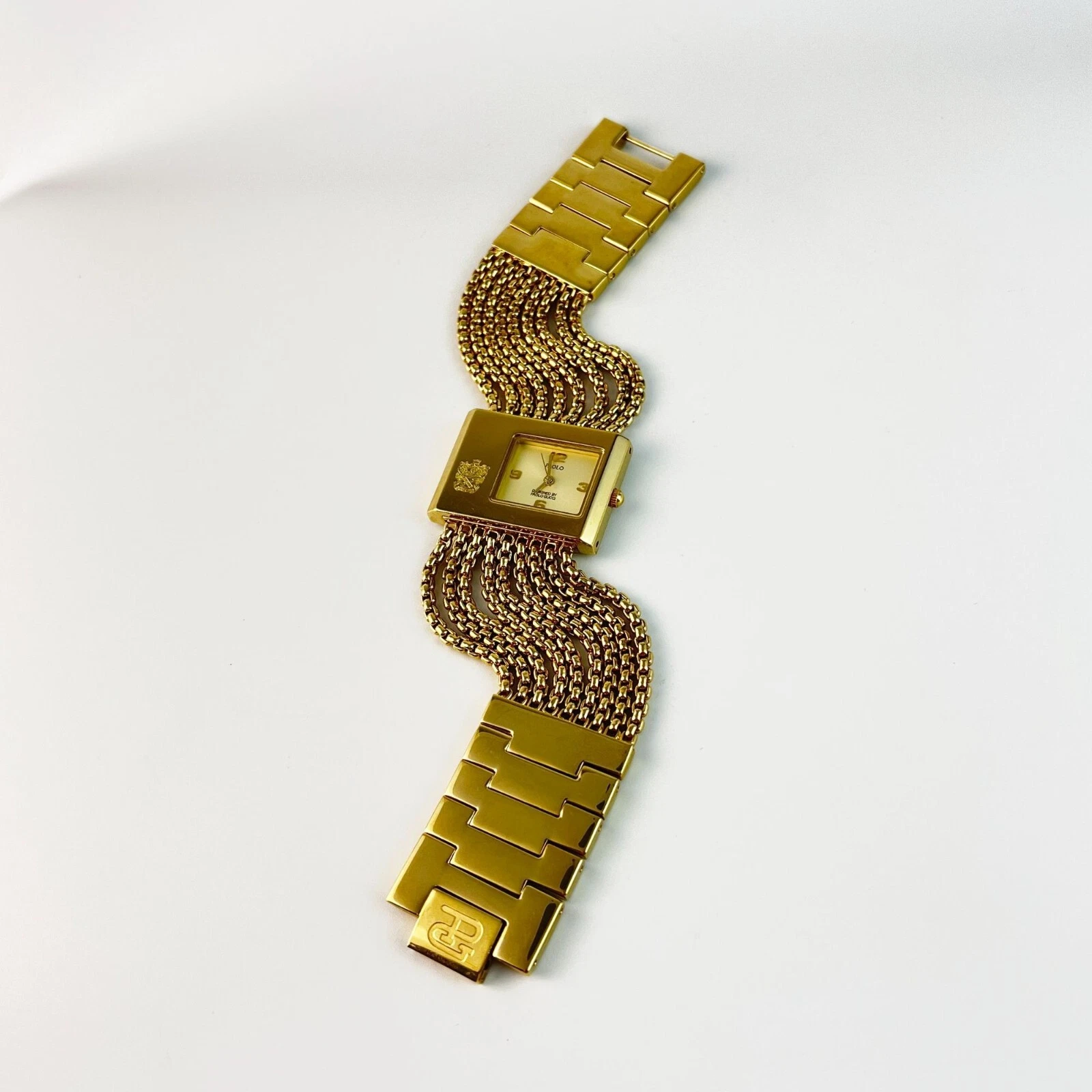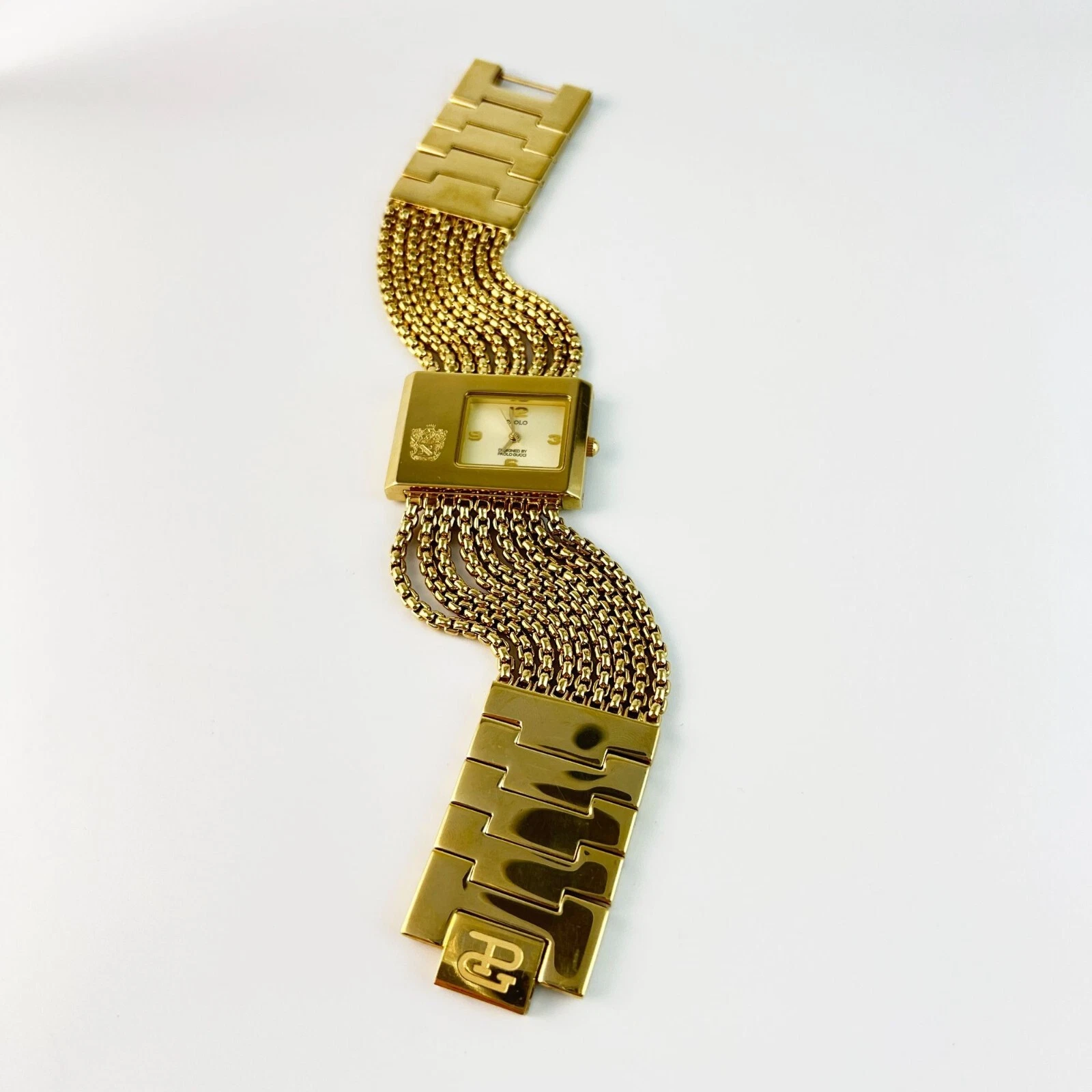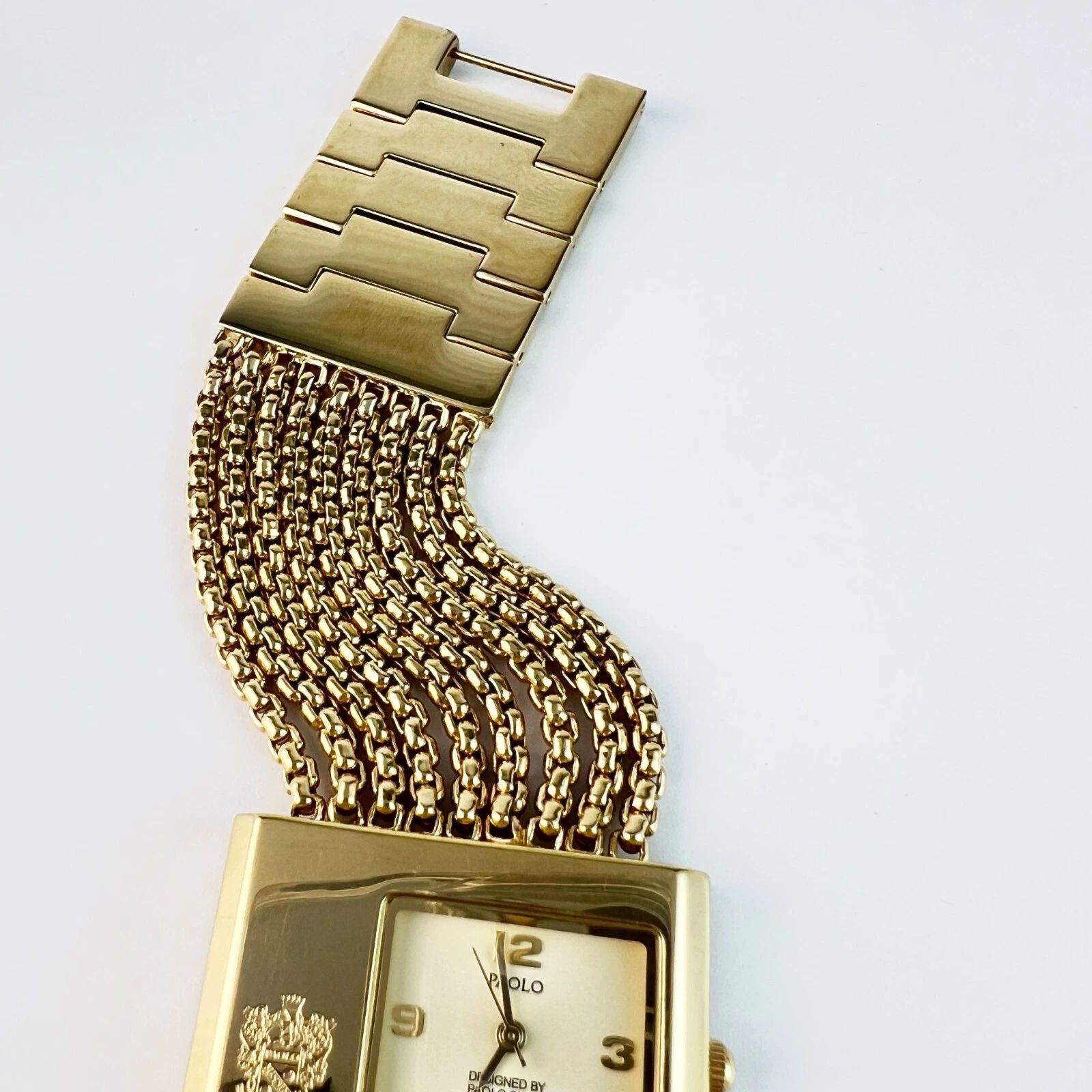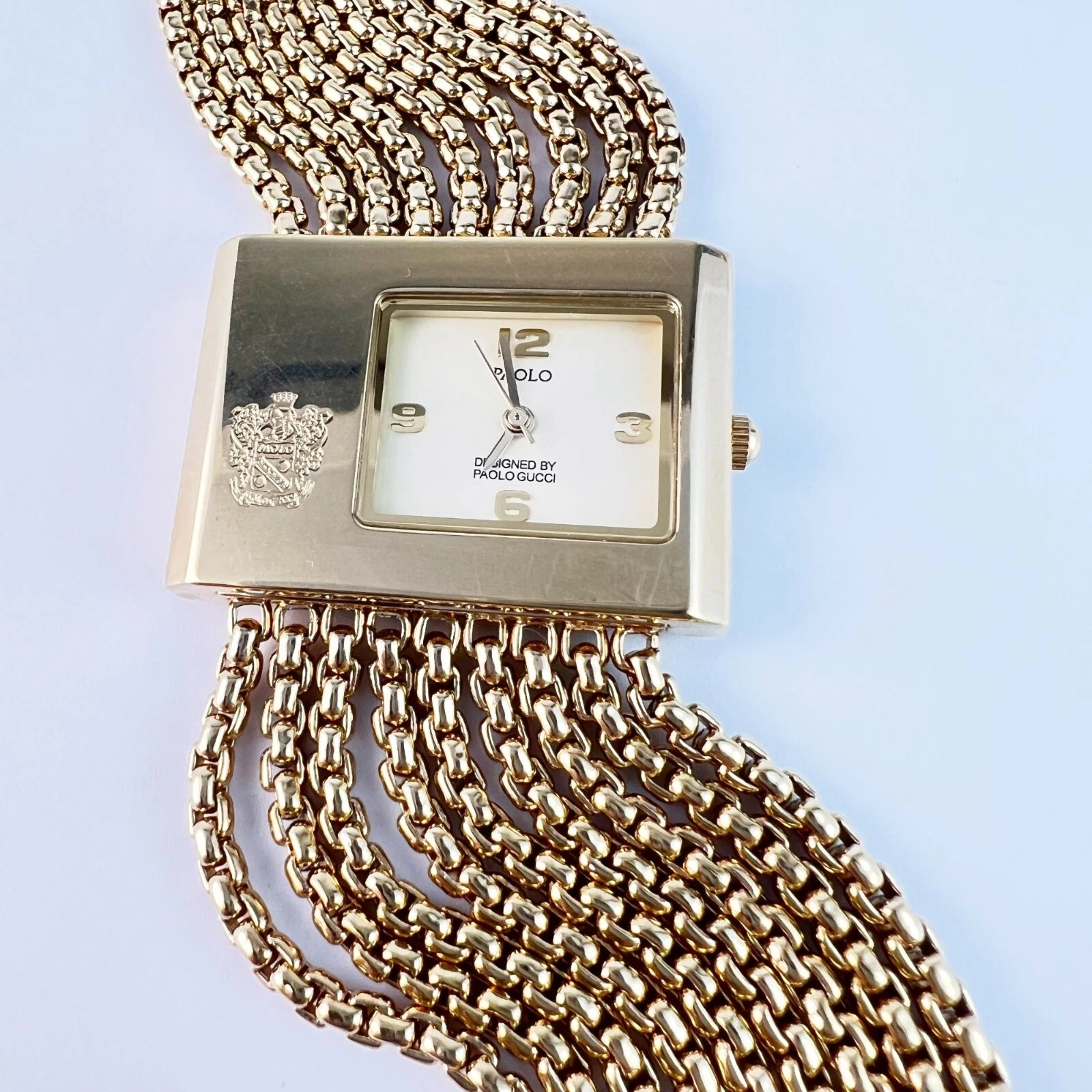 Vintage Estate Designer Paolo Gucci Logo Gold Tone Multi Chain Bracelet Watch