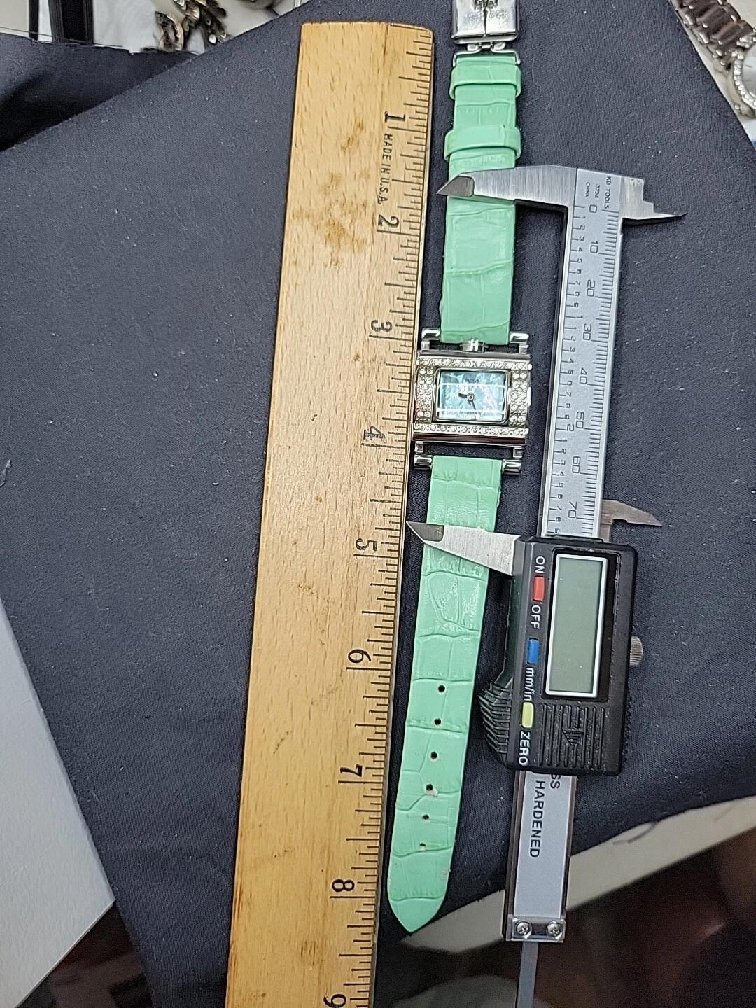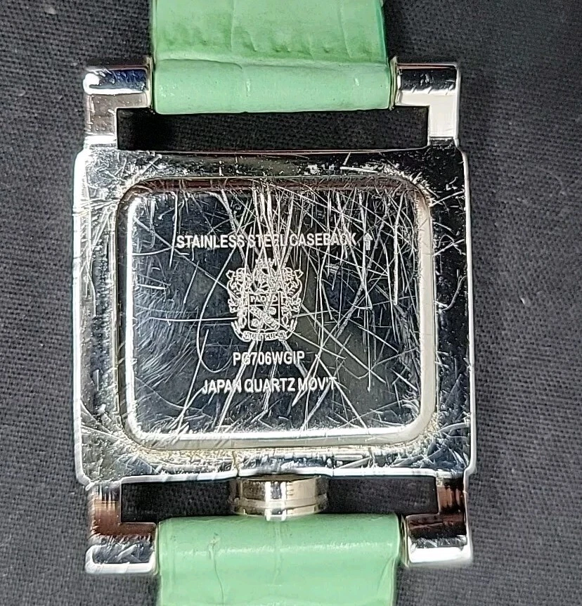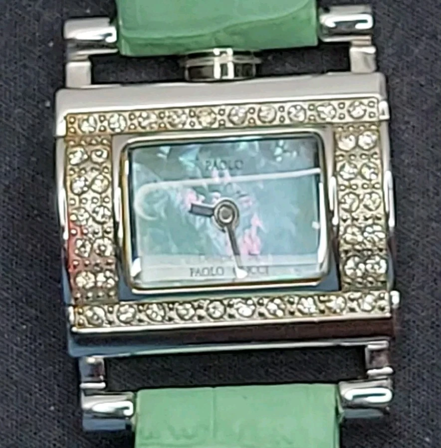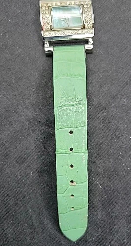 Vtg Paolo GUCCI Stainless Women Japan Quartz Rhinestones Lt Green MOP Watch VGC