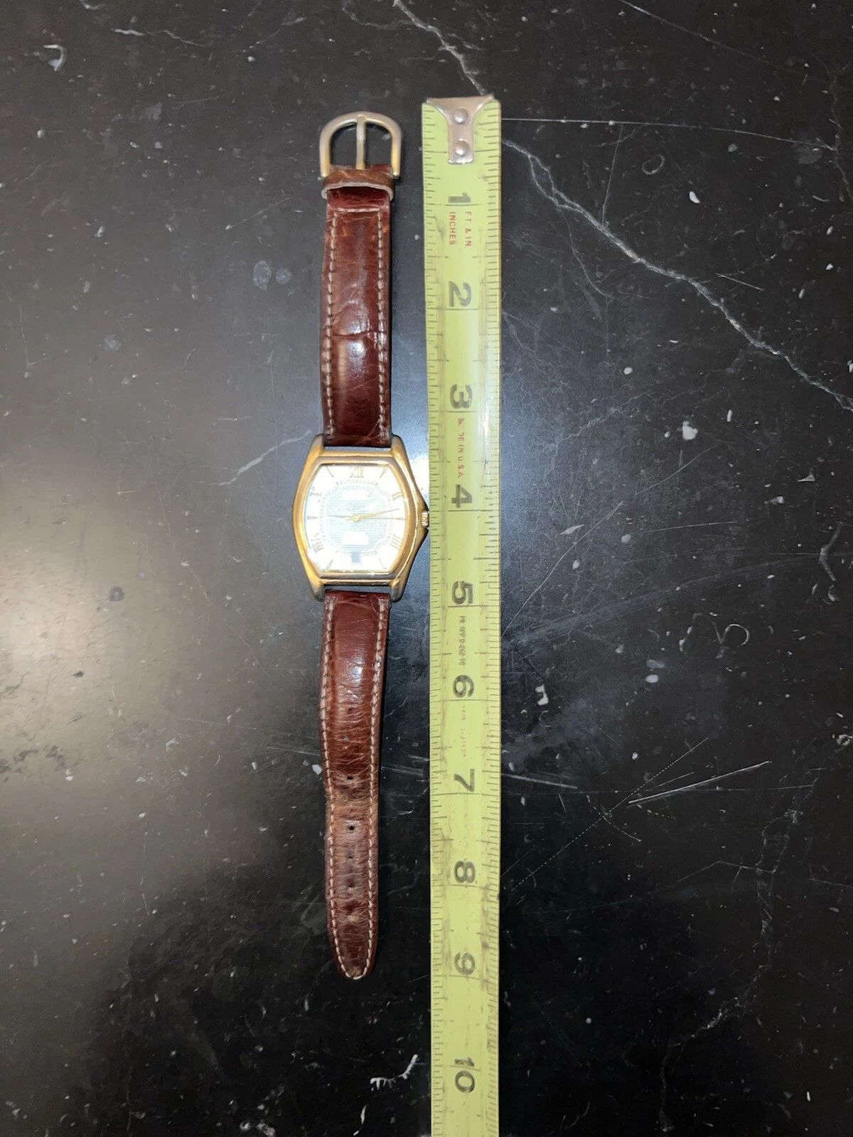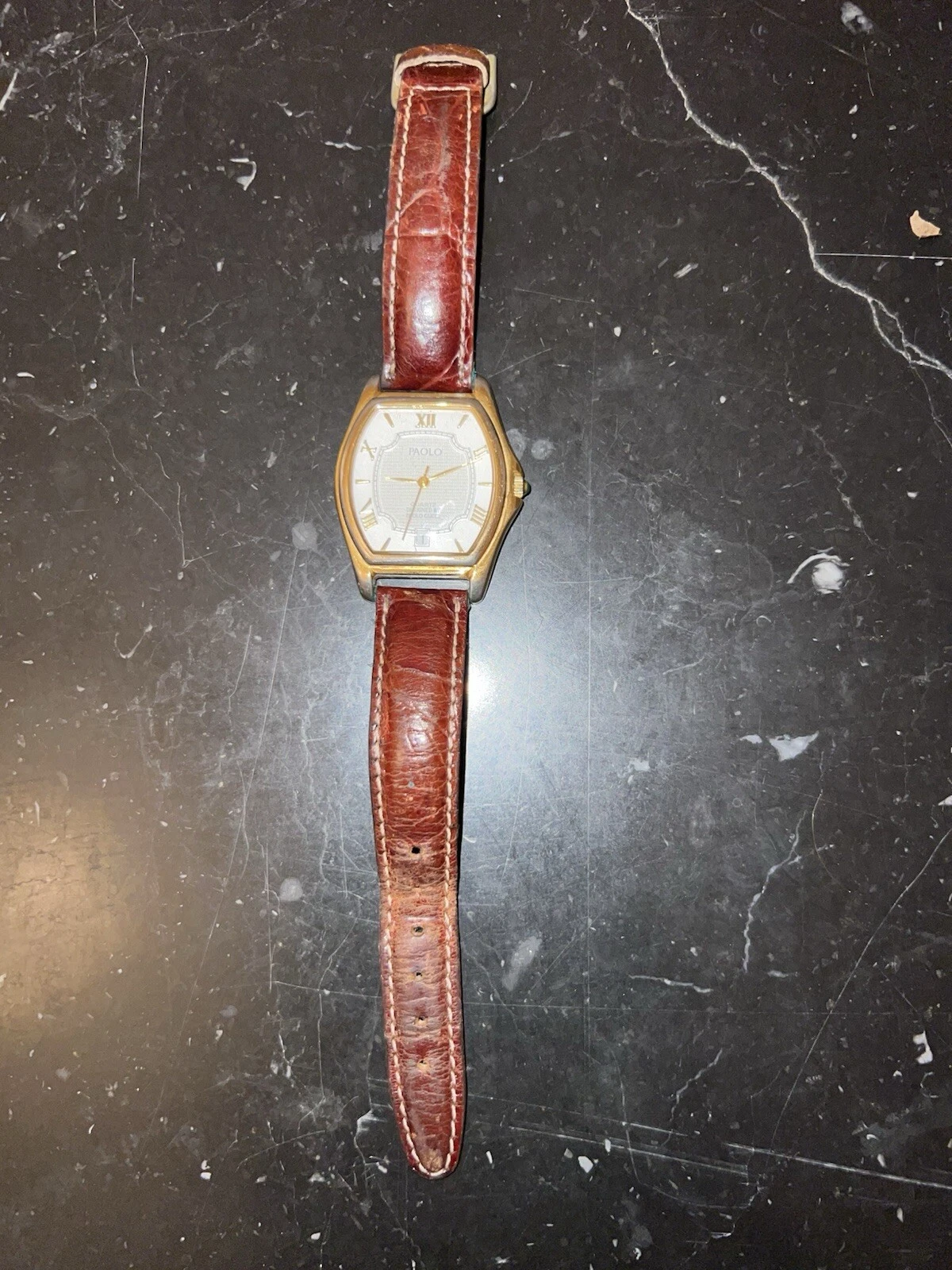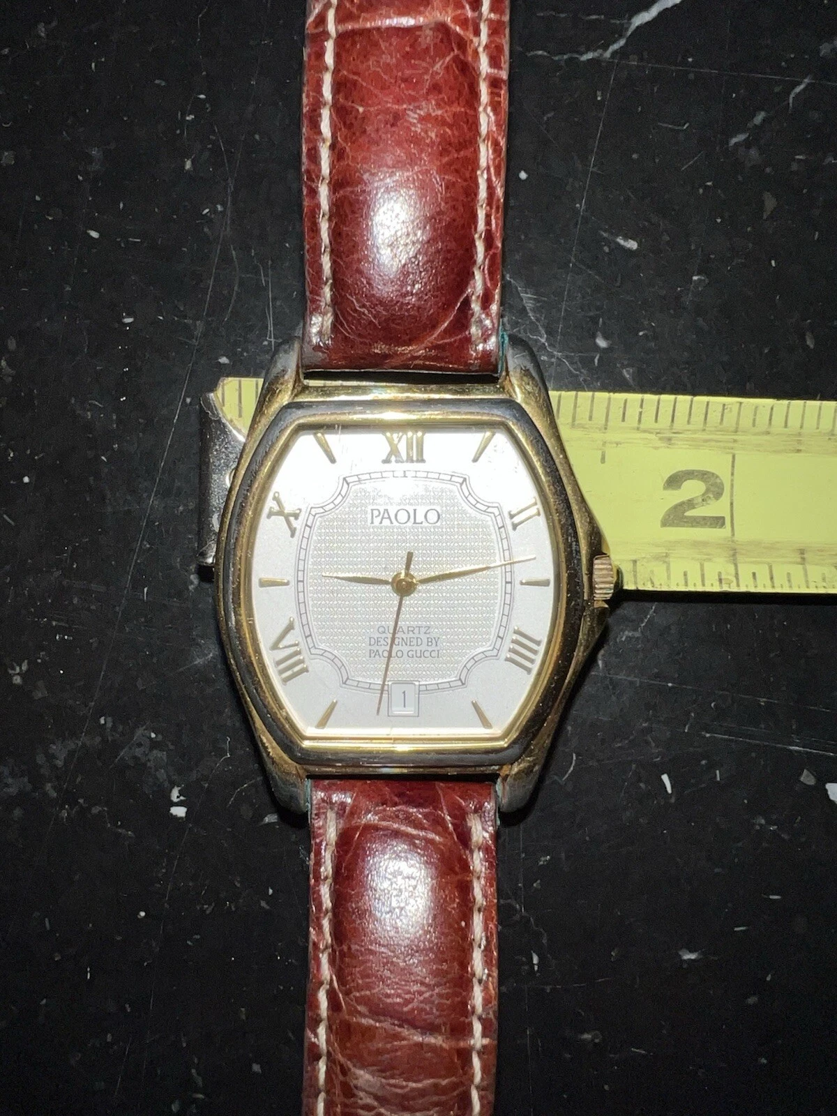 Vintage PAOLO GUCCI Watch Roman Numerals Gold Color New Bat Leather Wristband