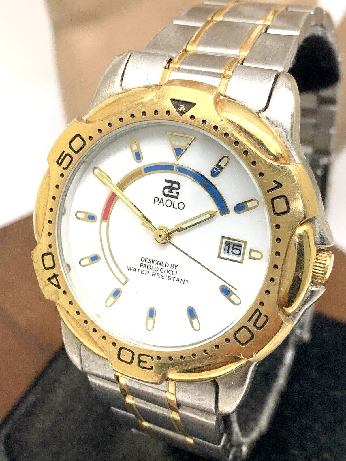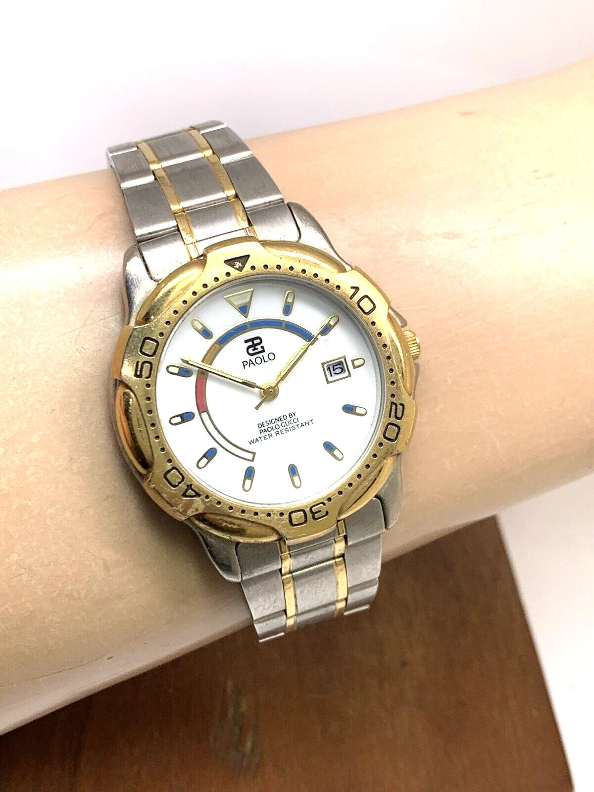 Paolo Gucci Men's Watch LPG237 Quartz White Dial Two Tone Stainless Steel 39mm