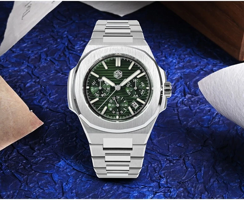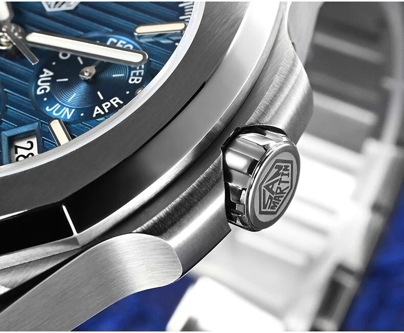 SAN MARTIN Men Luxury Watch 43mm Automatic Wristwatch 10Bar BGW-9 Luminous 9120