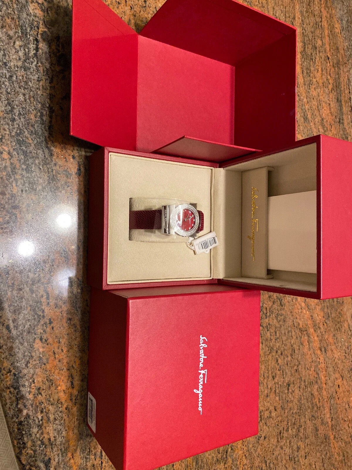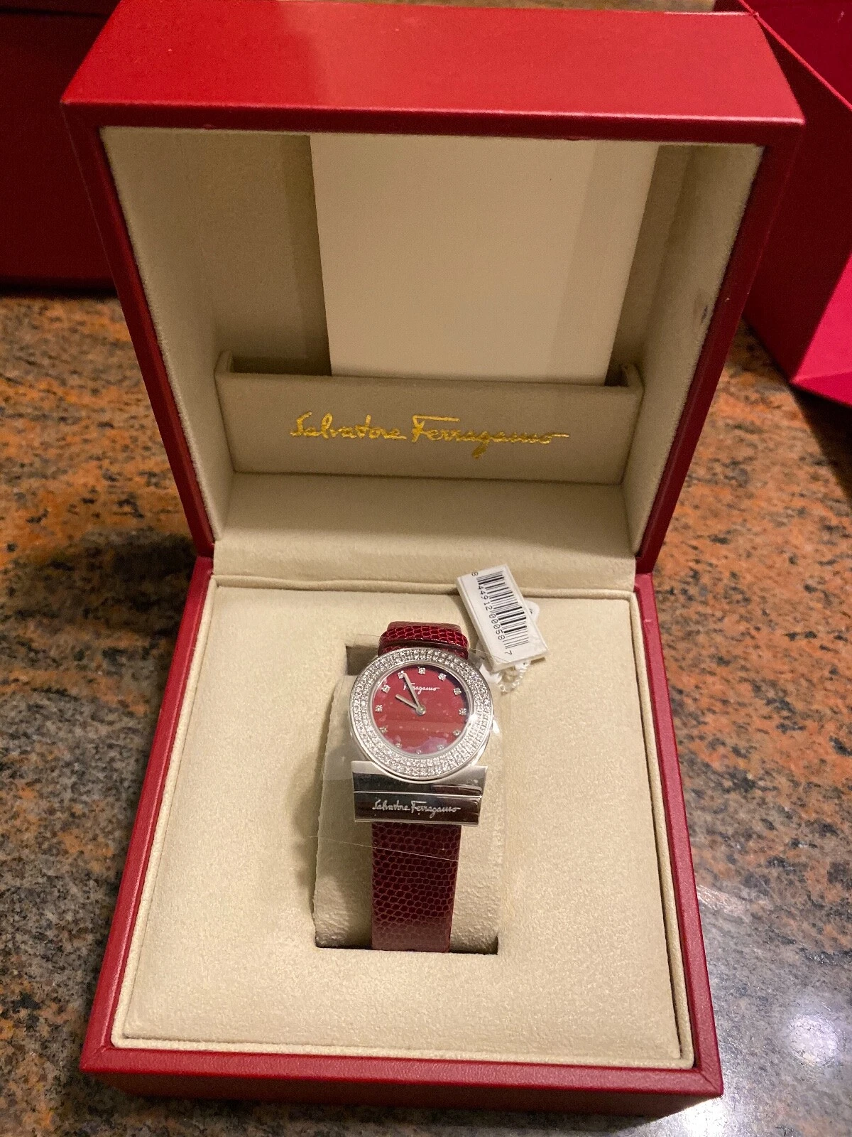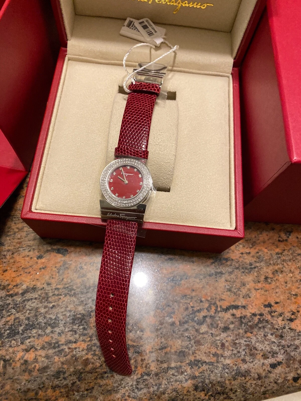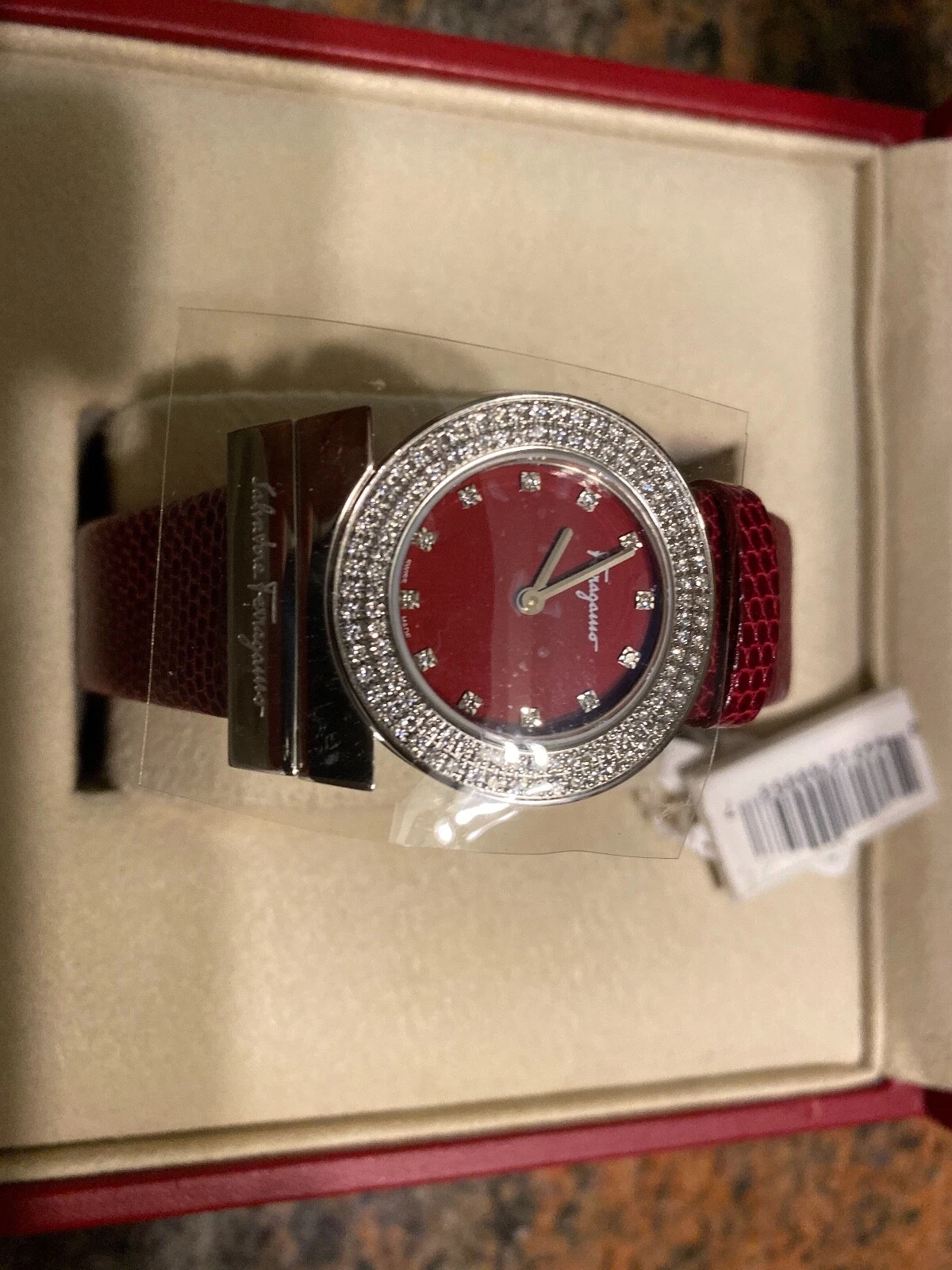 BRAND NEW Salvatore Ferragamo Women's Gancino Diamond Genuine Lizard Watch