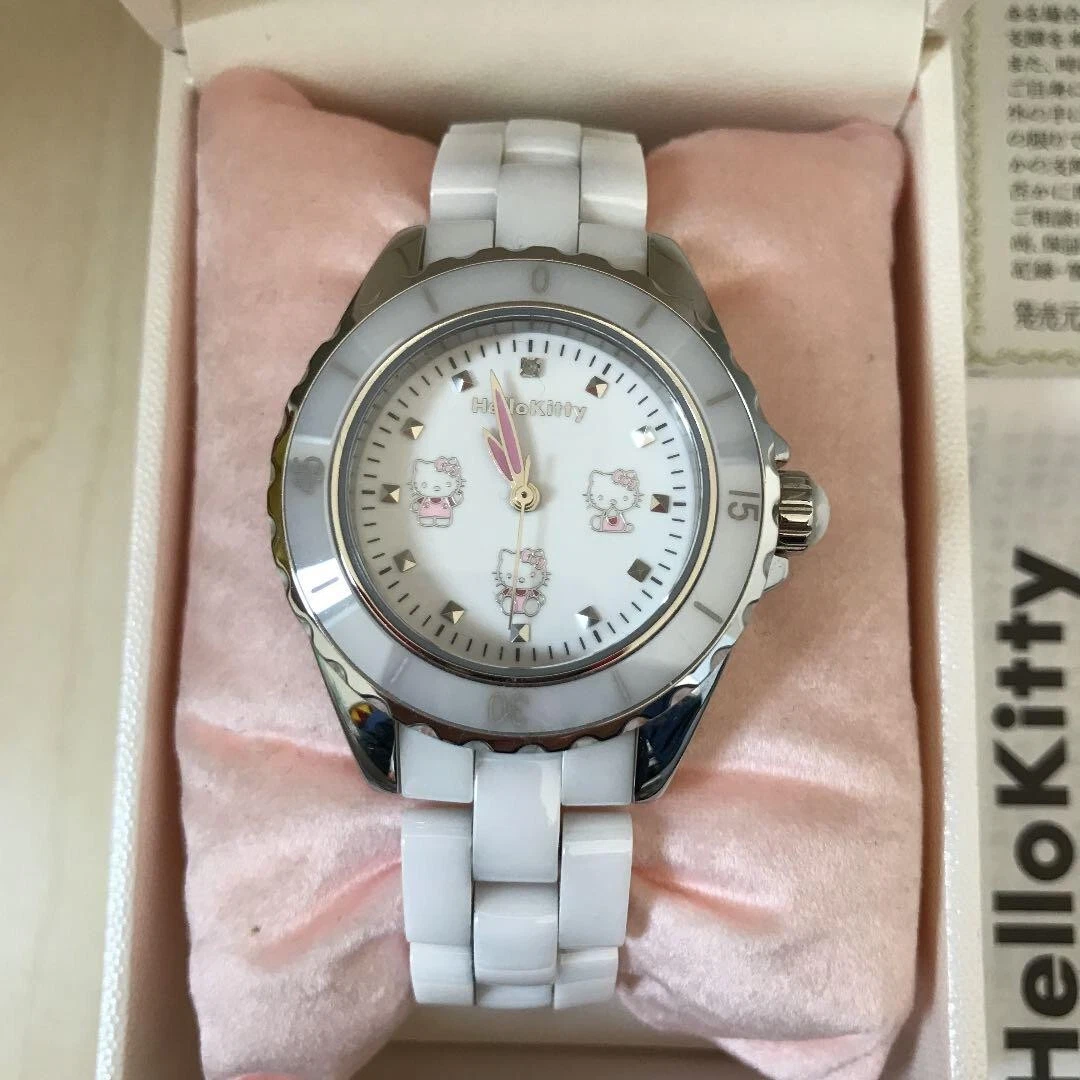 Hello Kitty 35th Luxury White Ceramic Diamond Jewlry Watch  from Japan rare