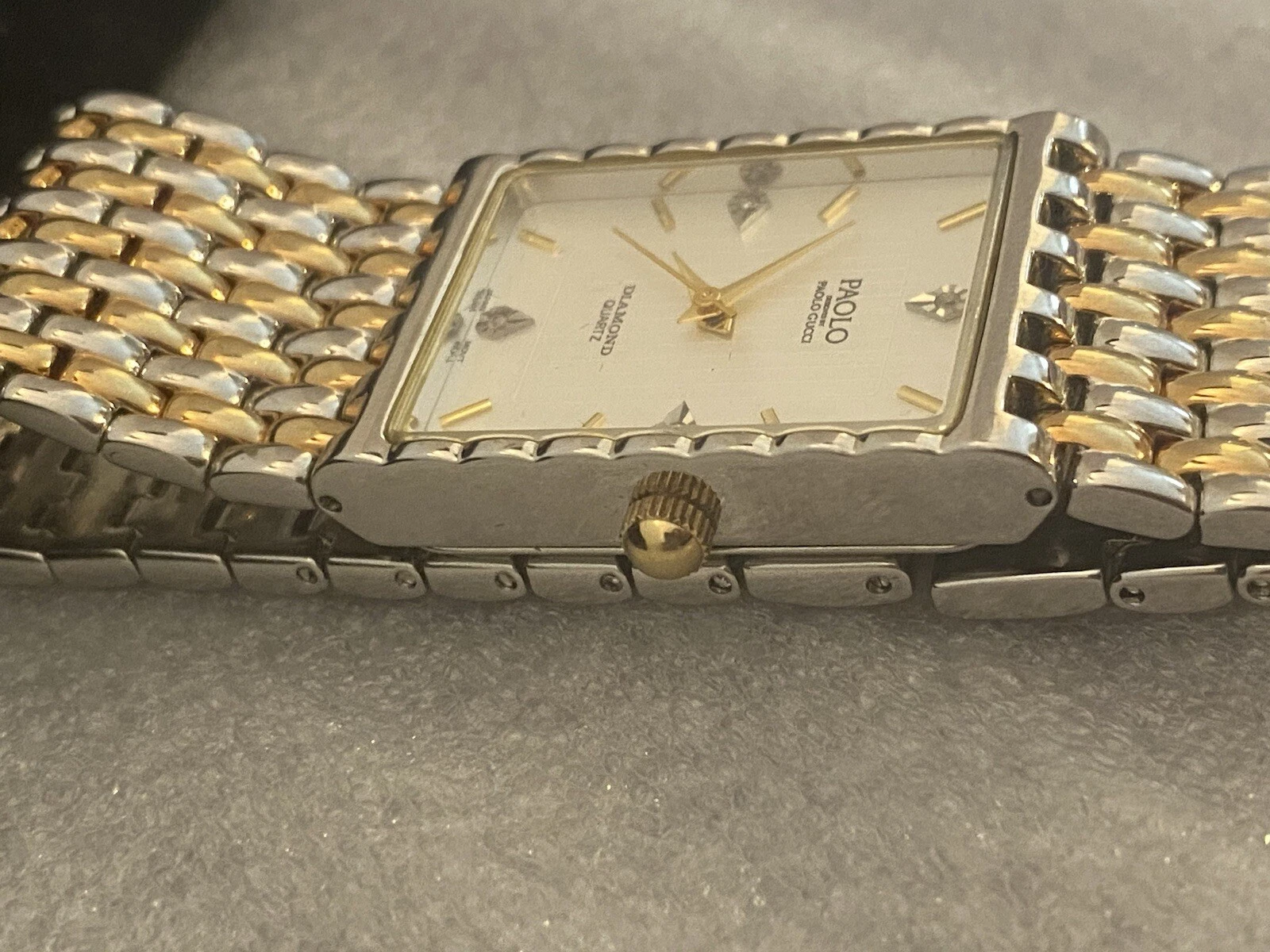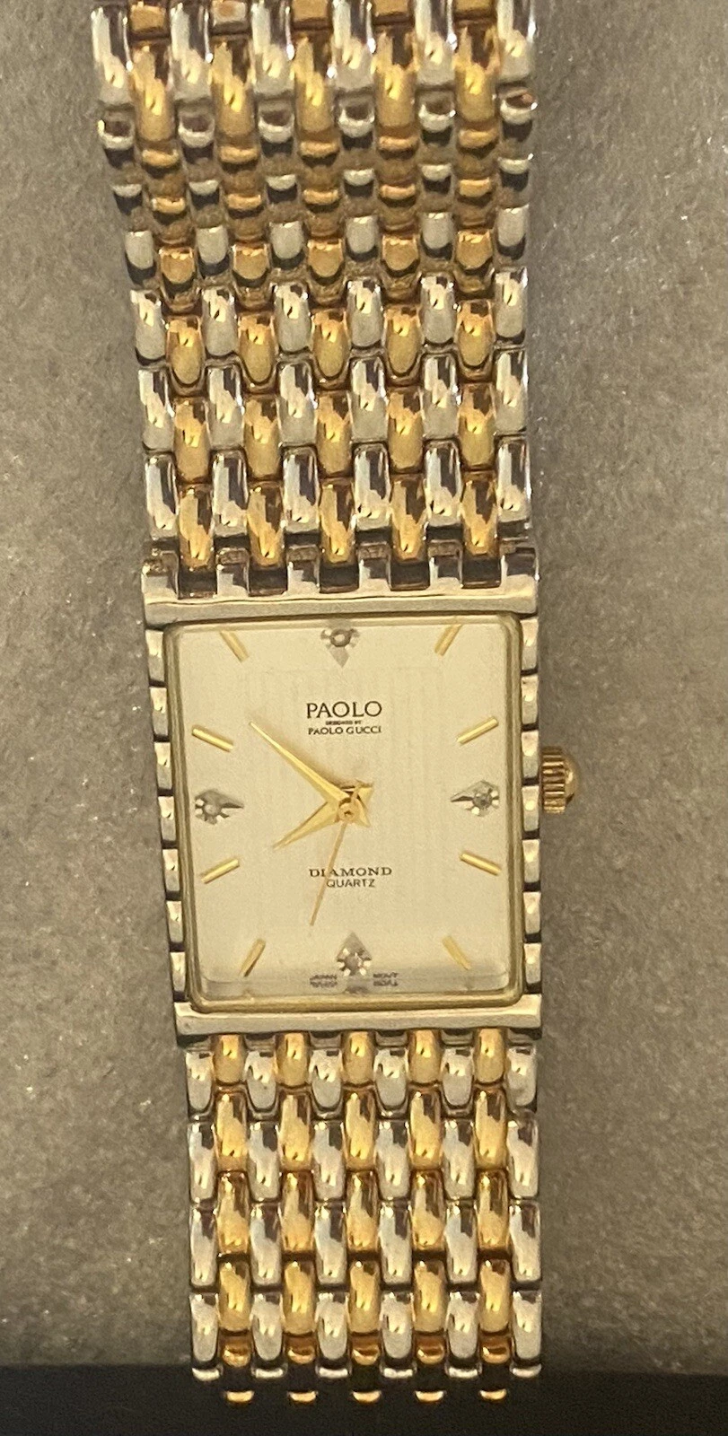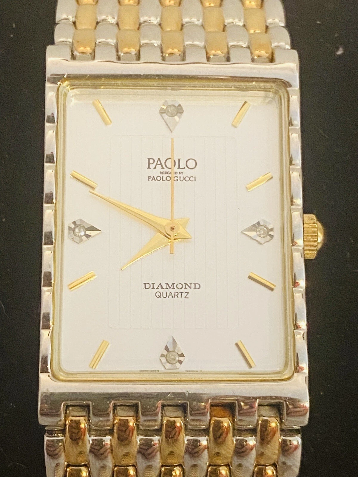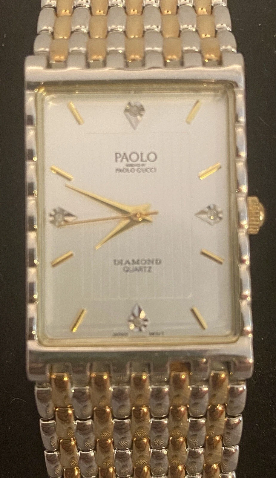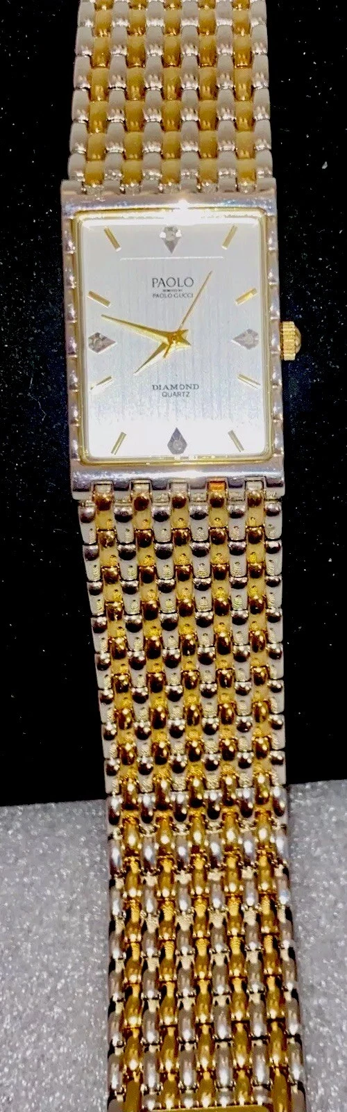 PAOLO Diamond Quartz( by Paolo Gucci)Men’s Watch gold/Silver Band Handsome Rare