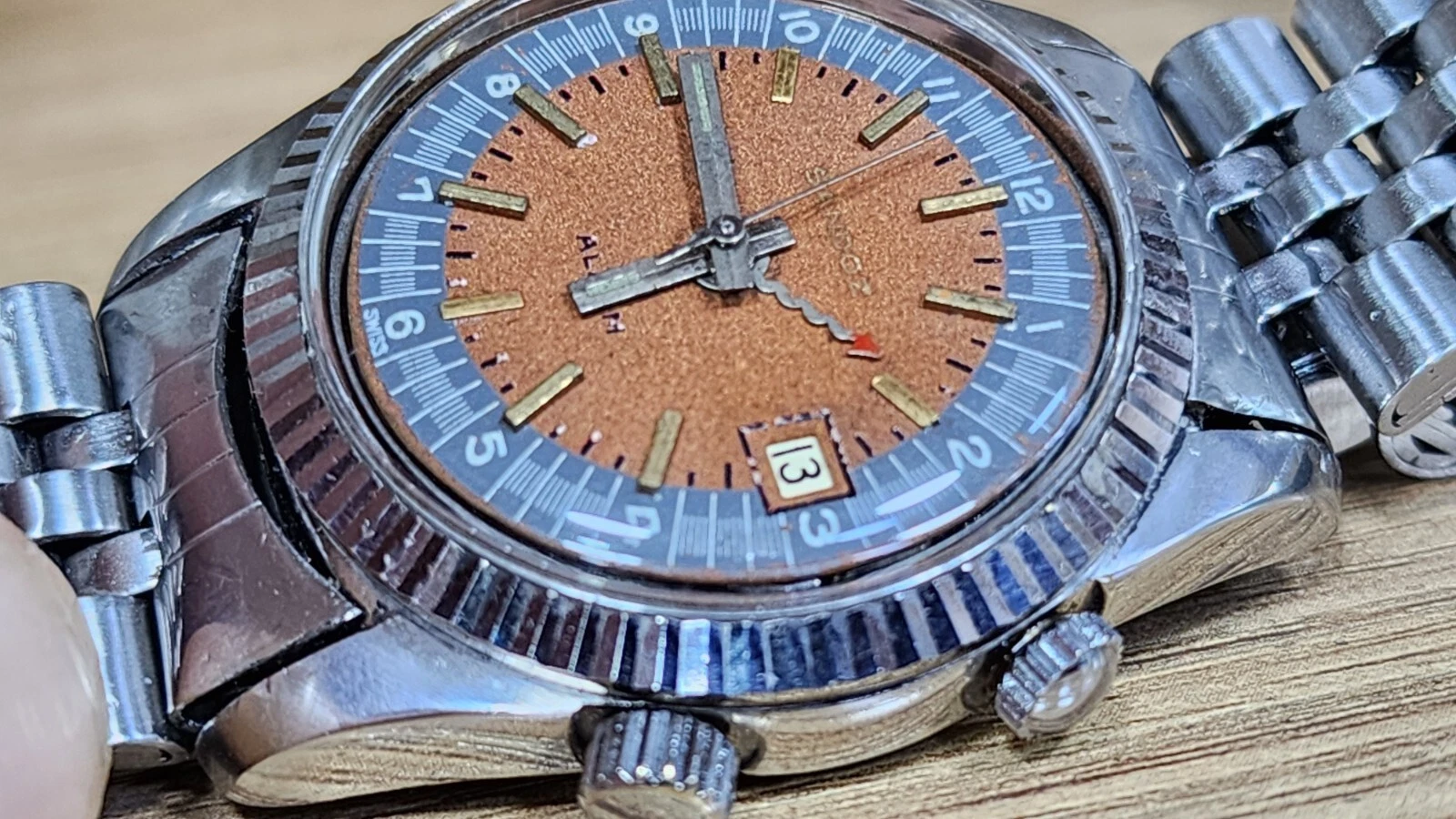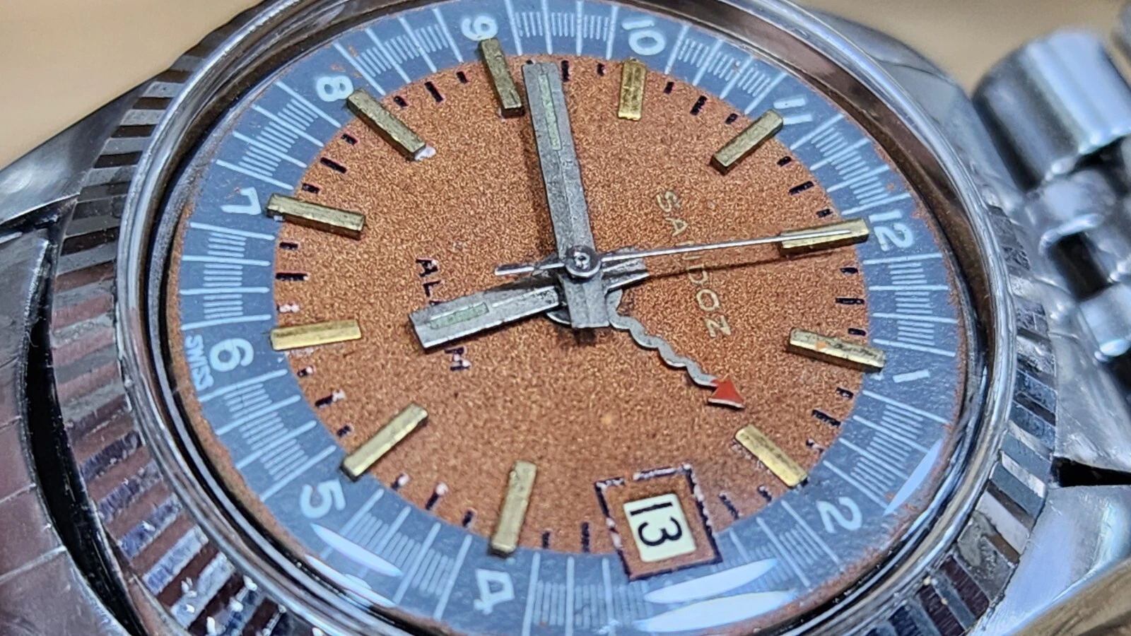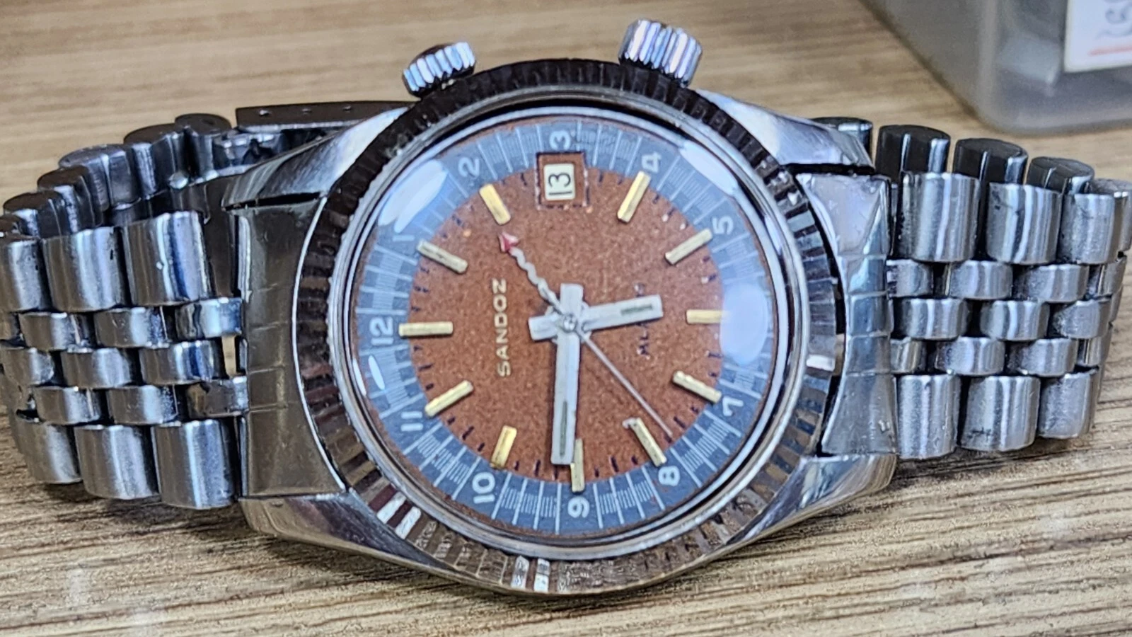 Rare Vintage Sandoz Alarm Brown Dial Manual Wind Men's 35mm Watch